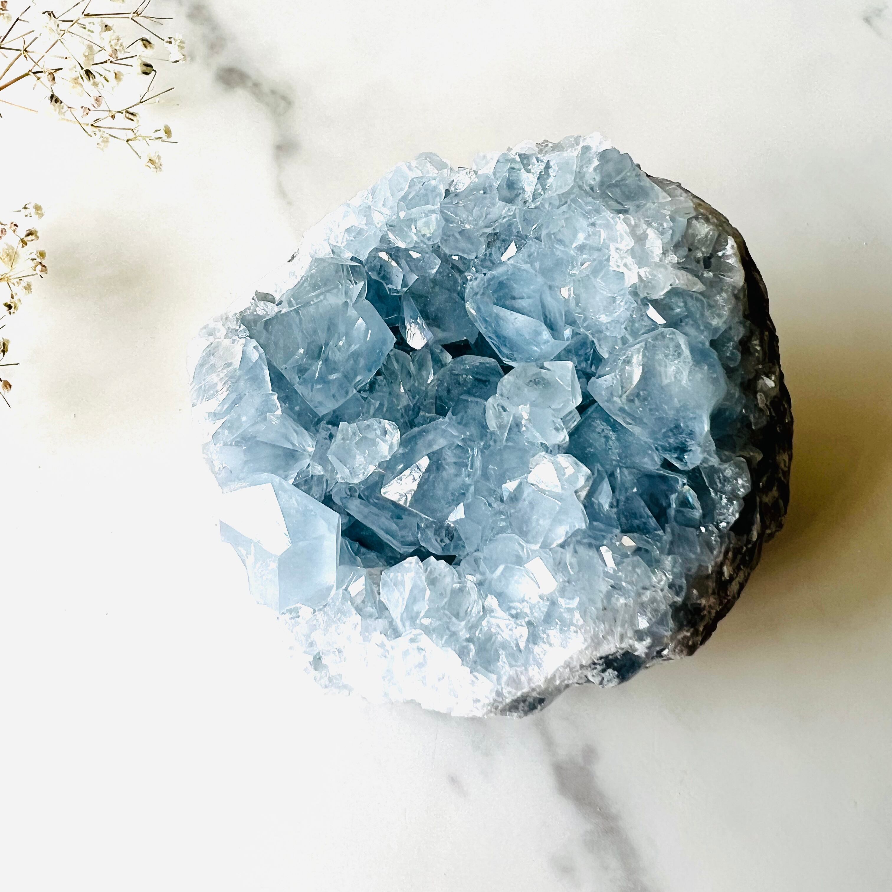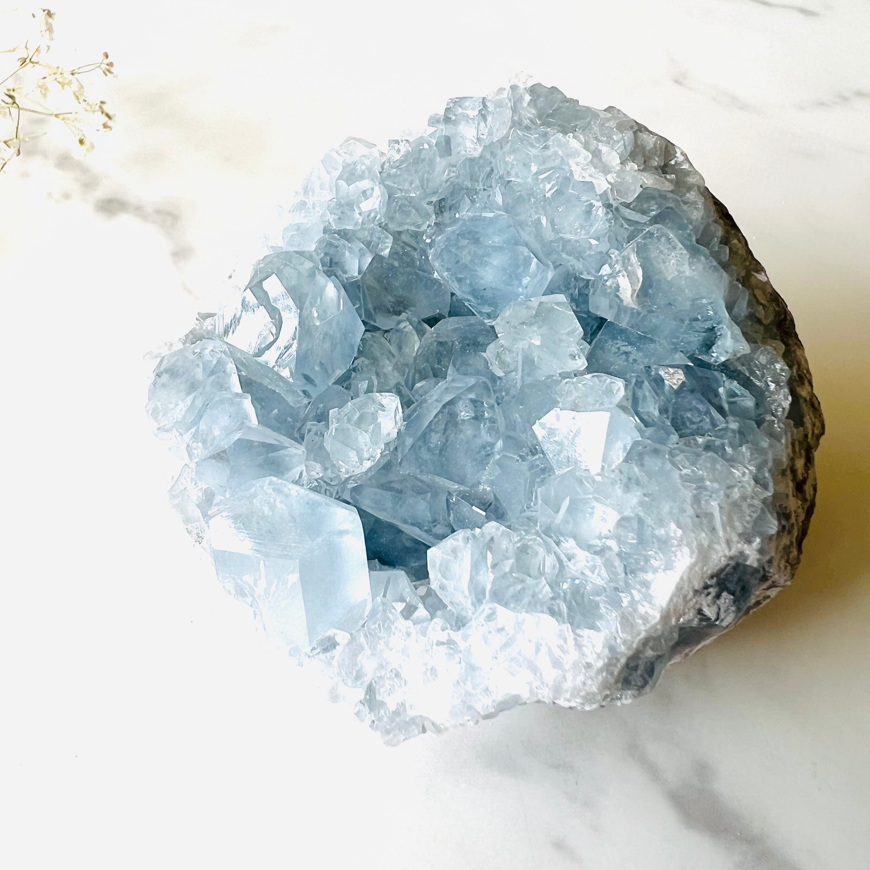 冷たく美しい氷の結晶をギュッと詰め込んだようなアイスブルーのセレスタイト。
