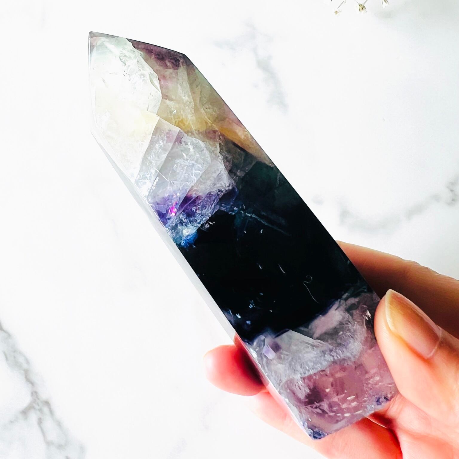 すっきりとクリアに透き通ったブルーのボディが印象的なフローライトタワーです。