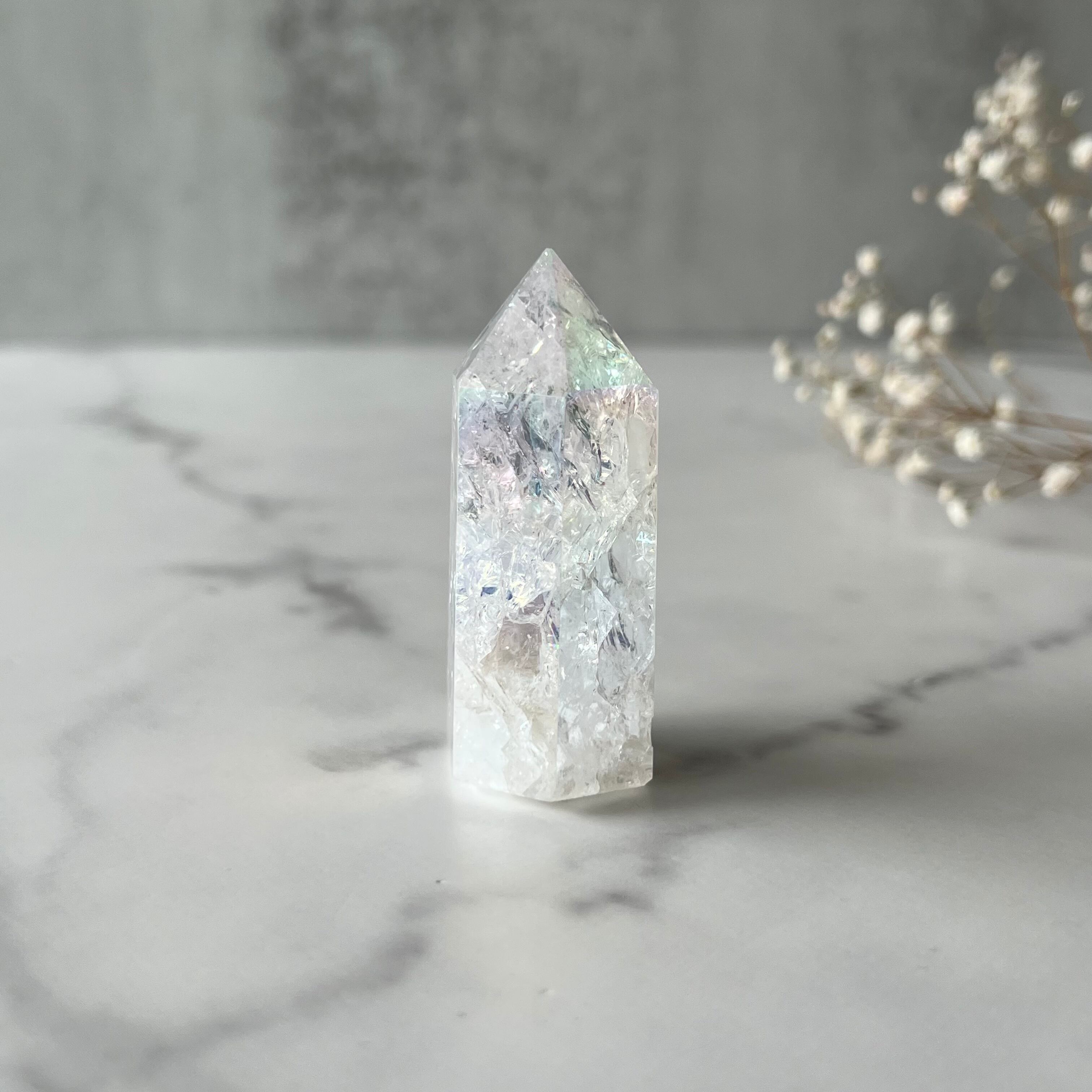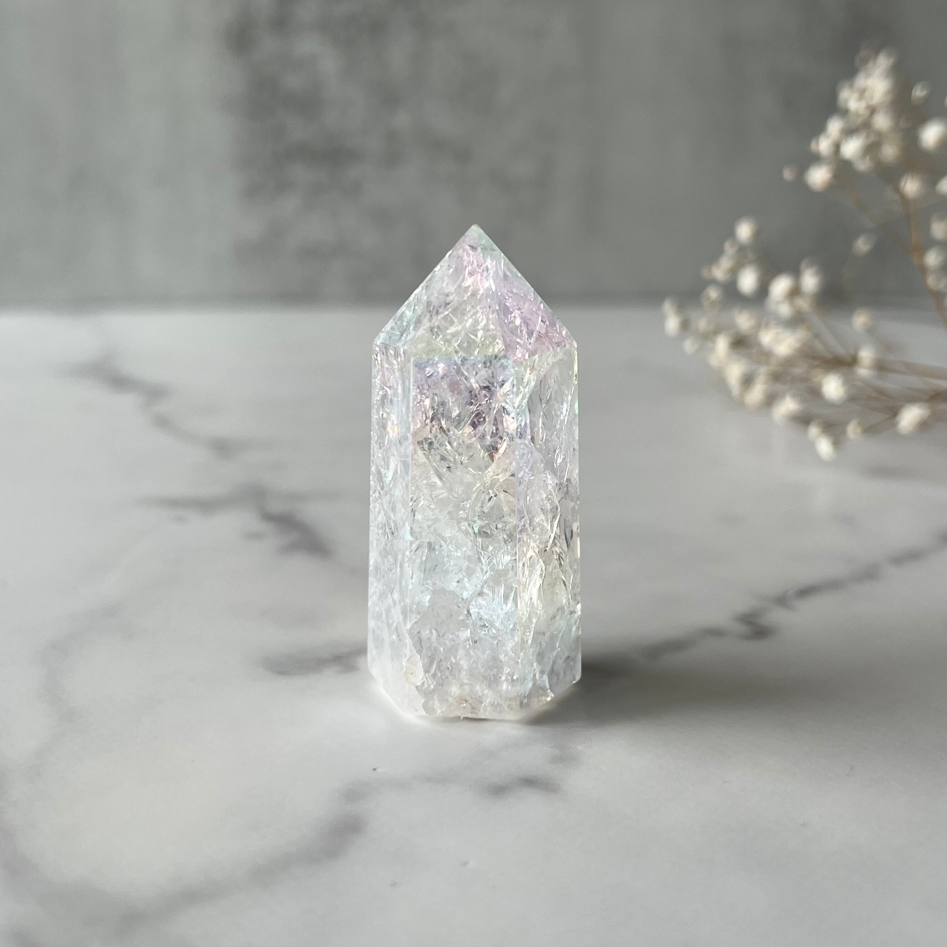 人工的にクラックを入れて、オーロラ加工を施した水晶ポイントです。