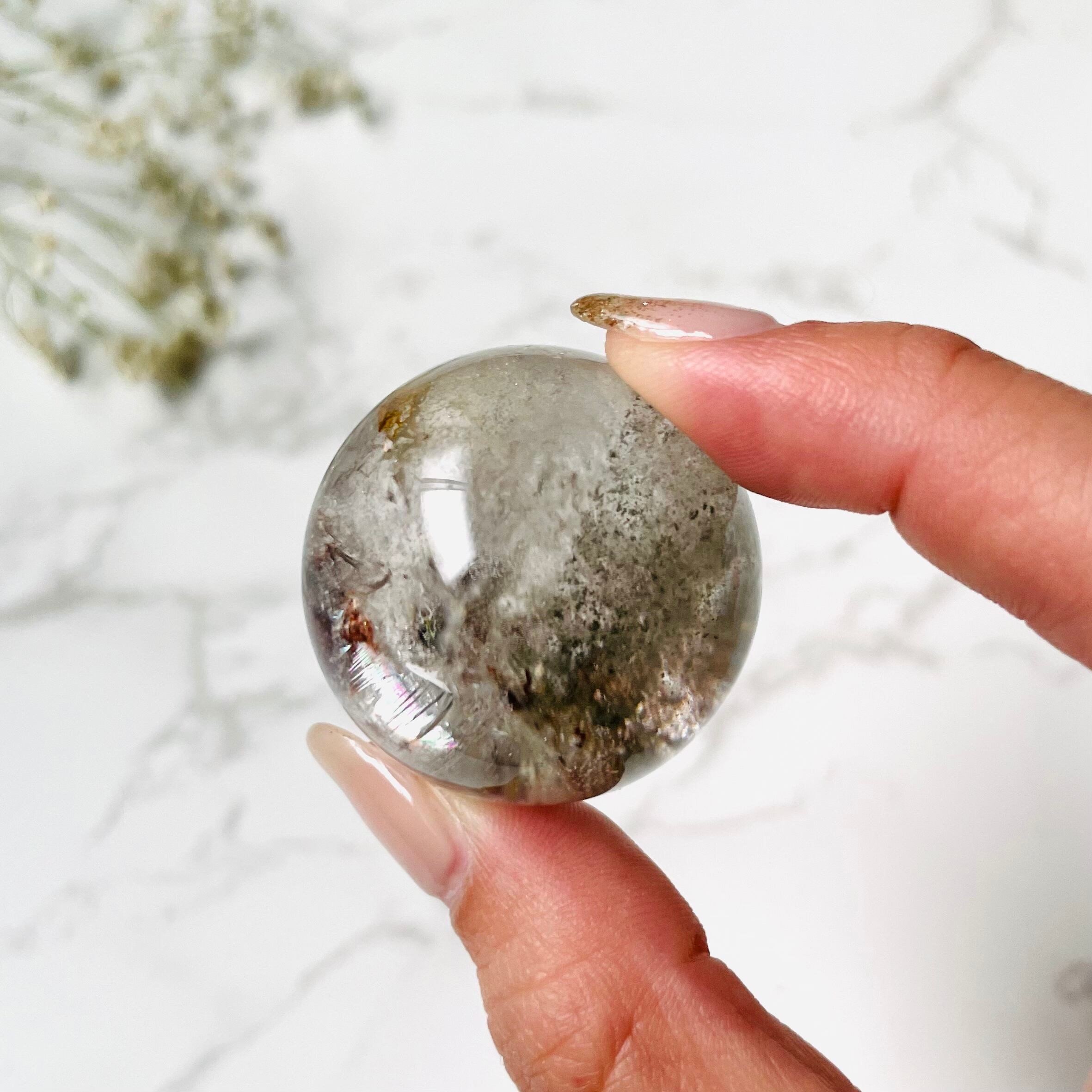 小さくて可愛いサイズのガーデンクォーツスフィアです。