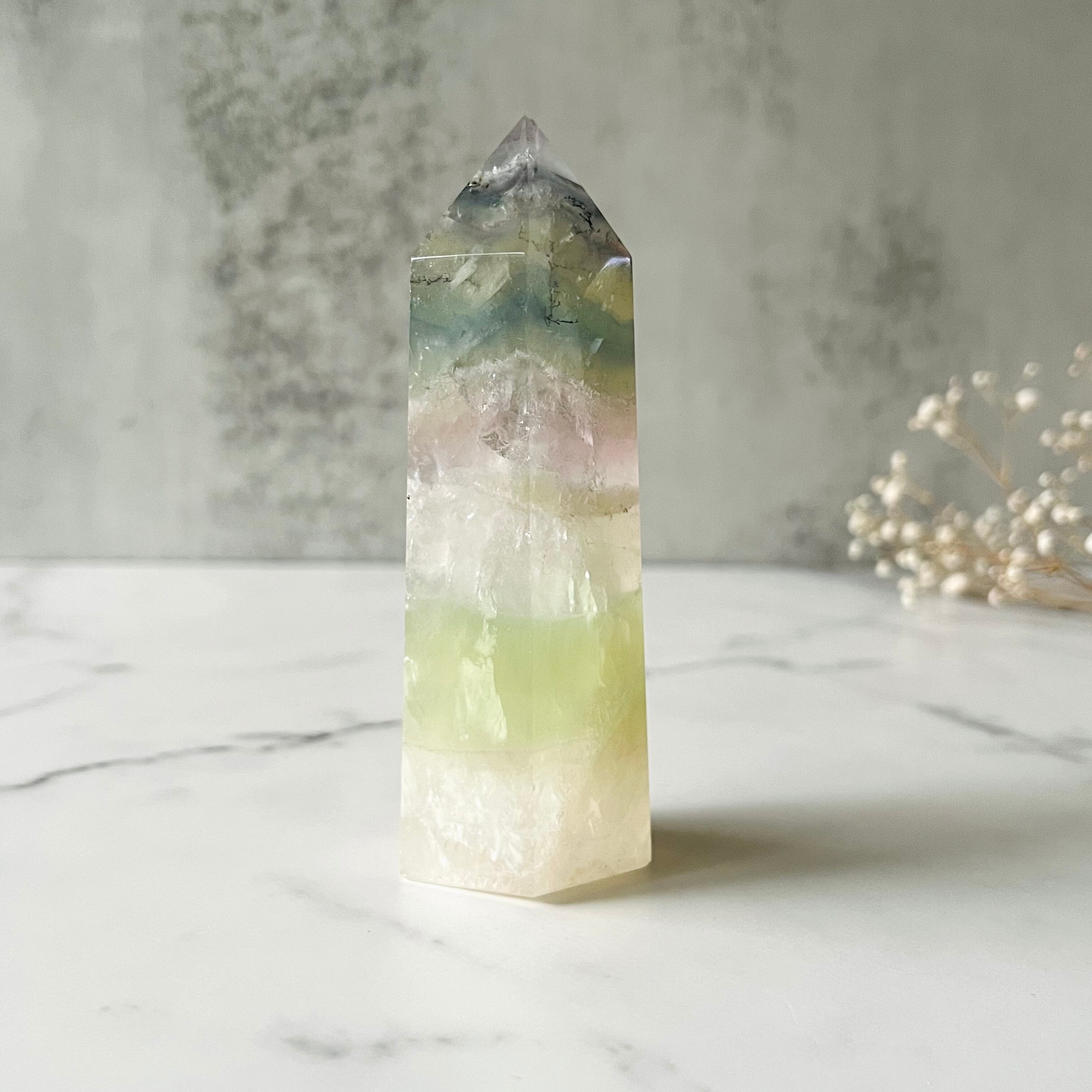 明るい色のグラデーションが可愛いフローライトタワーです。