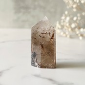 ※水晶の中に針状鉱物が内包されており、研磨により表面にルチルが突出したり、表面のルチルが取れて凹みになっていることがありますが、これはこの石の特性によるものです。また、ルチルの根っこのような黒い内包物が見られることもあります。
