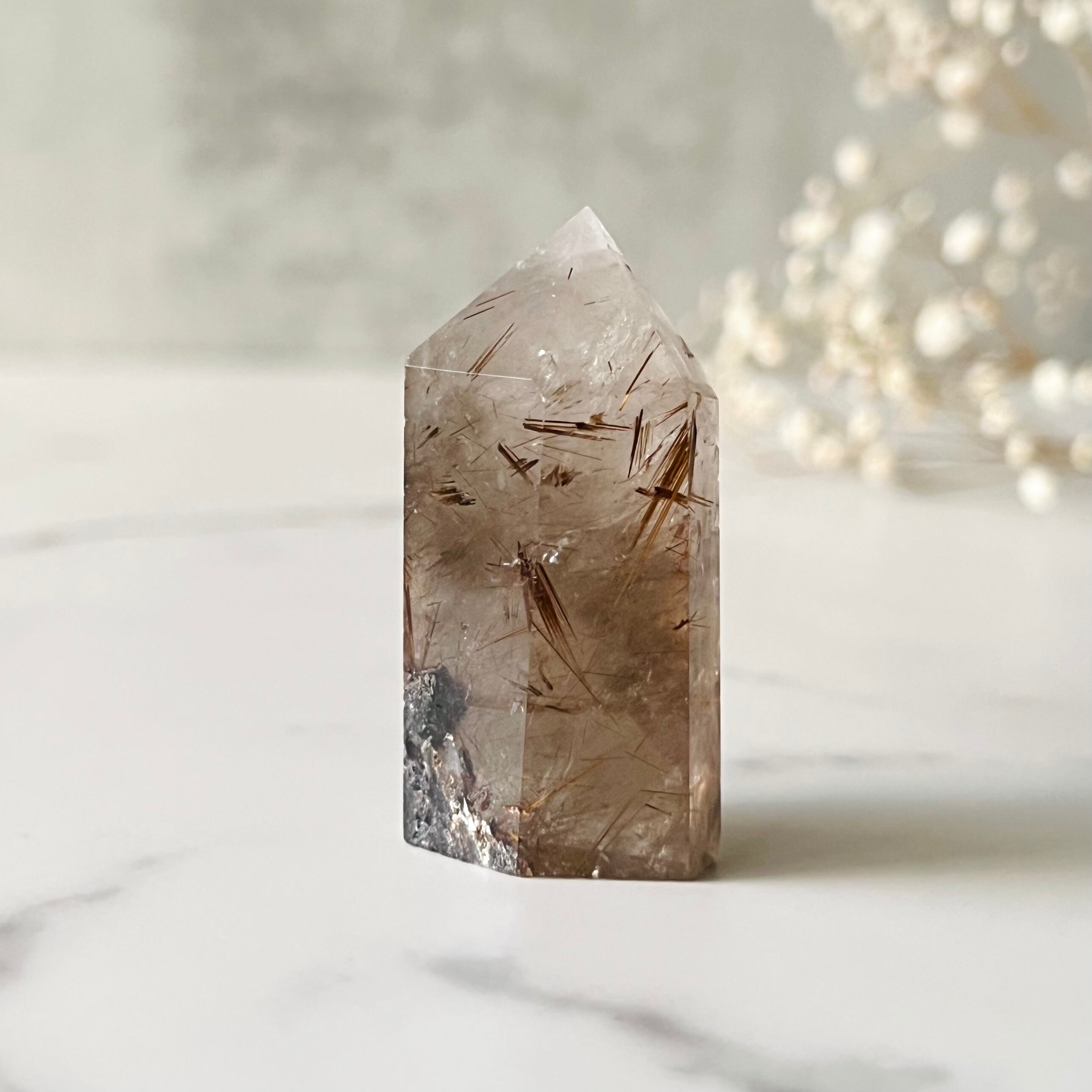 太いルチルがしっかり入ったルチルクォーツポイントです。