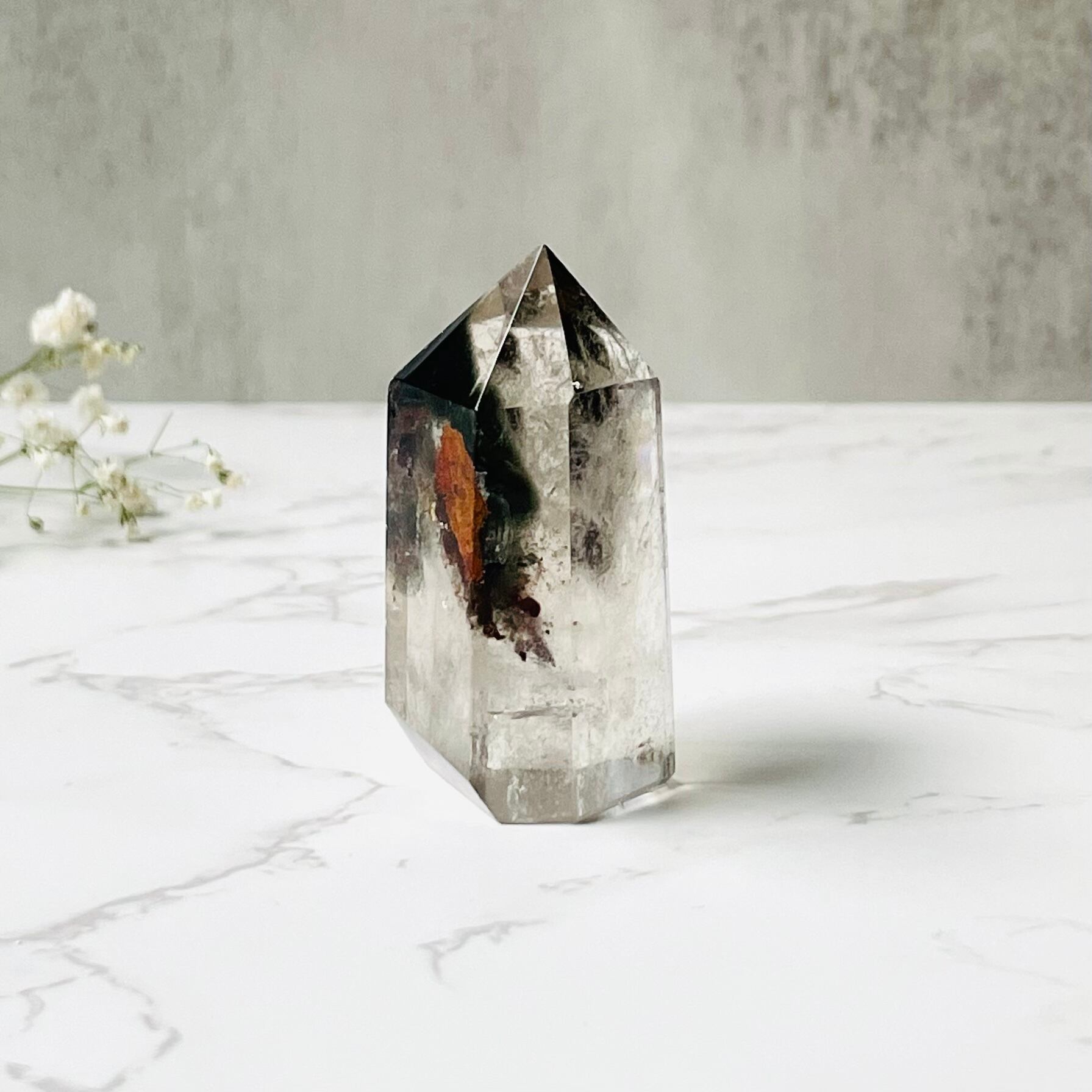 ガーデンクォーツは水晶が形成される過程で、緑や茶色の鉱物を巻き込みながら結晶した水晶です。水晶の中に自然の風景を閉じ込めらたように見えるため、「庭園水晶」や「苔入り水晶」とも呼ばれます。石の中に見える風景は実に様々で、内包物の状態や色によって、山や川、野原や森林などを連想させてくれます。