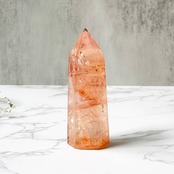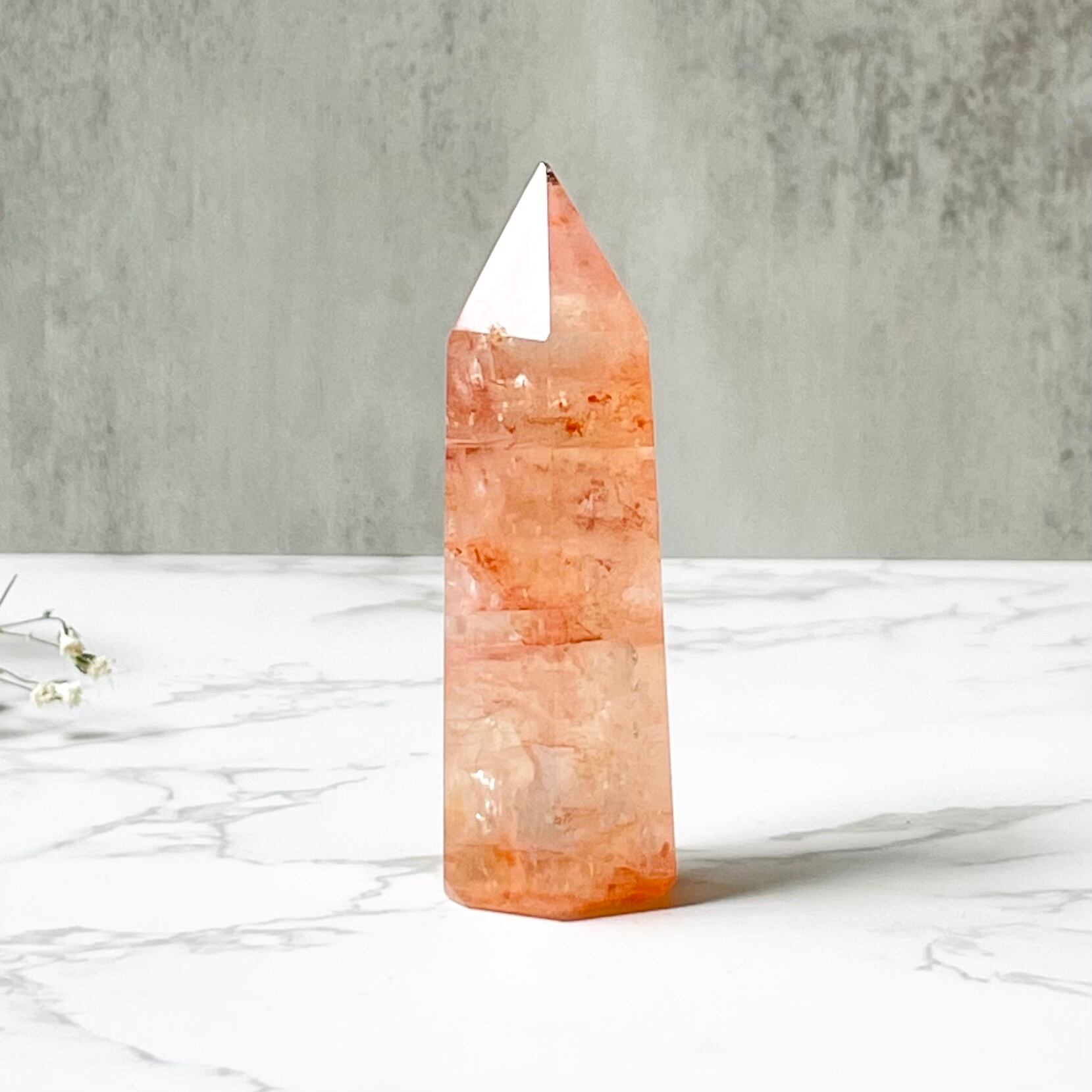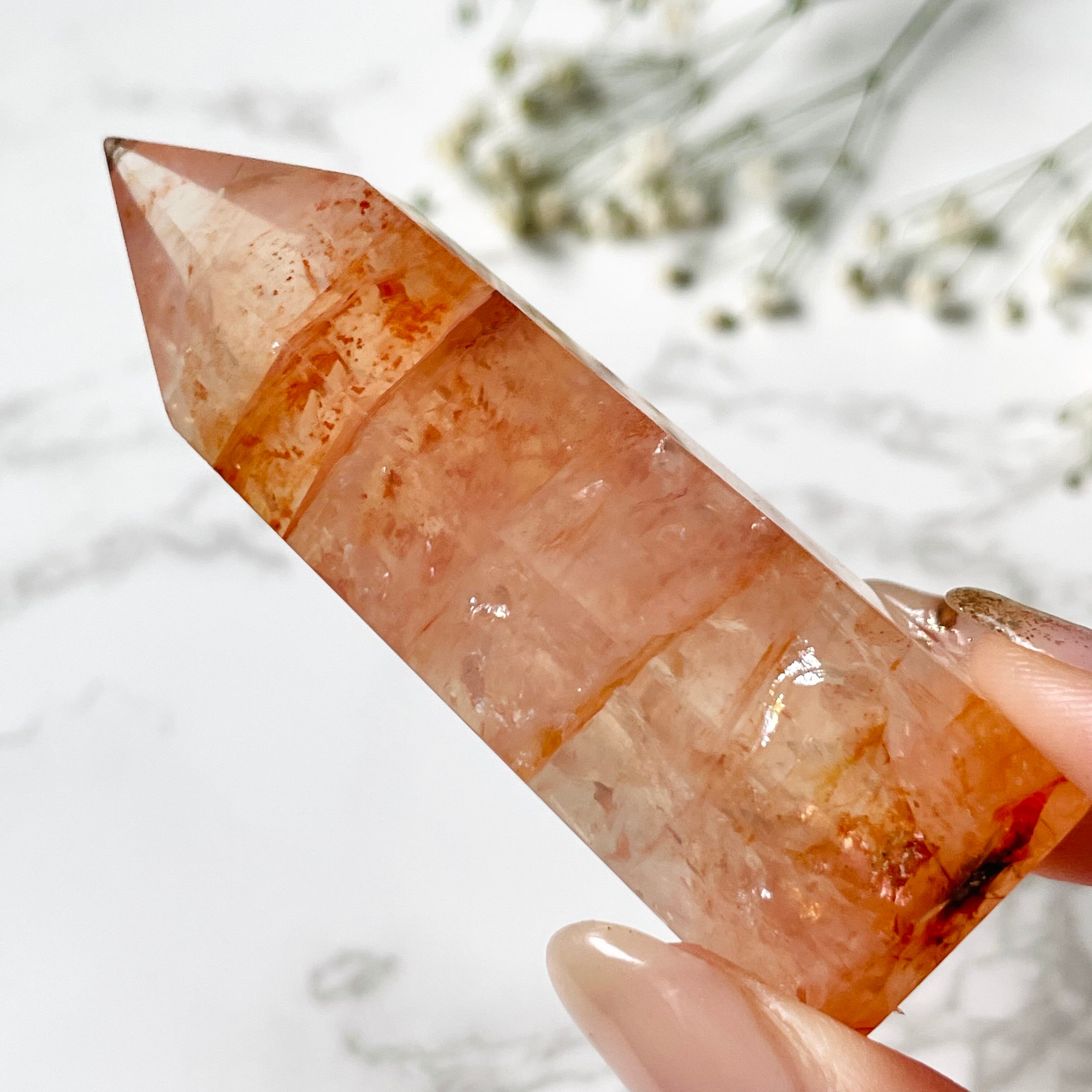 レピドクロサイトを内包した水晶で、別名「レピドクロサイト イン クォーツ」と言います。 スーパーセブンやストロベリークォーツと同じくクリスタルヒーラーに人気があるパワーストーンで、全体的に赤みを帯びていることから「情熱」「力強さ」を表し、持ち主に自信と決断力を与えると言われています。