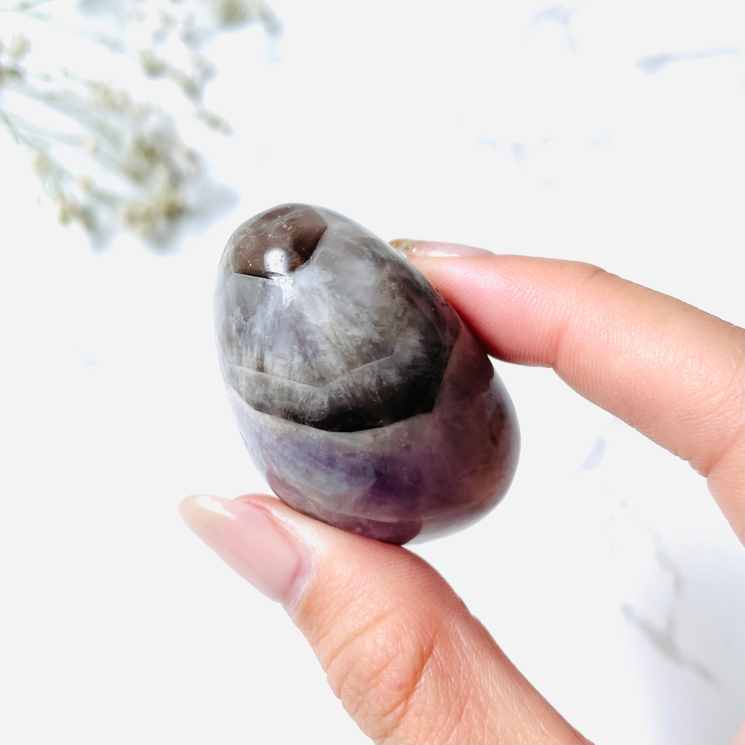 アメジストとホワイトクリスタルが交互に縞状になっている希少なタイプのアゼツライトです。