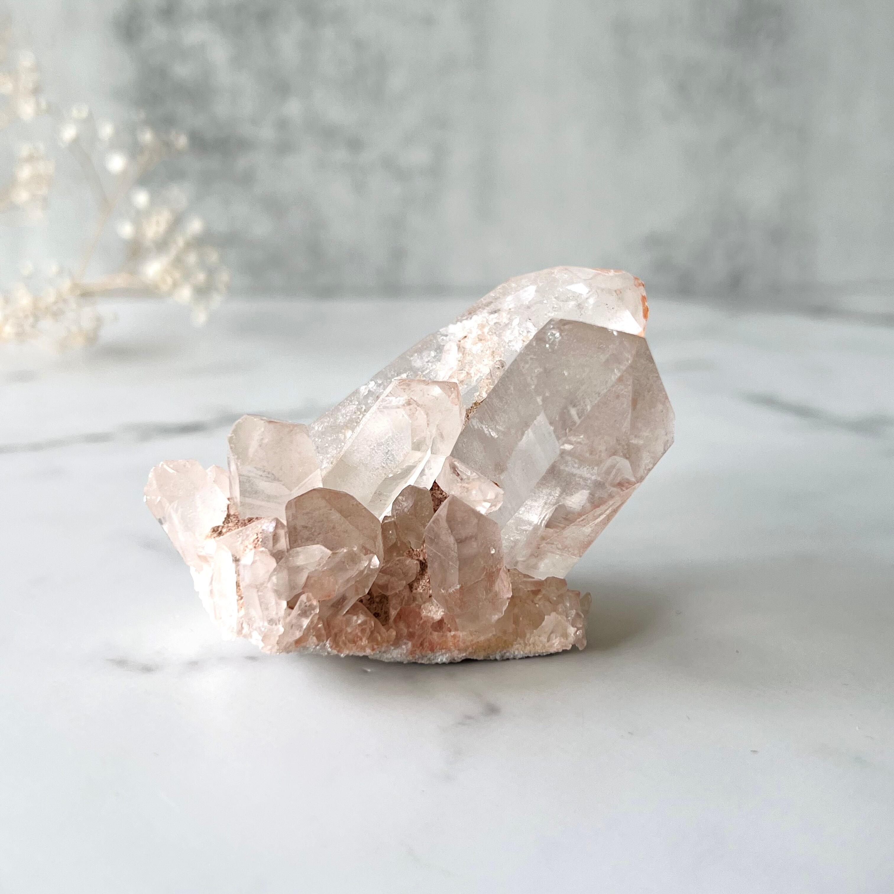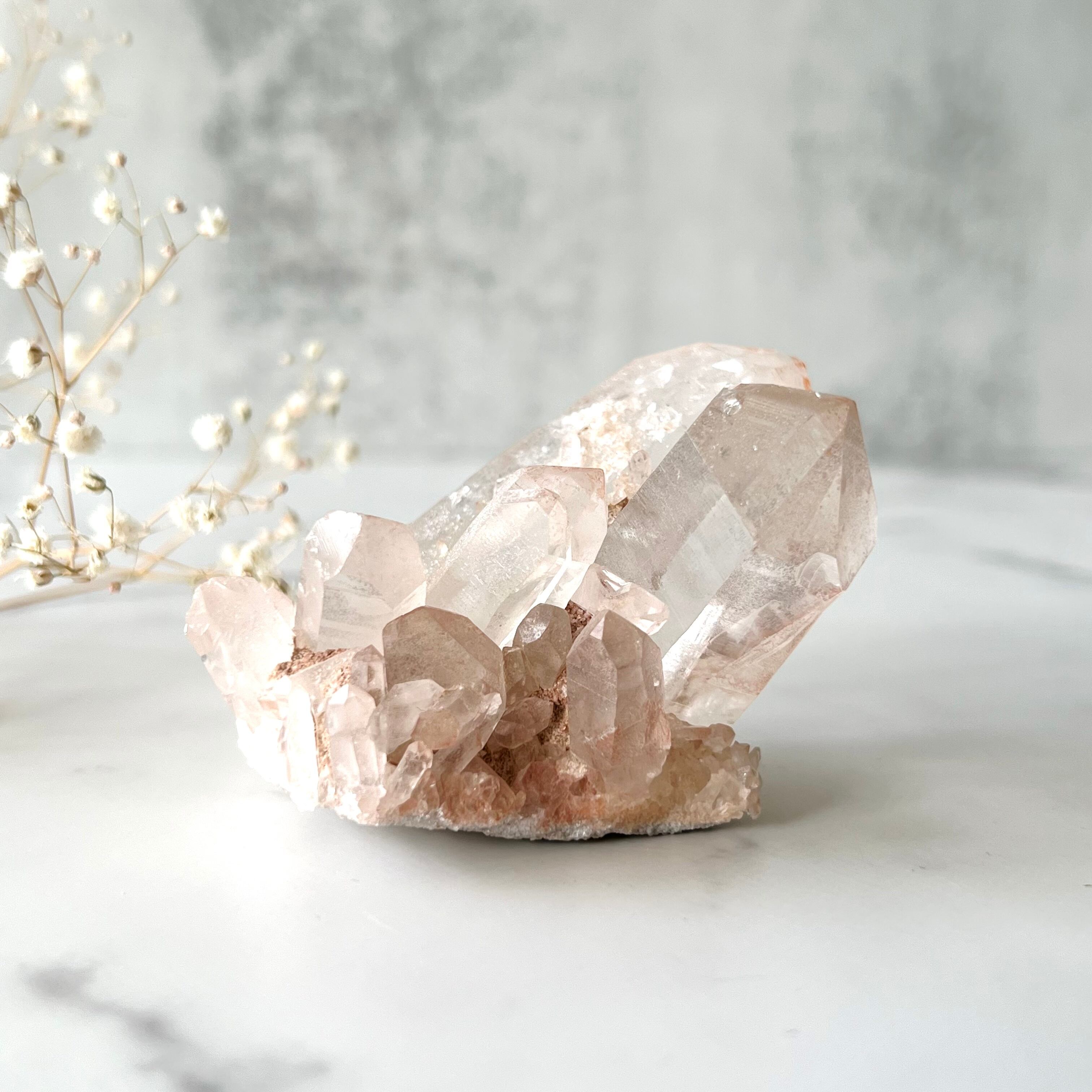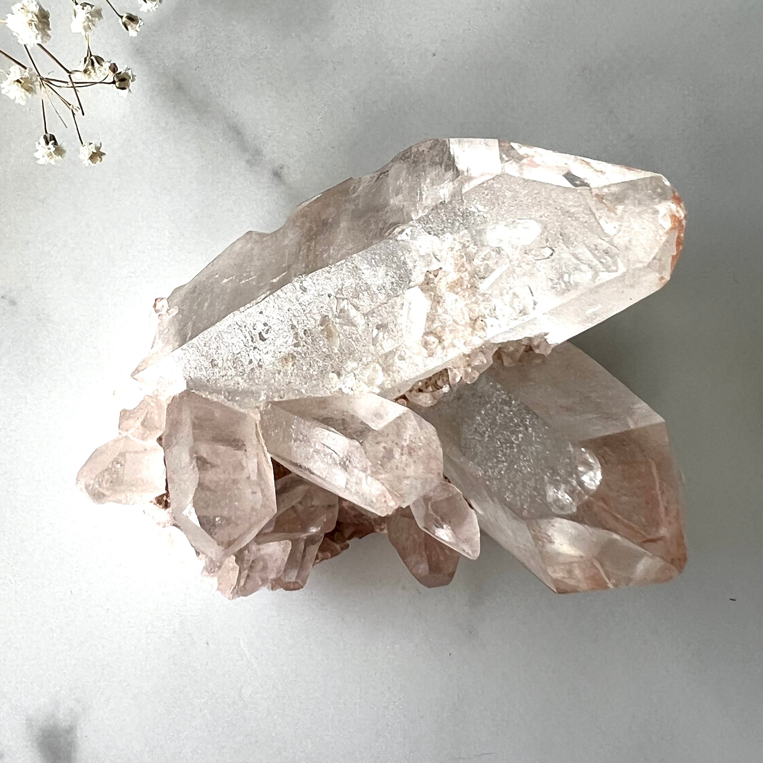 ほんのりピンク色が可愛いピンク水晶のクラスターです。