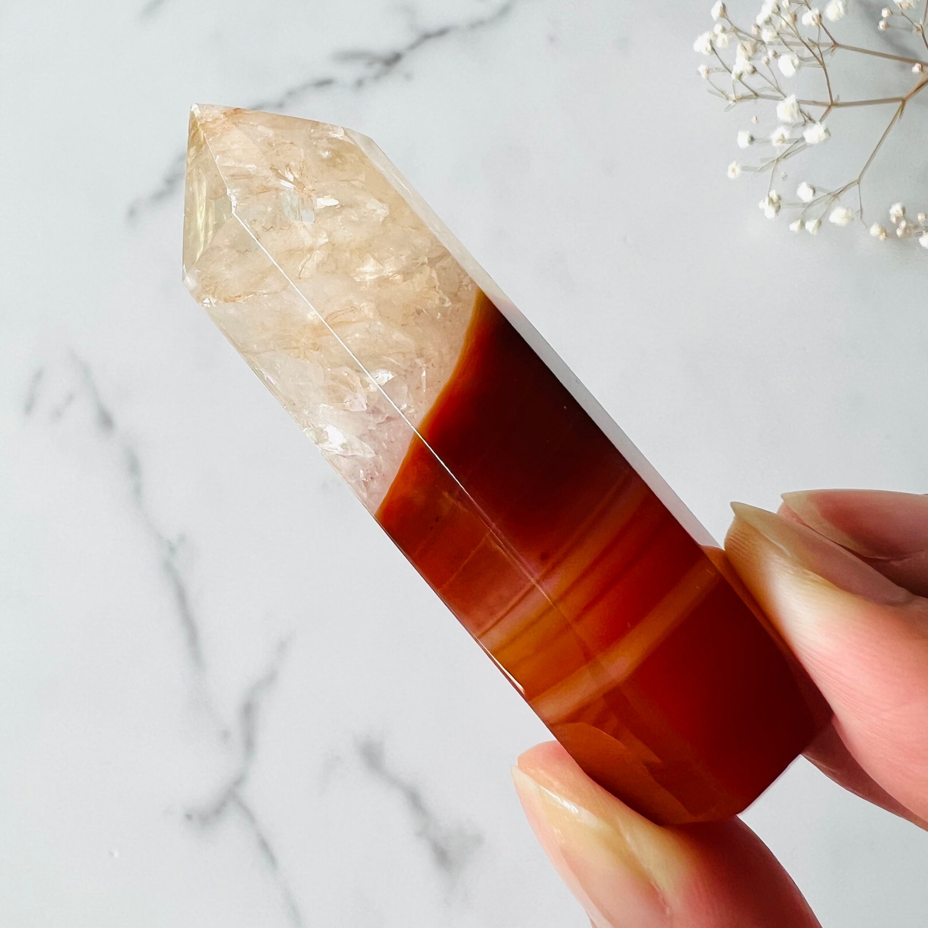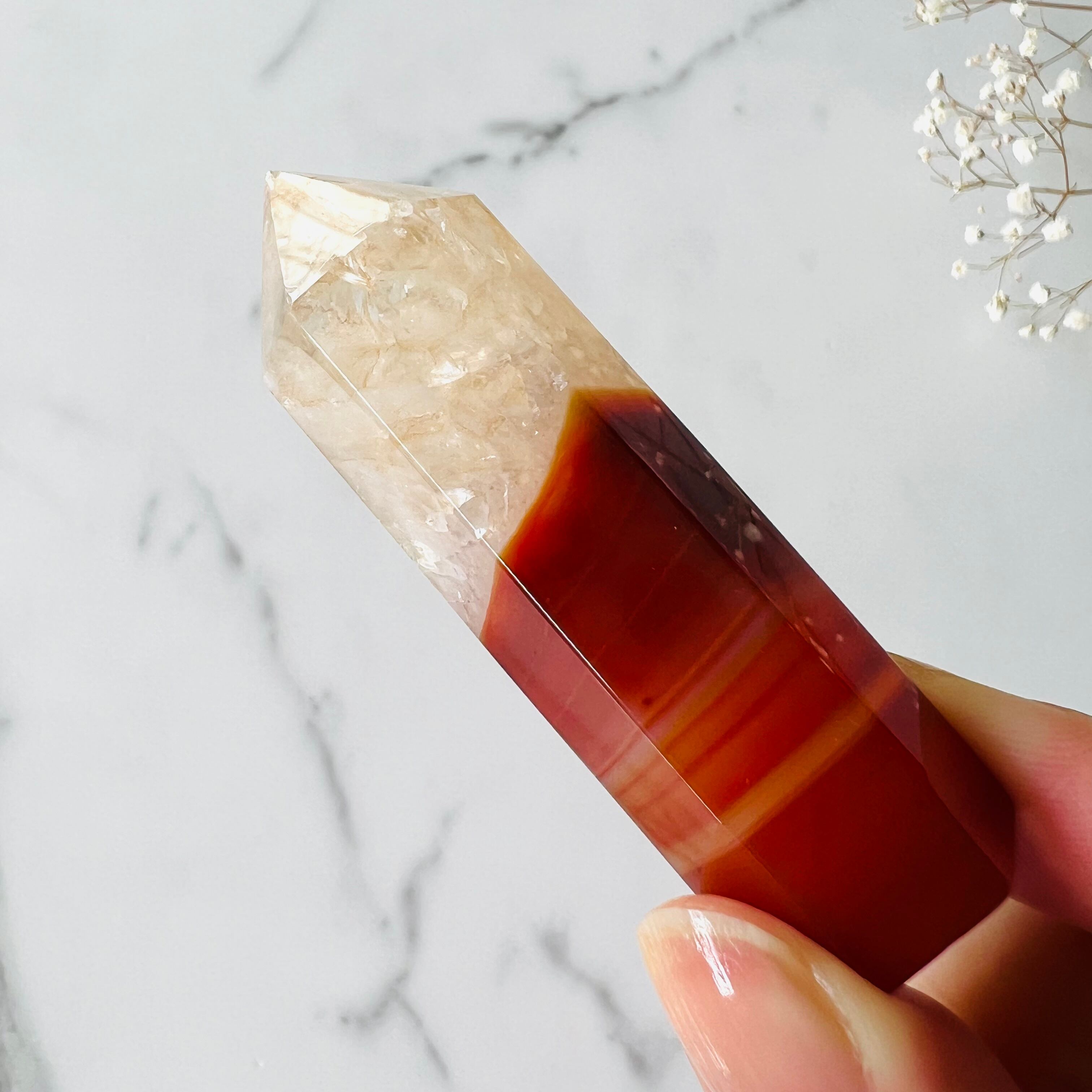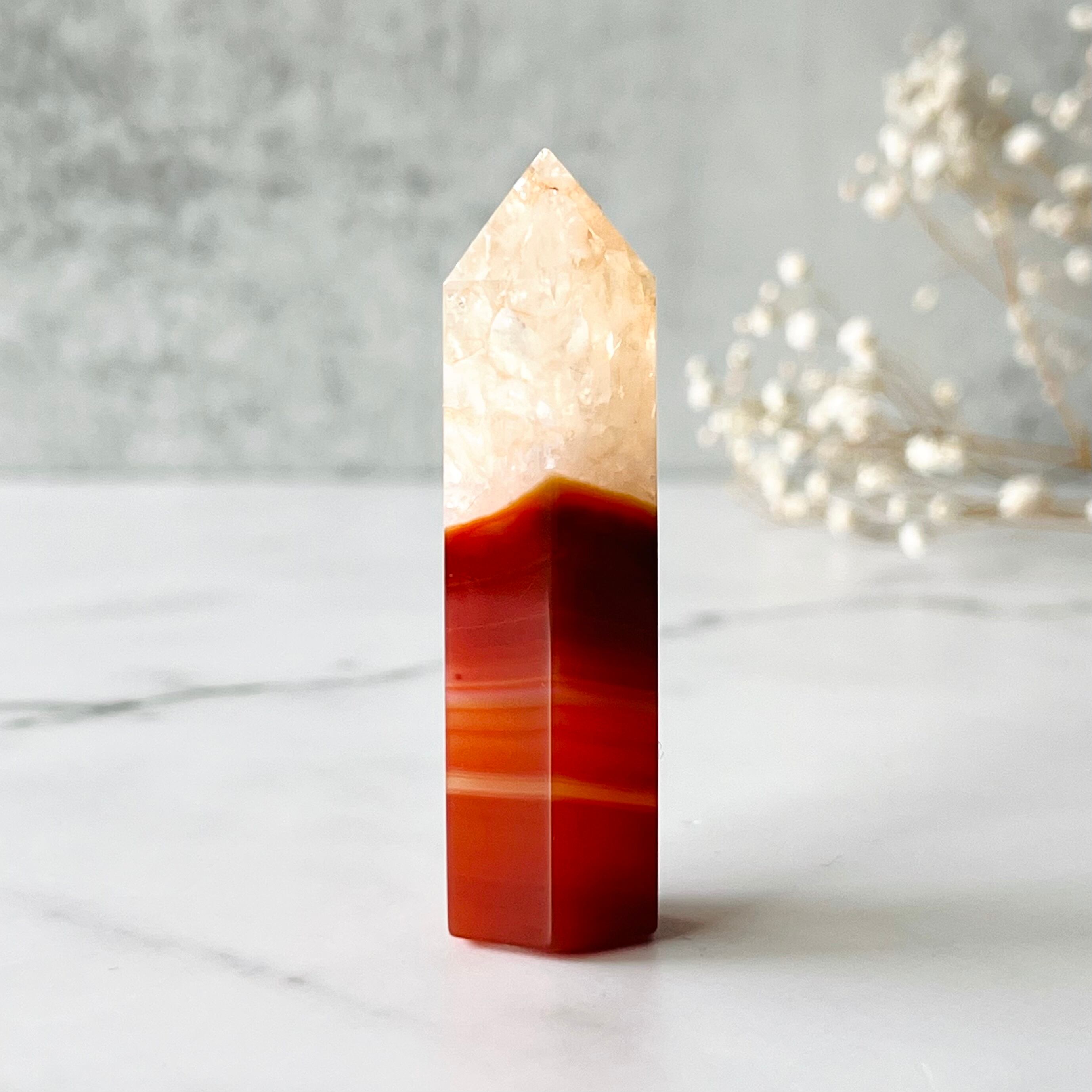 透け感のあるトップと赤いボトムのバイカラーが可愛いカーネリアンタワーです。