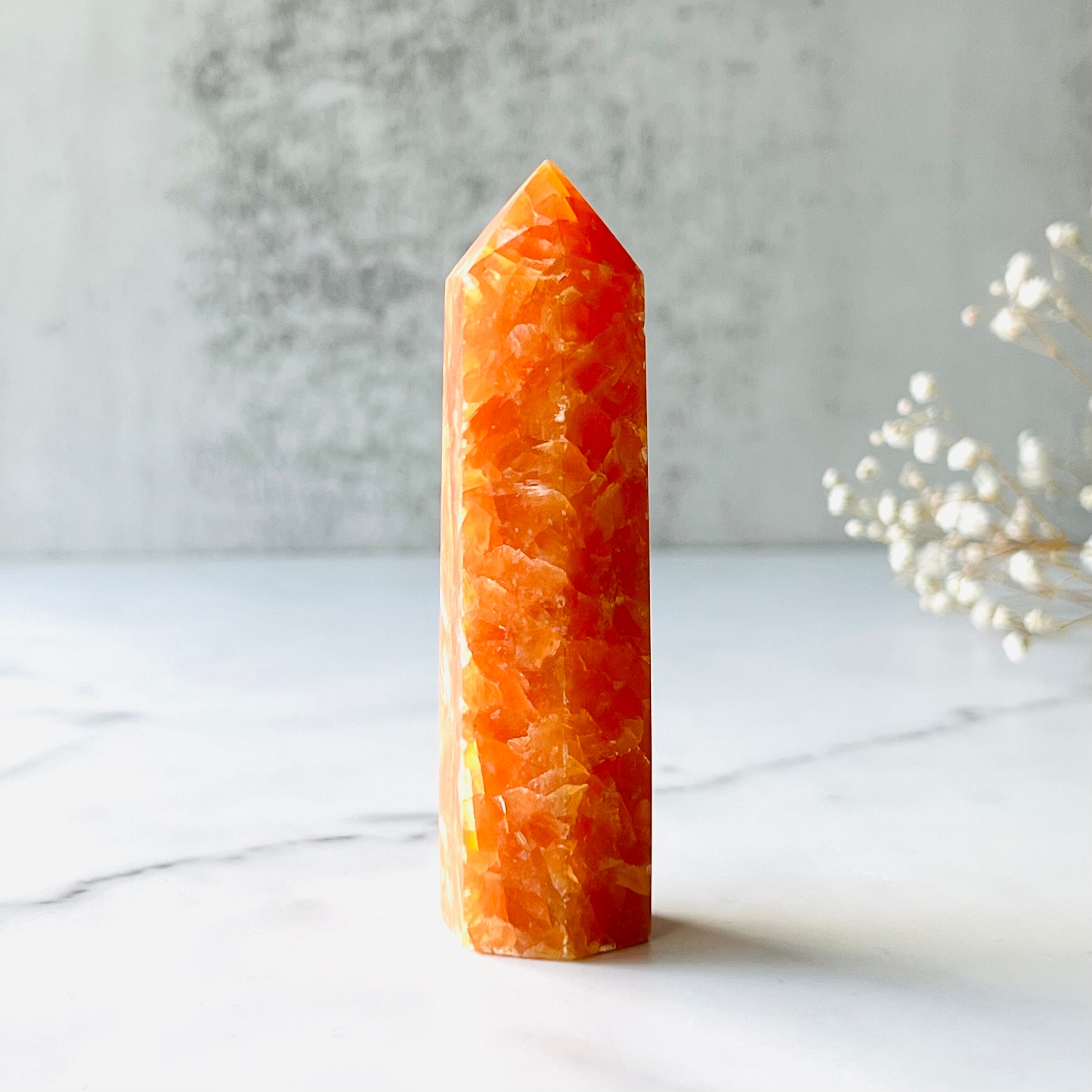 鮮やかなオレンジ色のサンストーンです。生きる希望とエネルギーを与えてくれそうな、元気いっぱいのアイテムです。ピュアなオレンジ色は果実そのものを見ているようにフレッシュで美味しそうです。