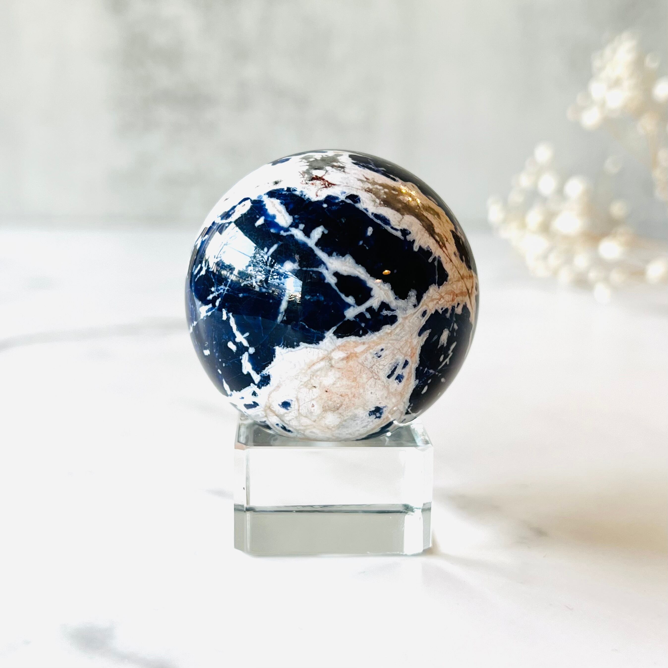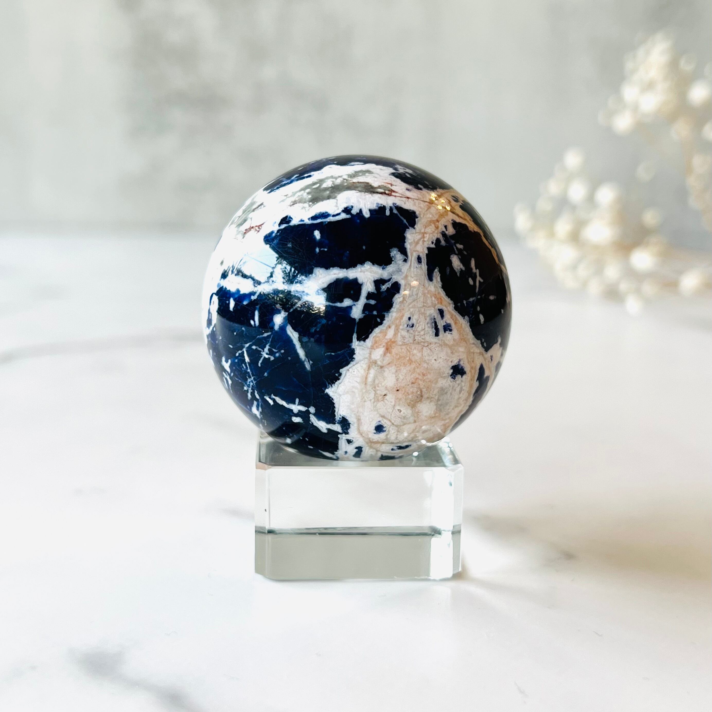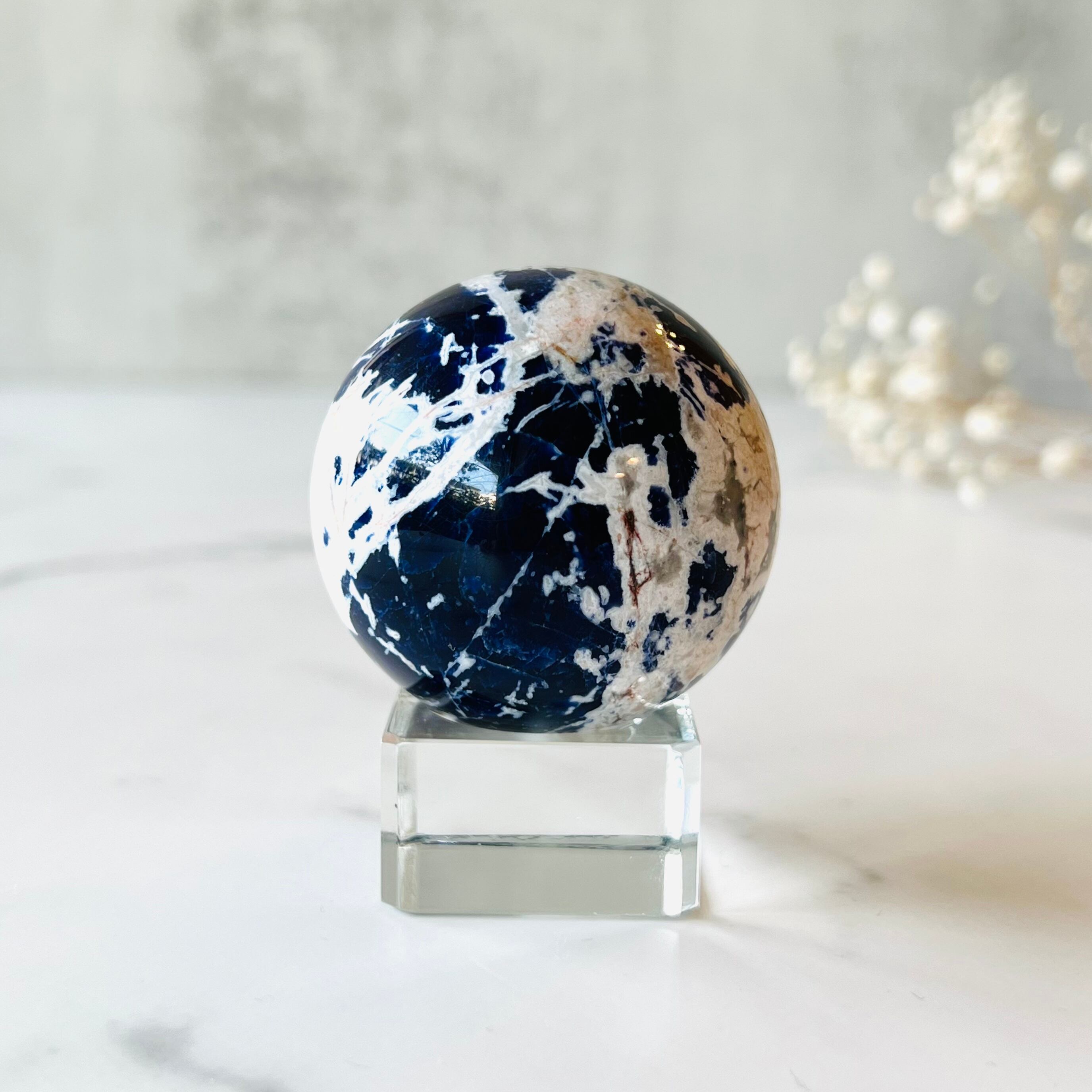 ソーダライトはバランスよく白が入っているものが人気で、数あるスフィアの中から美しいものを厳選しました。