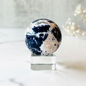 美しいブルーにホワイトとブラウンの模様が可愛いソーダライトスフィアです。