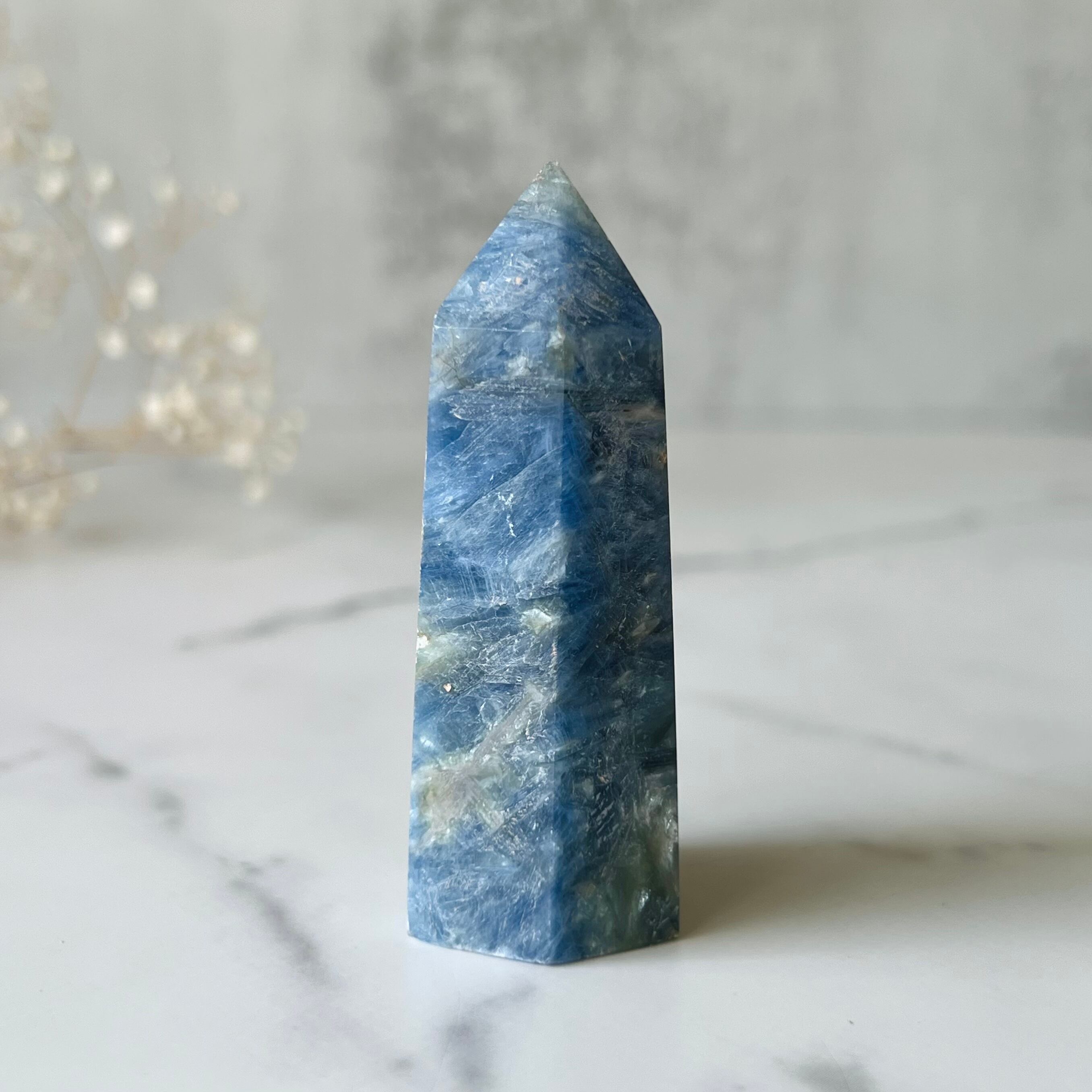 ゴッホの名作「星月夜」を思わせる美しいブルーのカイヤナイトタワーです。