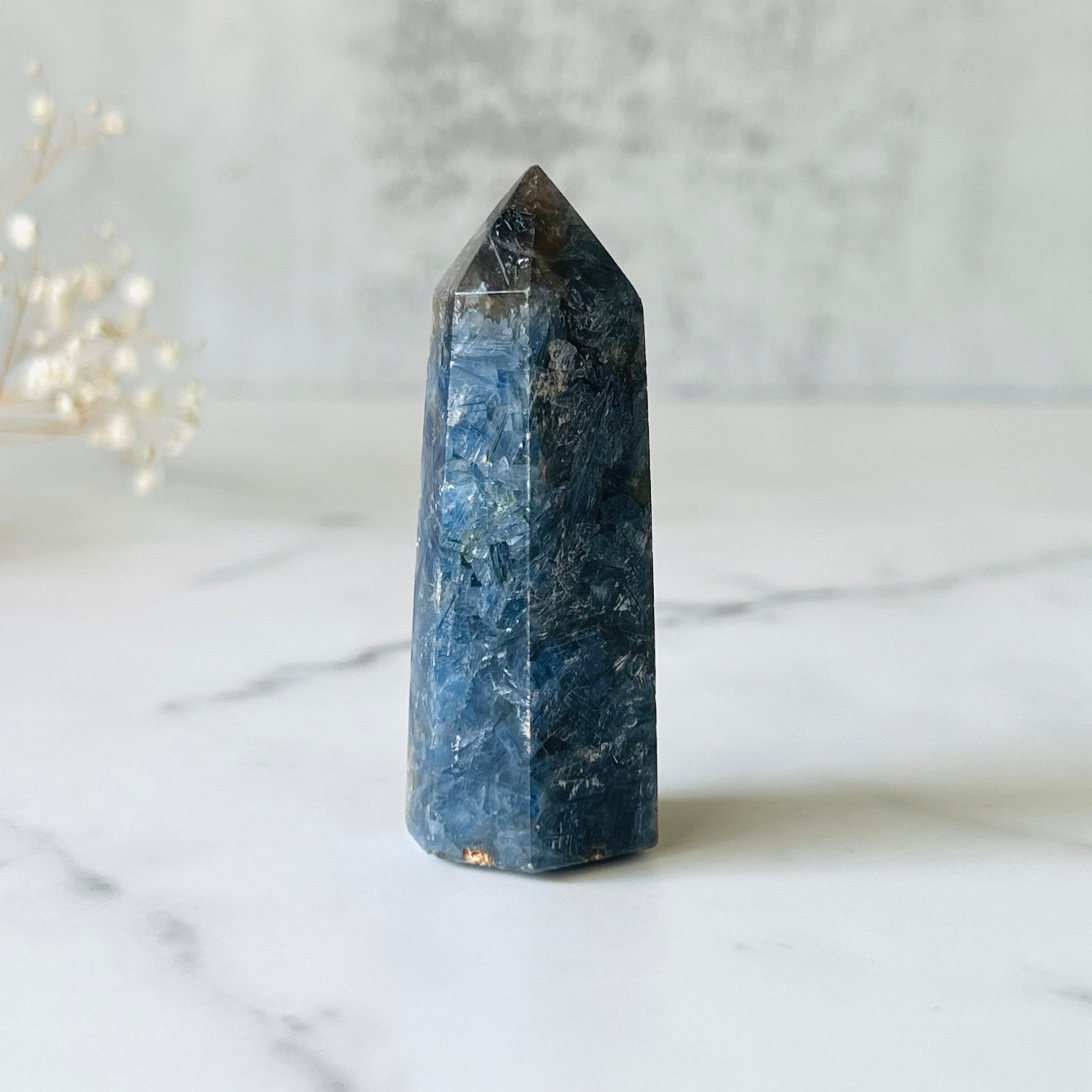 ゴッホの名作「星月夜」を思わせる美しいブルーのカイヤナイトタワーです。