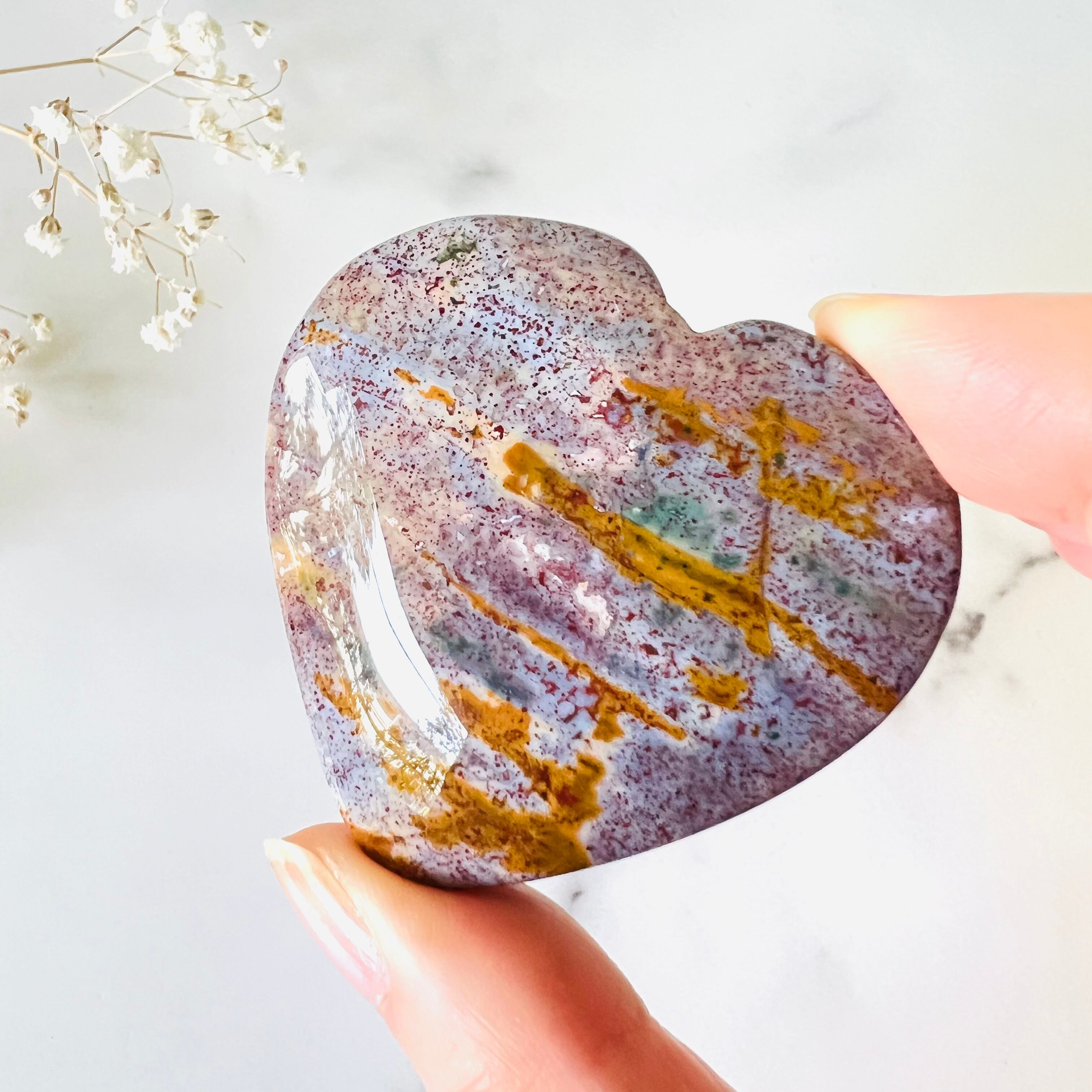 オーシャンジャスパーはその名の通り、海の近くで採掘される天然石です。マダガスカルの決まった産地でのみ採掘され、またすべて手作業で潮が引いた短い時間でしか採掘されないため、産出量が少なく大変希少な天然石です。火山活動によって地上に流出したマグマが自然に冷え固まる際にジオードが形成されたり、あるいは他の鉱物が混ざり合って多彩な色合い、美しいアートのような模様を描き出します。