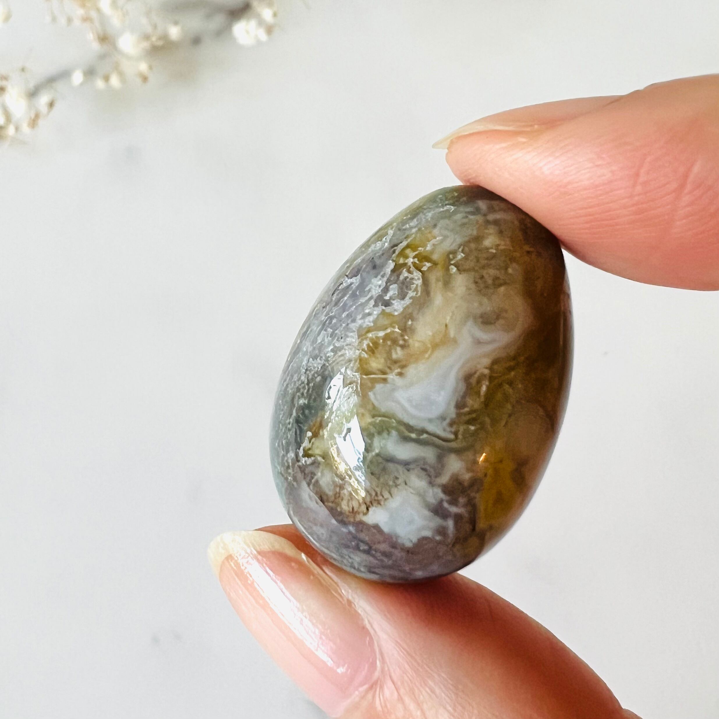 モスアゲートは、癒しの石として知られています。感情の乱れを整え、エゴや執着を解き放ち、心身を安定した状態に保ち、生活に疲れた人に平和で穏やかなパワーをもたらしてくれます。森林浴と同じ効果があると言われており、持ち主に自然の恵みを与え、富と繁栄をもたらすパワーストーンです。