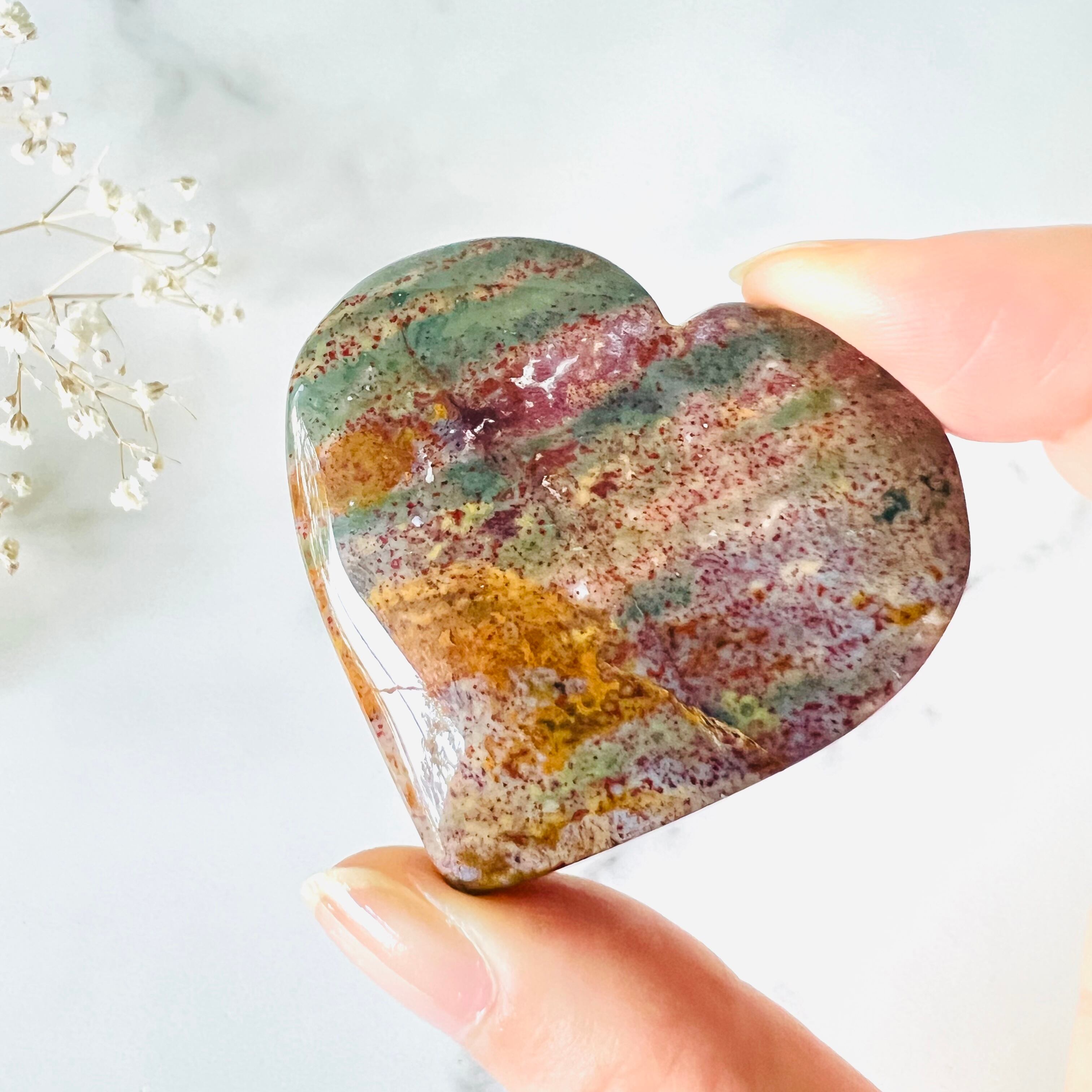 オーシャンジャスパーはその名の通り、海の近くで採掘される天然石です。マダガスカルの決まった産地でのみ採掘され、またすべて手作業で潮が引いた短い時間でしか採掘されないため、産出量が少なく大変希少な天然石です。火山活動によって地上に流出したマグマが自然に冷え固まる際にジオードが形成されたり、あるいは他の鉱物が混ざり合って多彩な色合い、美しいアートのような模様を描き出します。