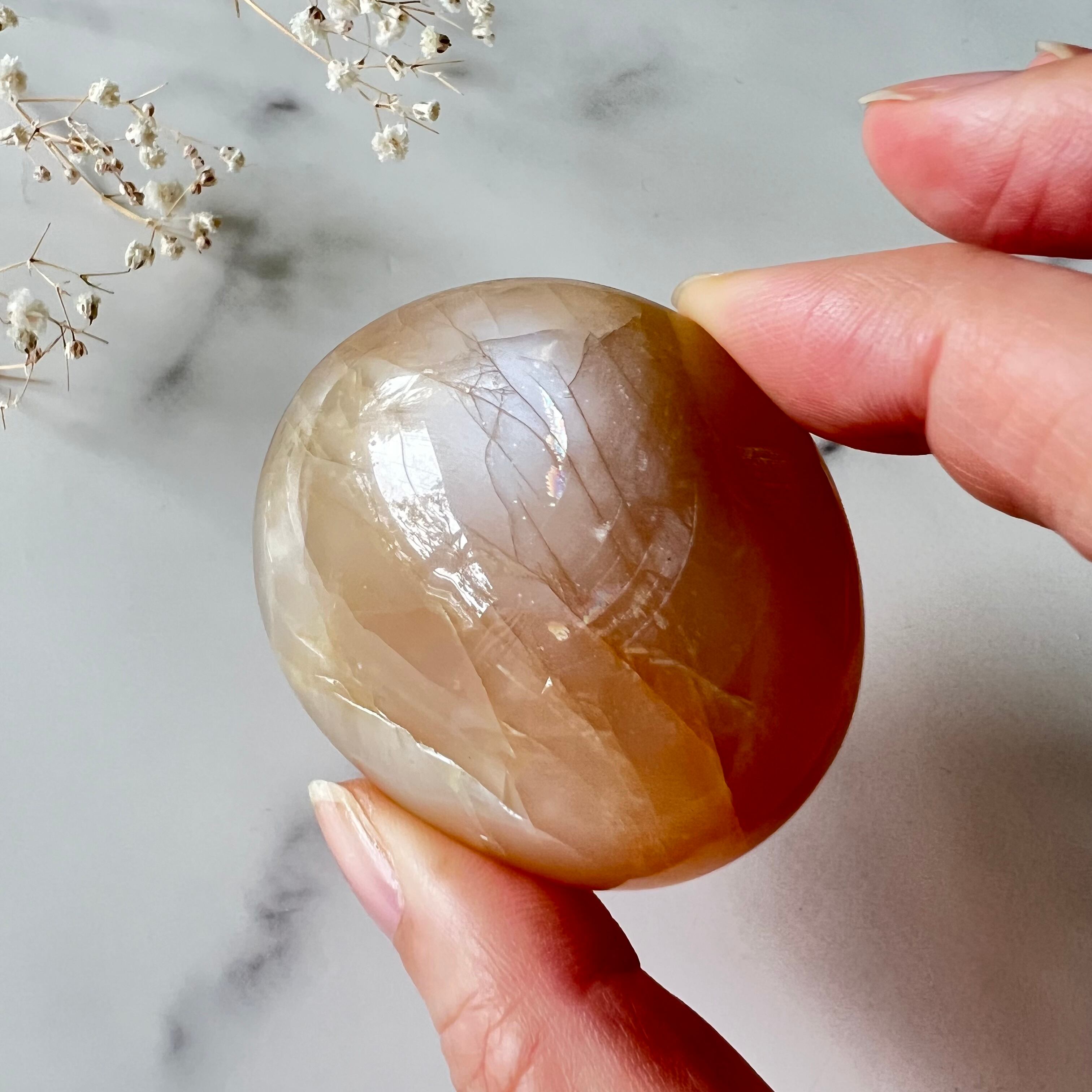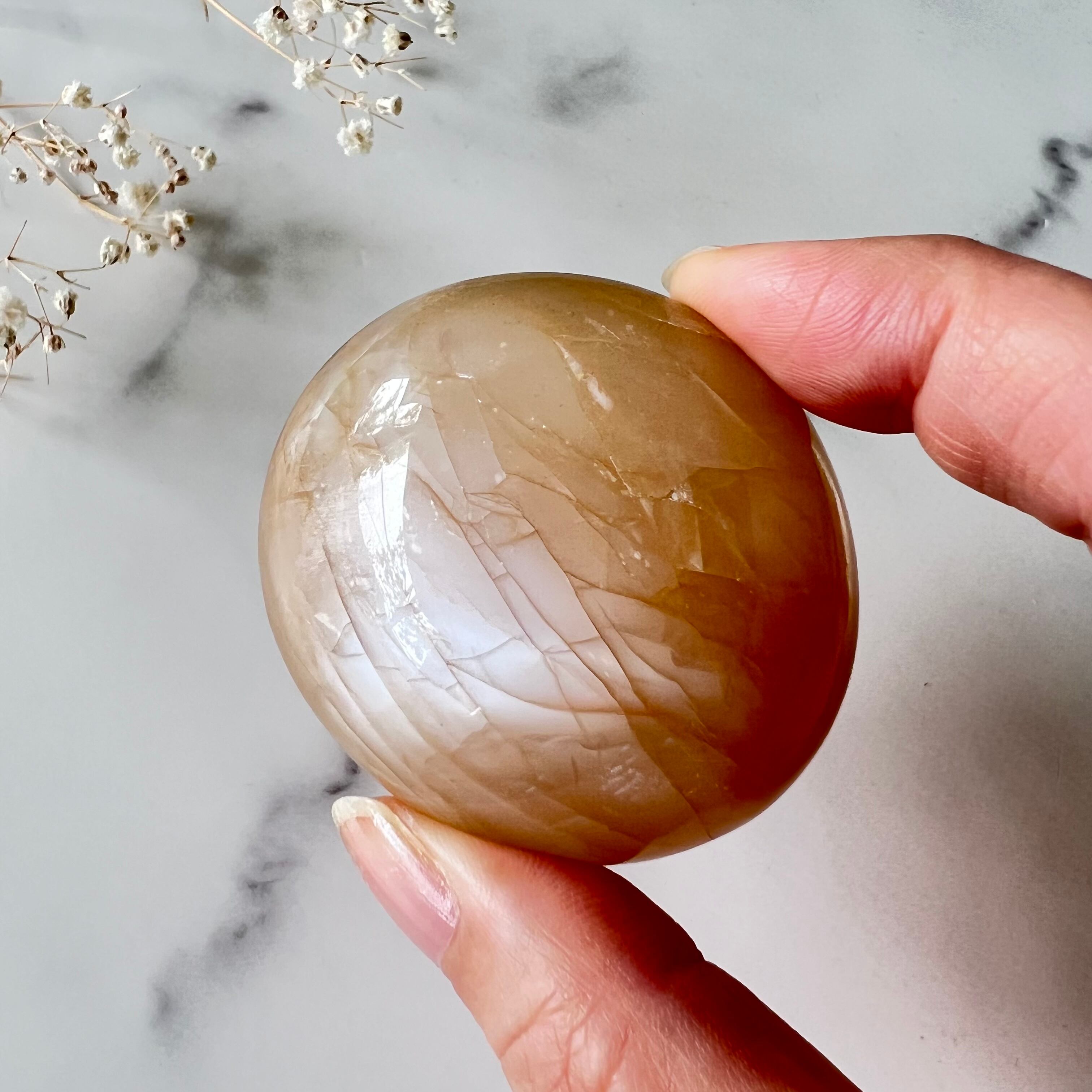 特に妊娠中や産後のお守りとして有名ですが、それに限らず、生理や更年期に伴う女性特有の辛さを感じたら、この石に意識を向けると良いと言われています。滑らかな石の感触は心地よく手のひらに馴染み、心と体の緊張が緩んで解けていくような安らぎと癒しを感じることができます。