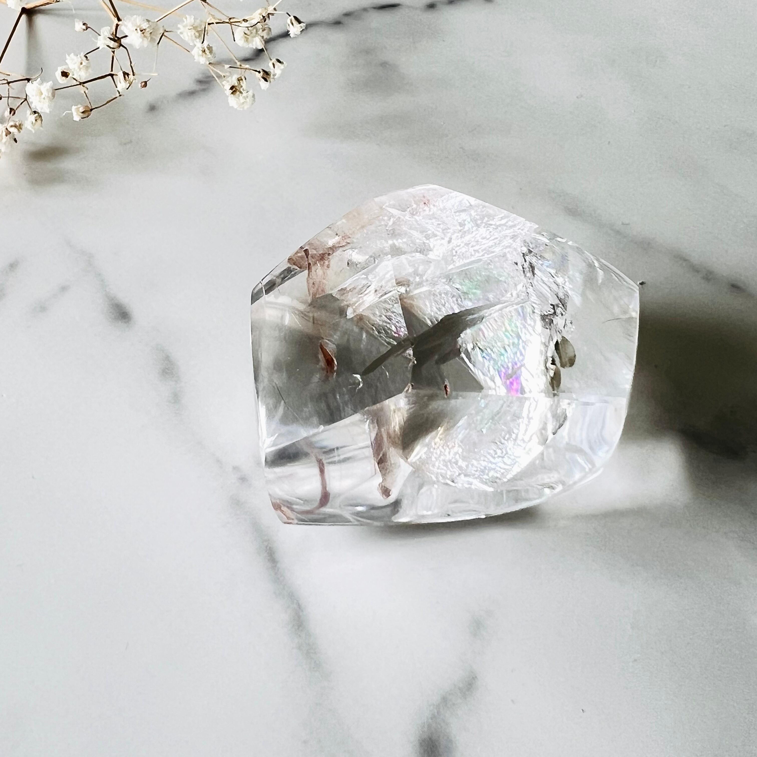 クリアなクォーツとクラックから放たれるレインボーが魅力です。