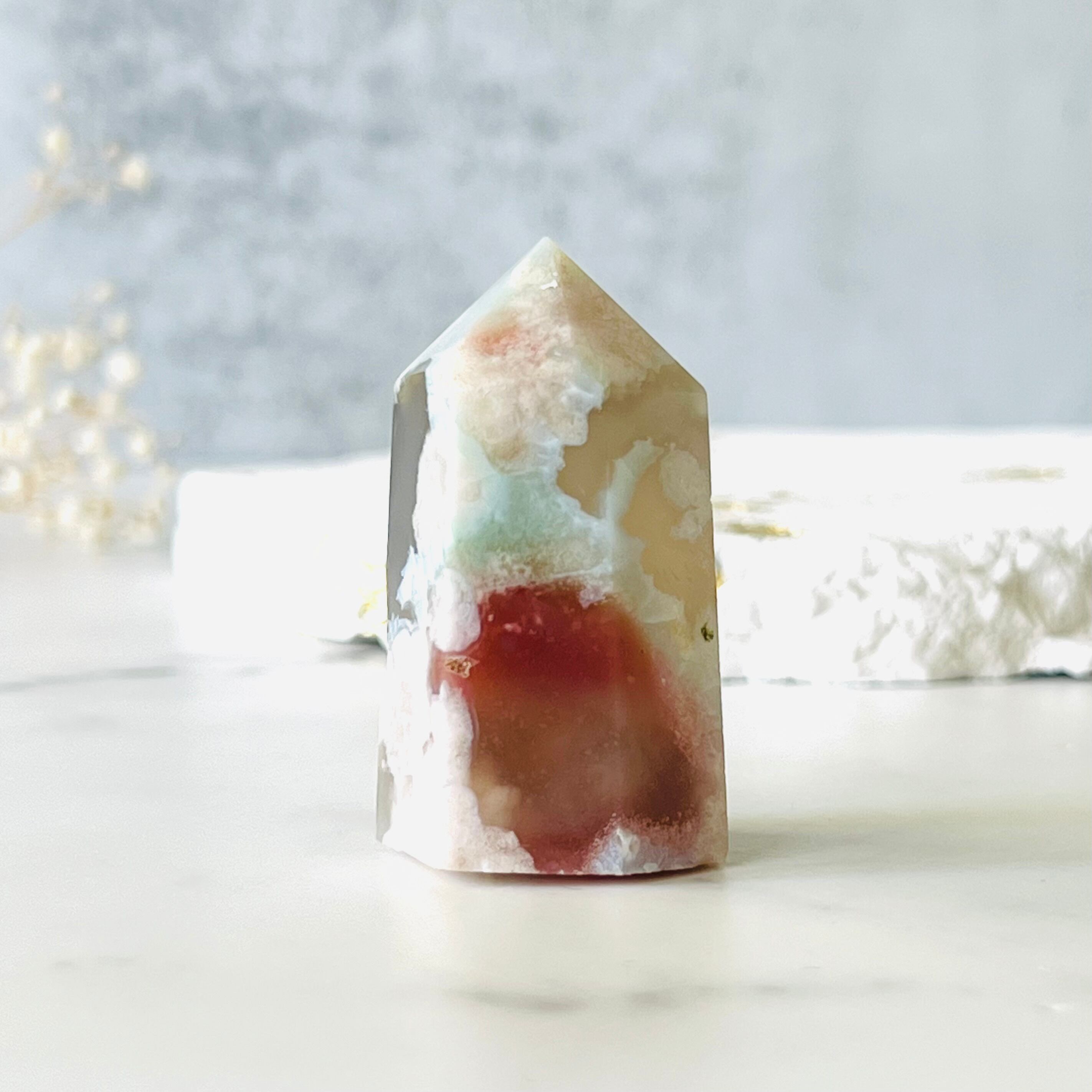 まるで花が咲いているような模様が浮かぶストーンです。小さな石英の集合体という構造から、寄り集まる、基盤を作る、絆を深めるなどの意味があります。アゲートは金運、人間関係運、愛情運、仕事運、健康運など、あらゆる運気に対応するオールマイティさが魅力です。フラワーアゲートはこれらの効果はもちろんのこと、特に愛情に関する願いにパワーを発揮すると言われています。