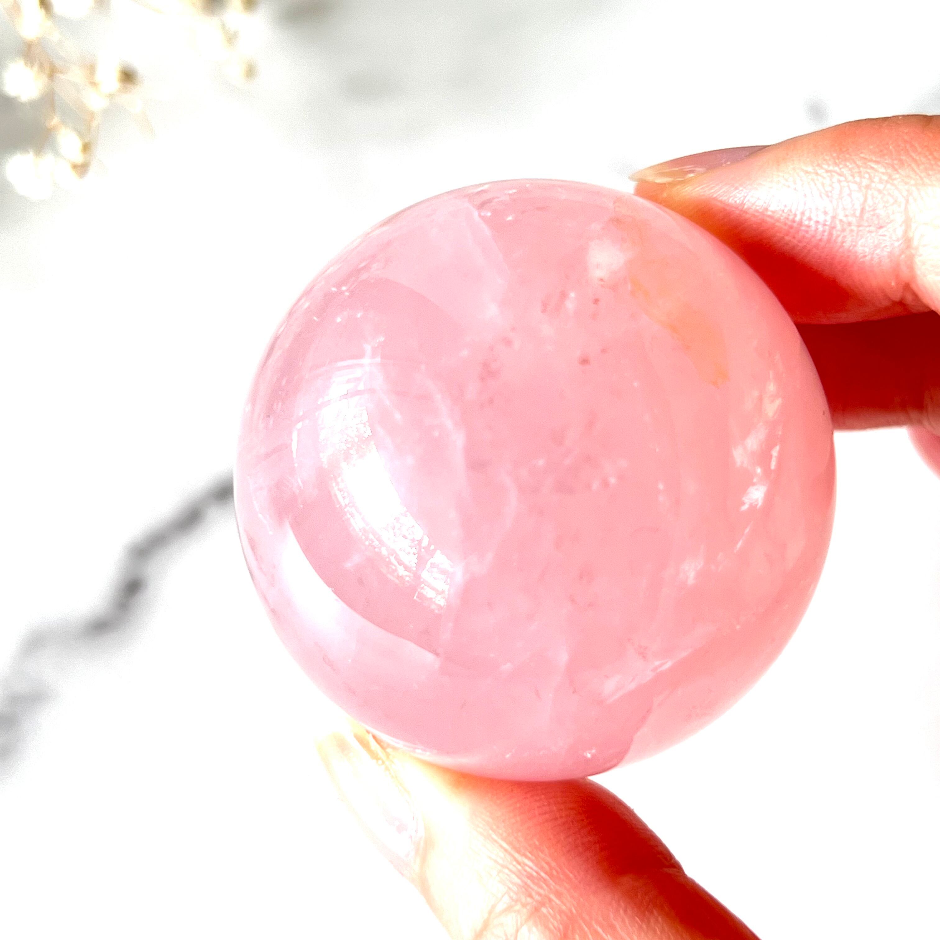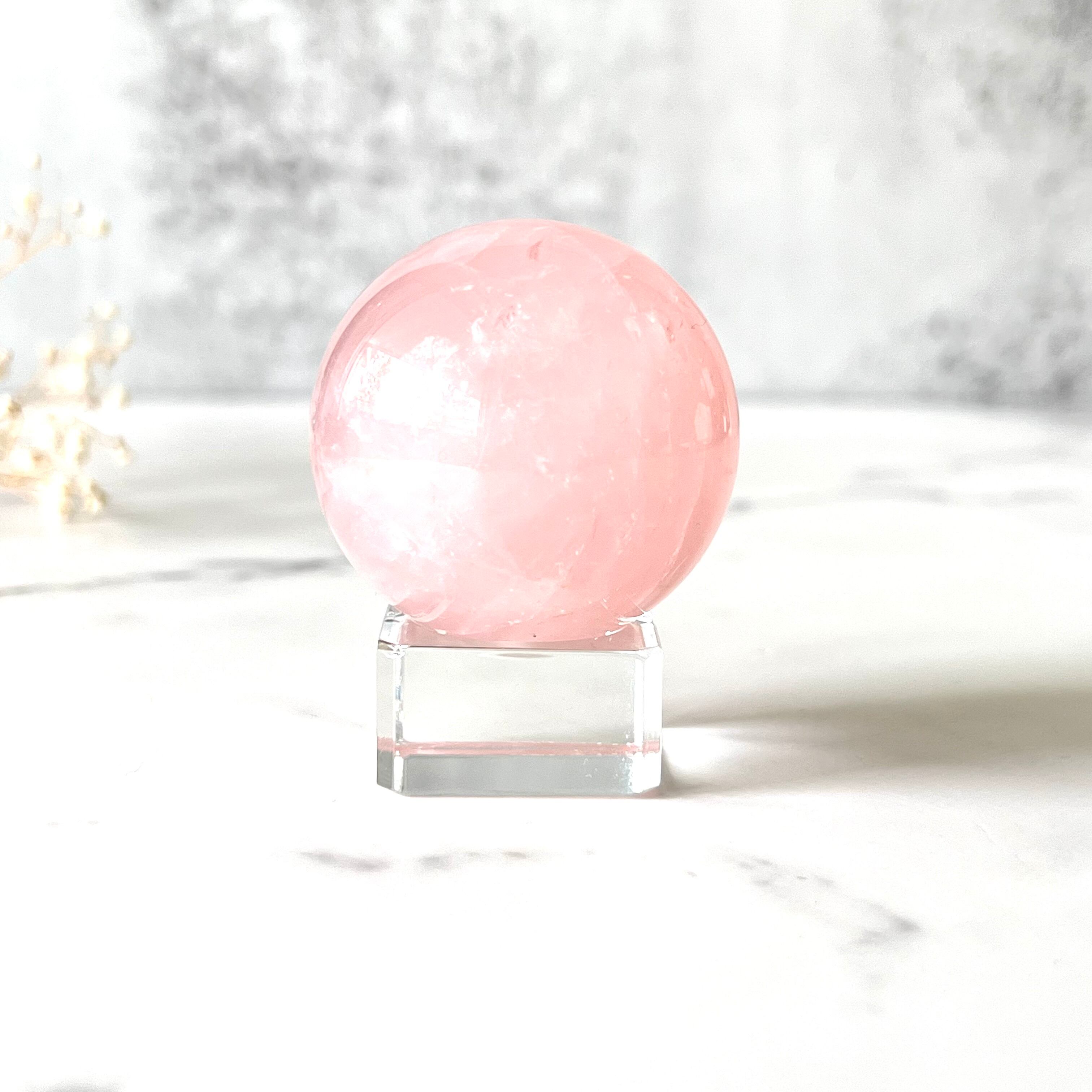桜の花びらのように可憐なピンク色とみずみずしさが魅力のローズクォーツスフィアです。