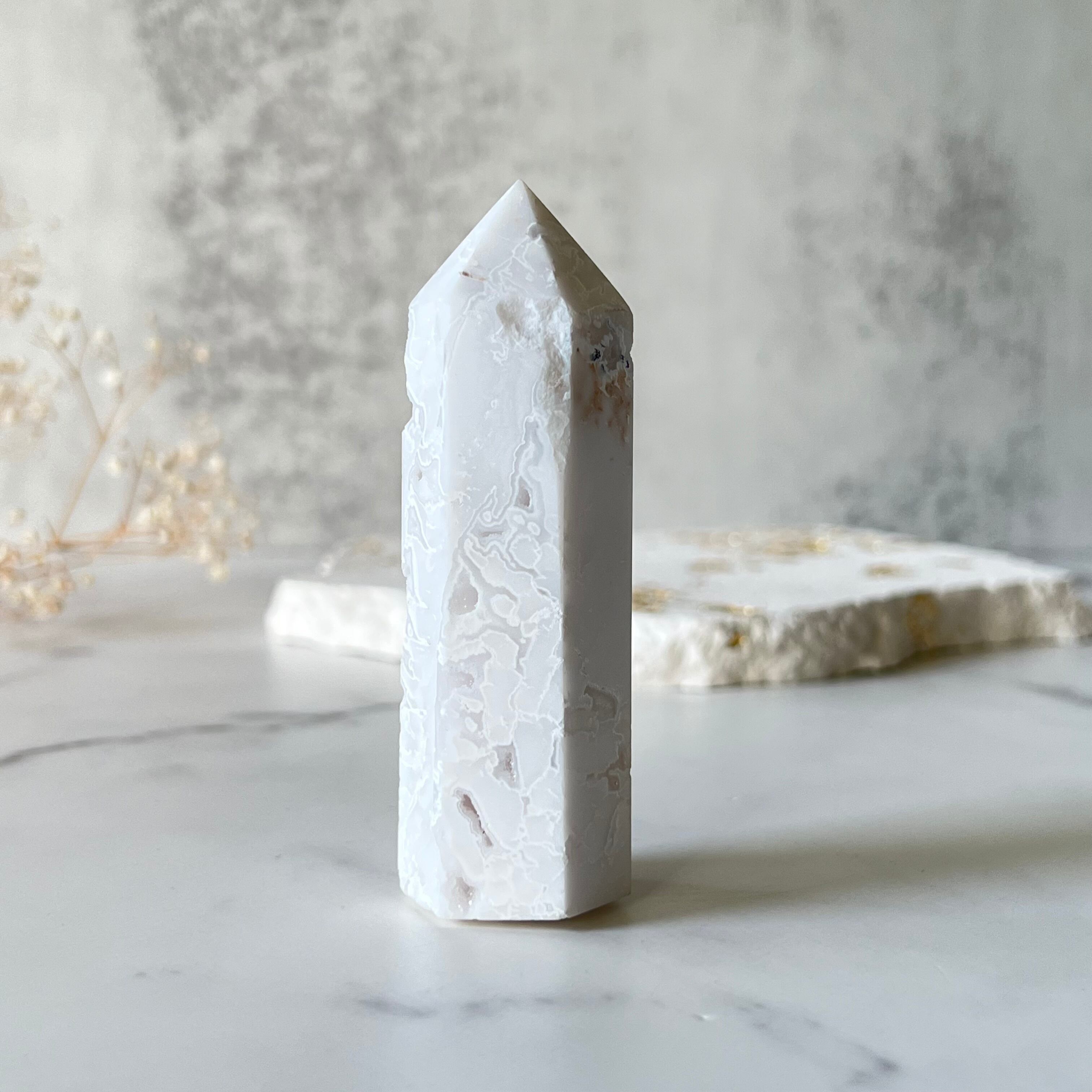 自然が作り出した物語を感じさせるアゲートの神秘的な輝きは、見る者すべてを魅了します。心が清らかになるようなタワーで心を癒し、空間を美しく彩ってください。