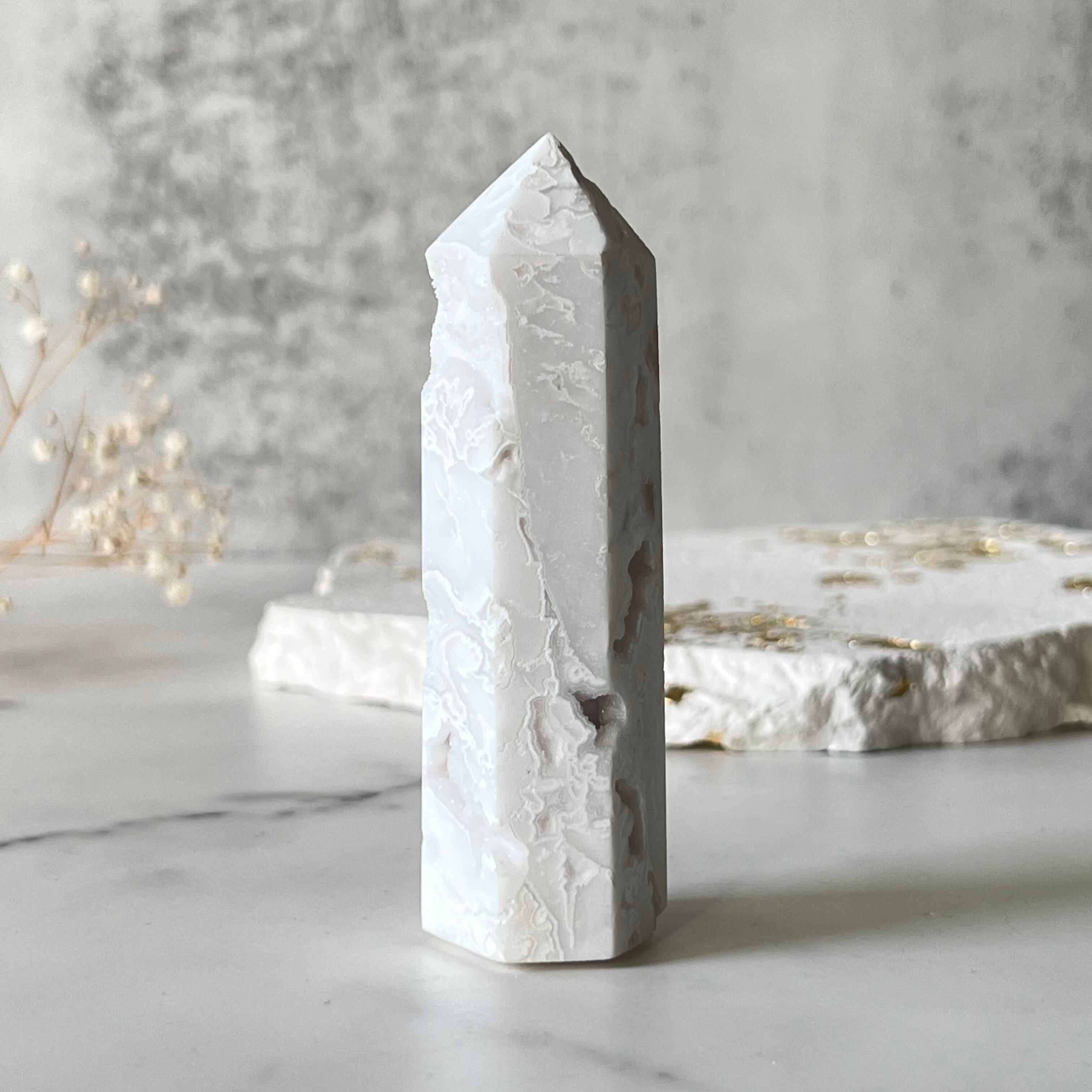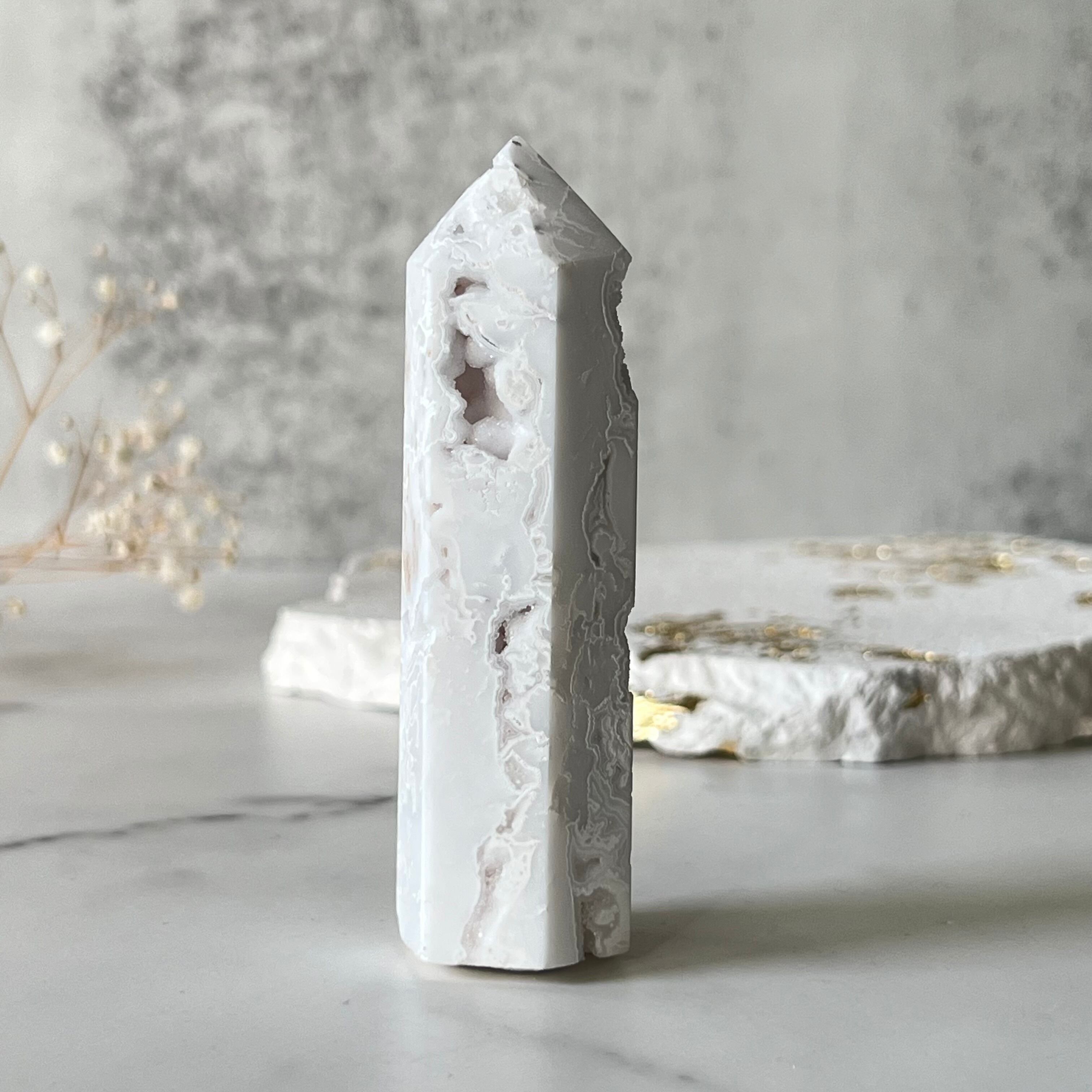 自然が作り出した物語を感じさせるアゲートの神秘的な輝きは、見る者すべてを魅了します。心が清らかになるようなタワーで心を癒し、空間を美しく彩ってください。