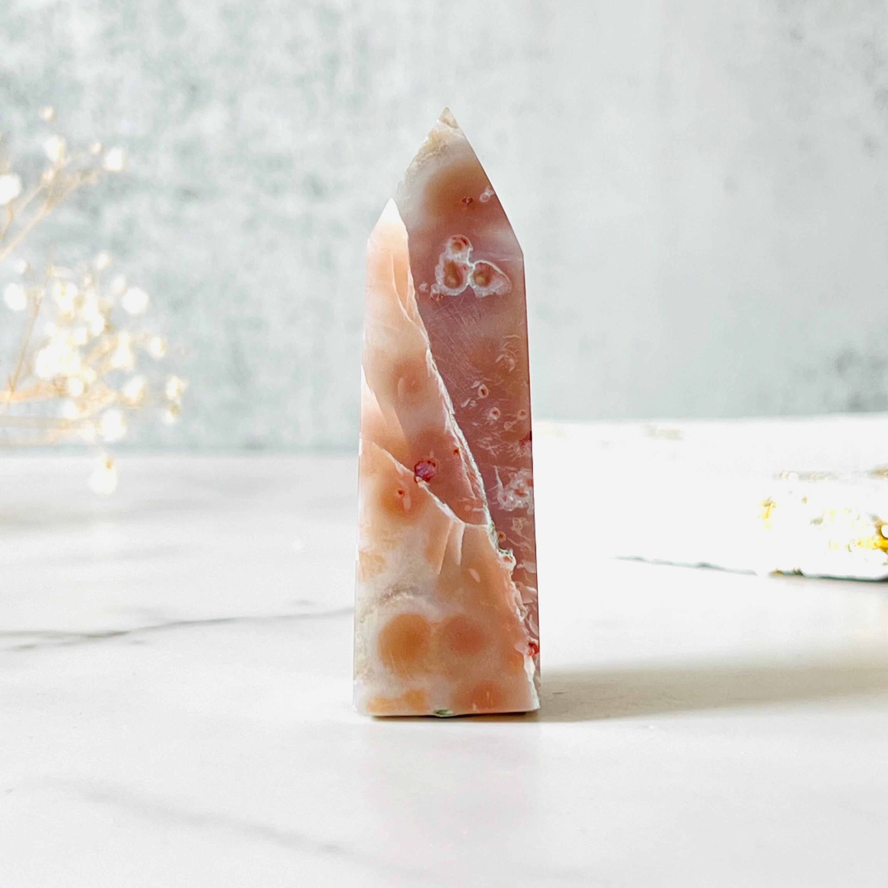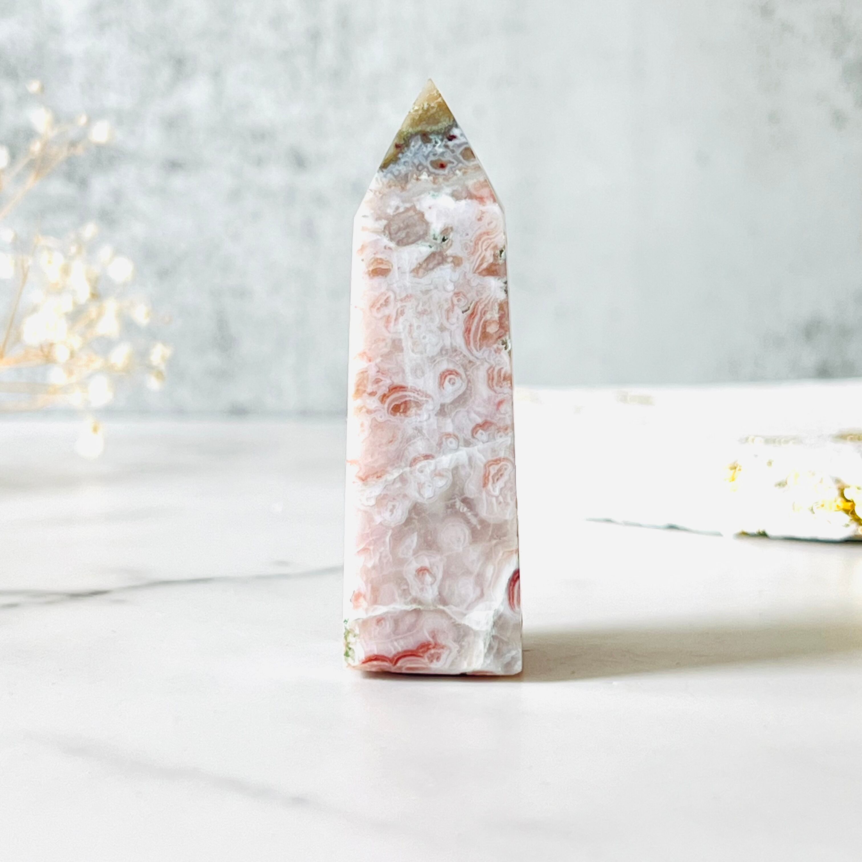 グリーンシルキーアゲートのタワーです。