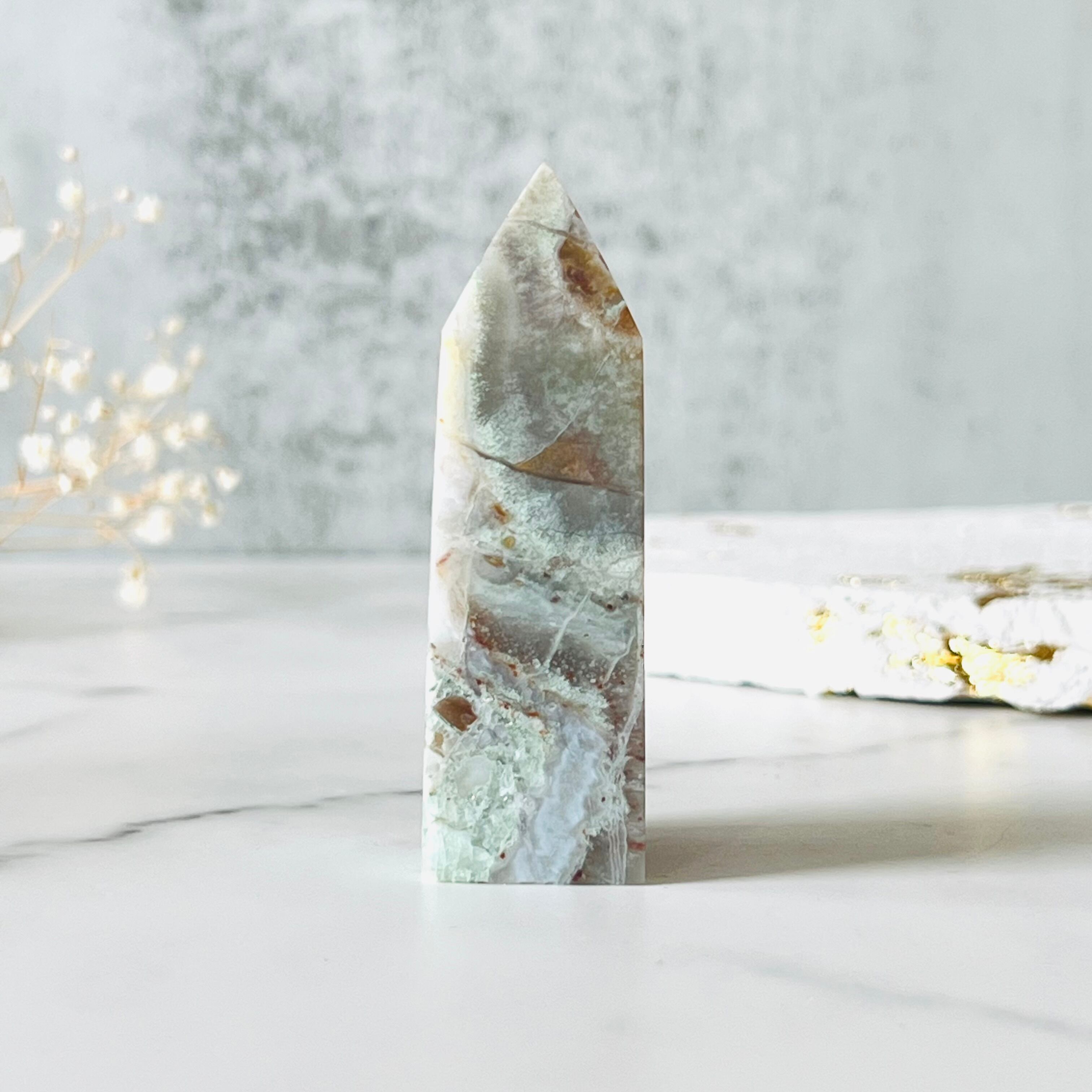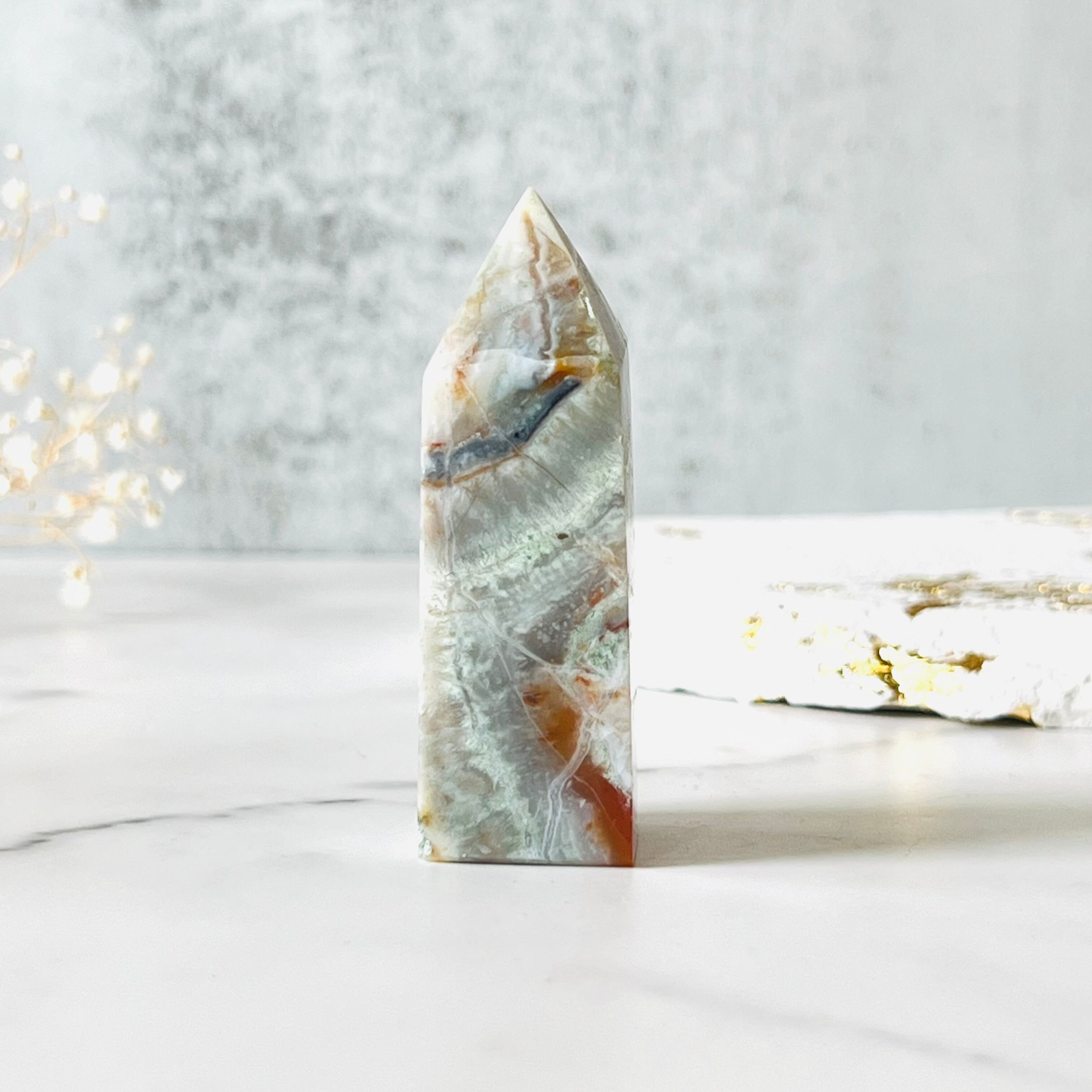 美しいパターンを持つシルキーアゲート。さまざまな素材と共生するアゲートは、ひとつひとつが複雑でアートな模様を描き出し、唯一無二の美しさを持ちます。