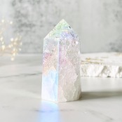 オーロラ水晶、またはレインボー水晶とも呼ばれるこの石は、天然水晶の表面に人工的な処理を加えて、虹のように七色の光を放つ神秘的な魅力のある石で、その美しい輝きが人気です。