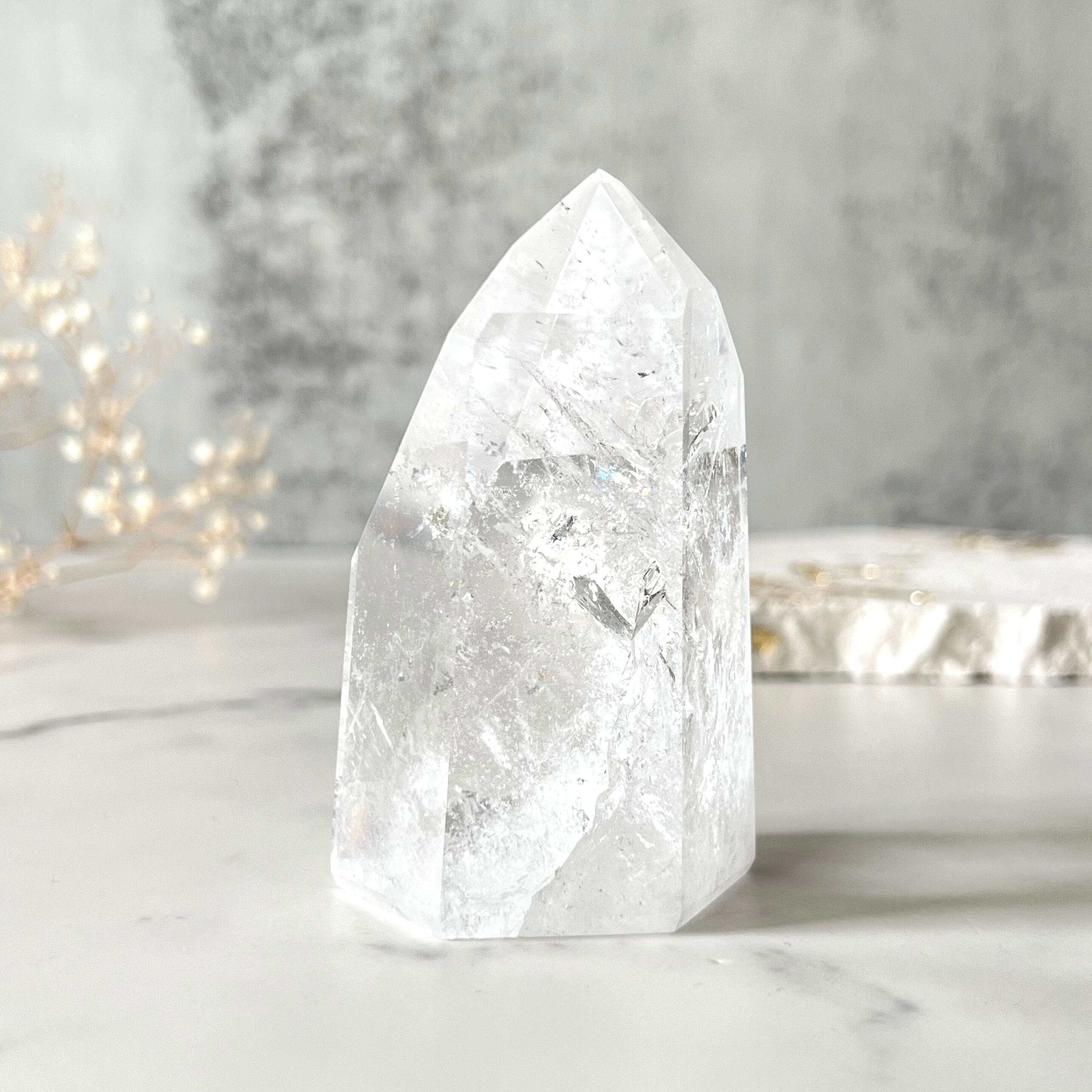 自然界の美しいエッセンスをギュッと閉じ込めたような美しい輝きを持つ虹入り水晶。そのクリアで純粋無垢な美しさに心を奪われます。虹もとても素晴らしく自分自身や大切な人に、心豊かなひとときをもたらしてくれる世界にひとつだけのアイテムです。