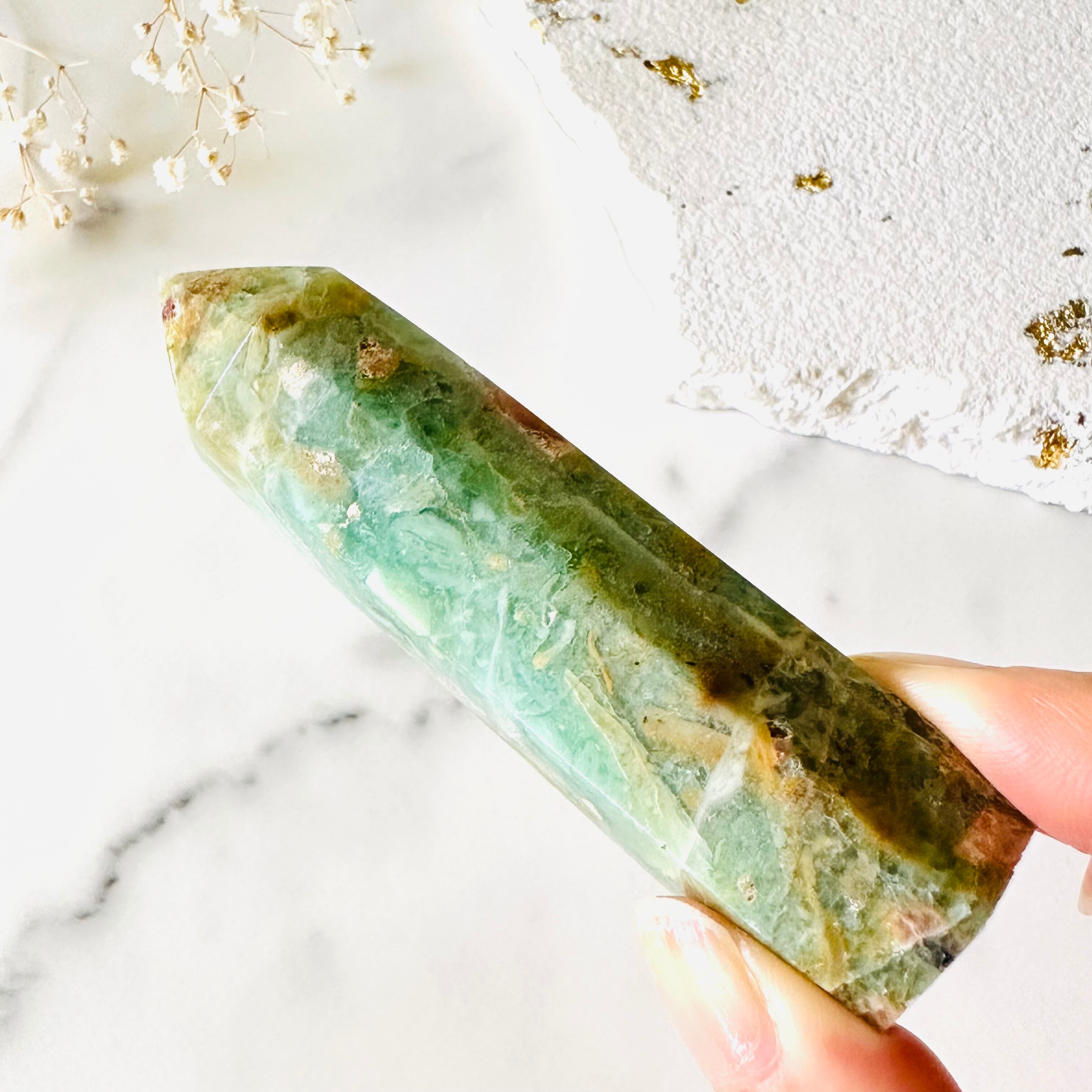 チャロアイトはパープルカラーが一般的でグリーンチャロアイトは非常に珍しく貴重です。明るい発色のグリーンで、石の質感を生かしたマーブル模様もとても綺麗です。