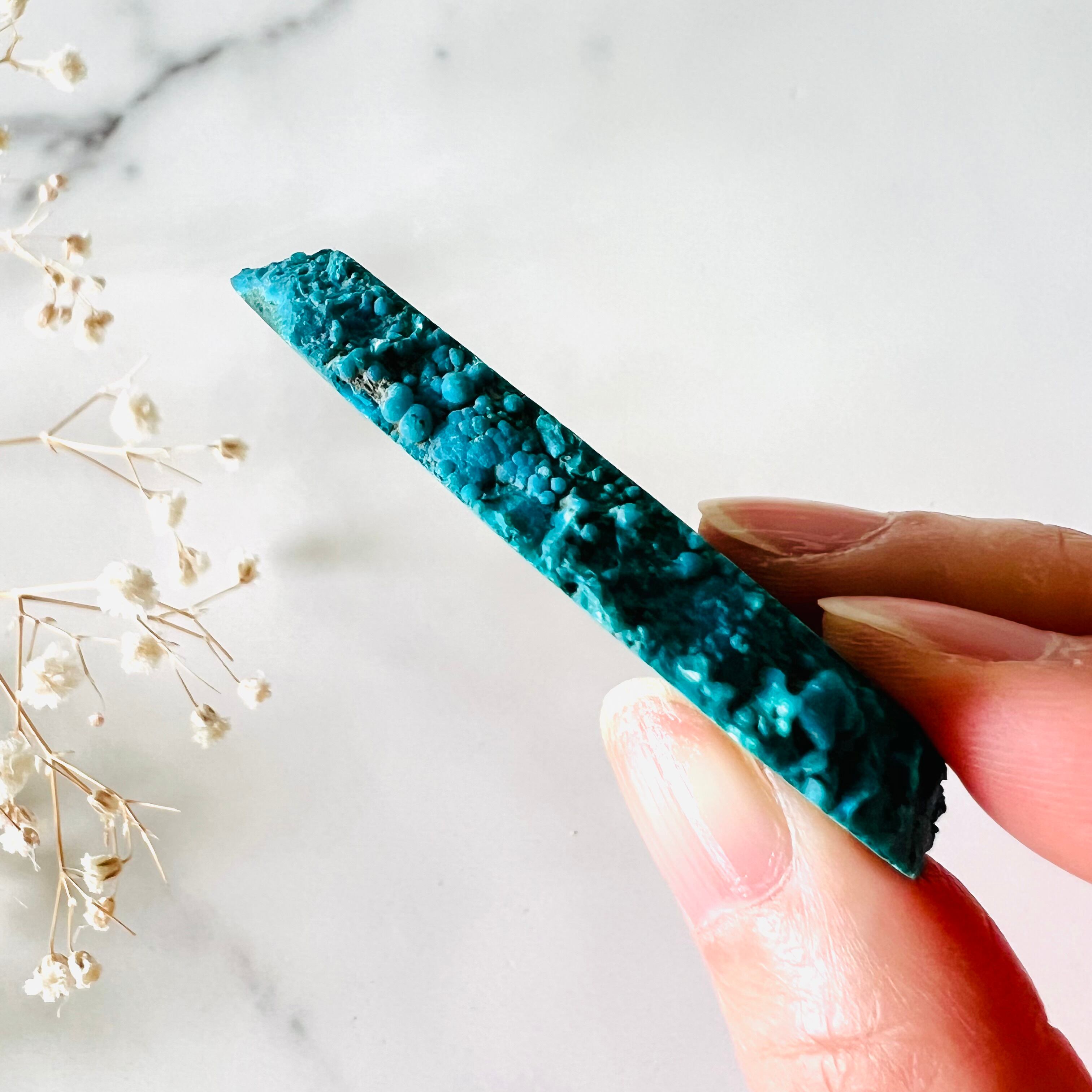 鮮やかなグリーンとブルーが美しい、マラカイトクリソコラのプレートです。