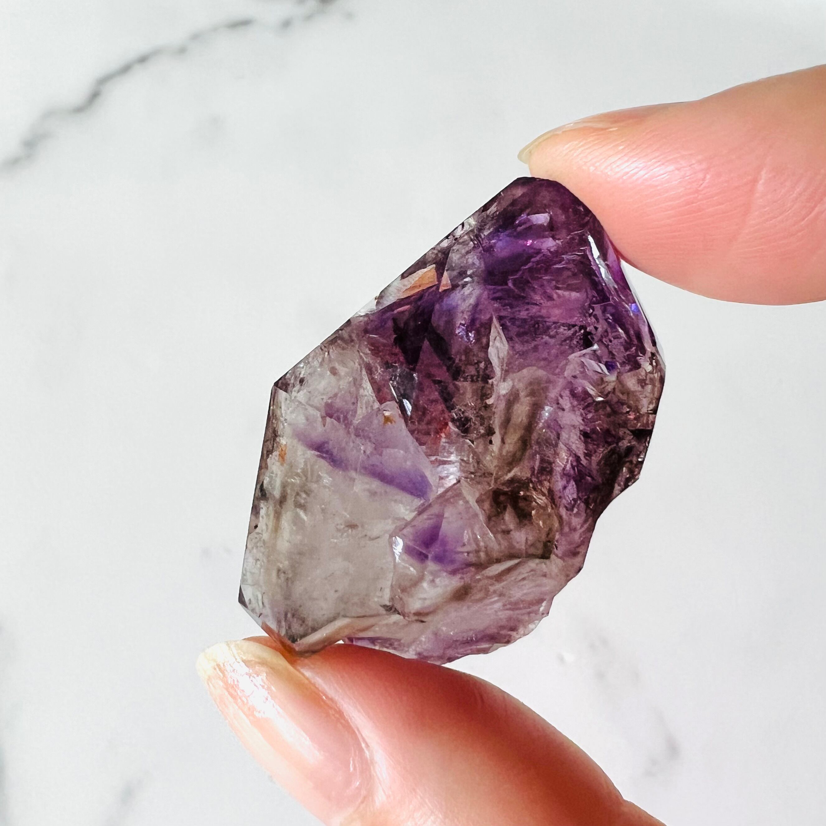 水晶の珍しい特徴が備わることも多いレアな天然石で、この個体は高い透明度と美しい発色、タビー形状にレコードキーパーを多数持ち、スモーキーのニュアンスも含む大変美しいアイテムです。