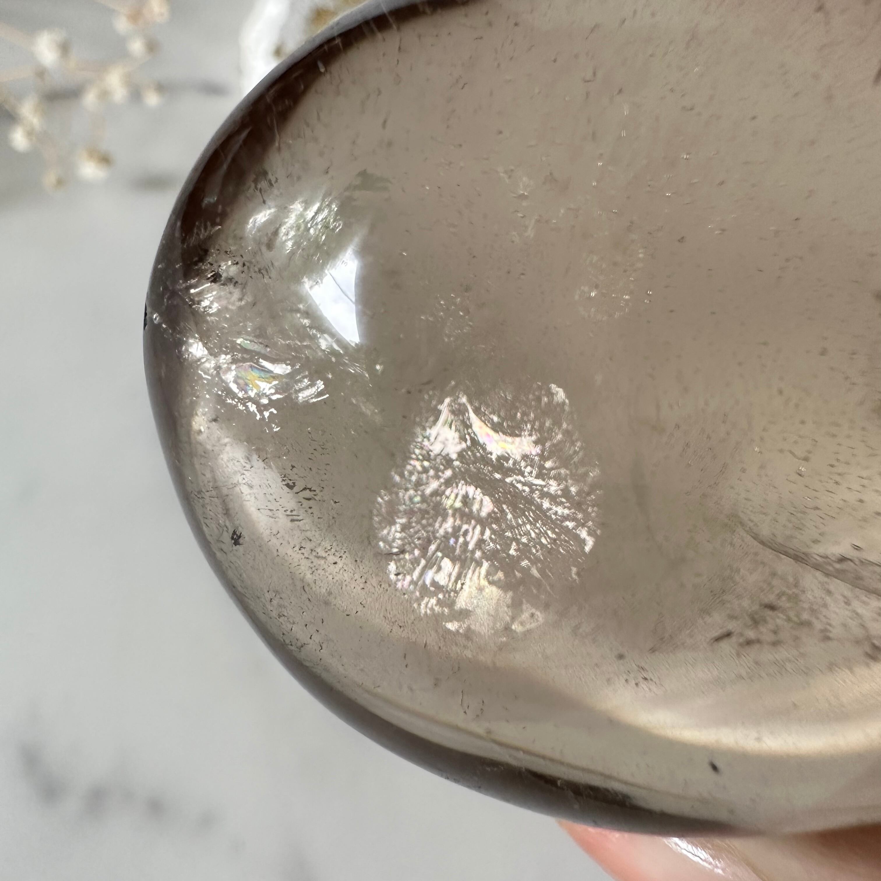 透き通ったクォーツと上品で艶やかな色合いが美しいスモーキークォーツパームストーンです。
