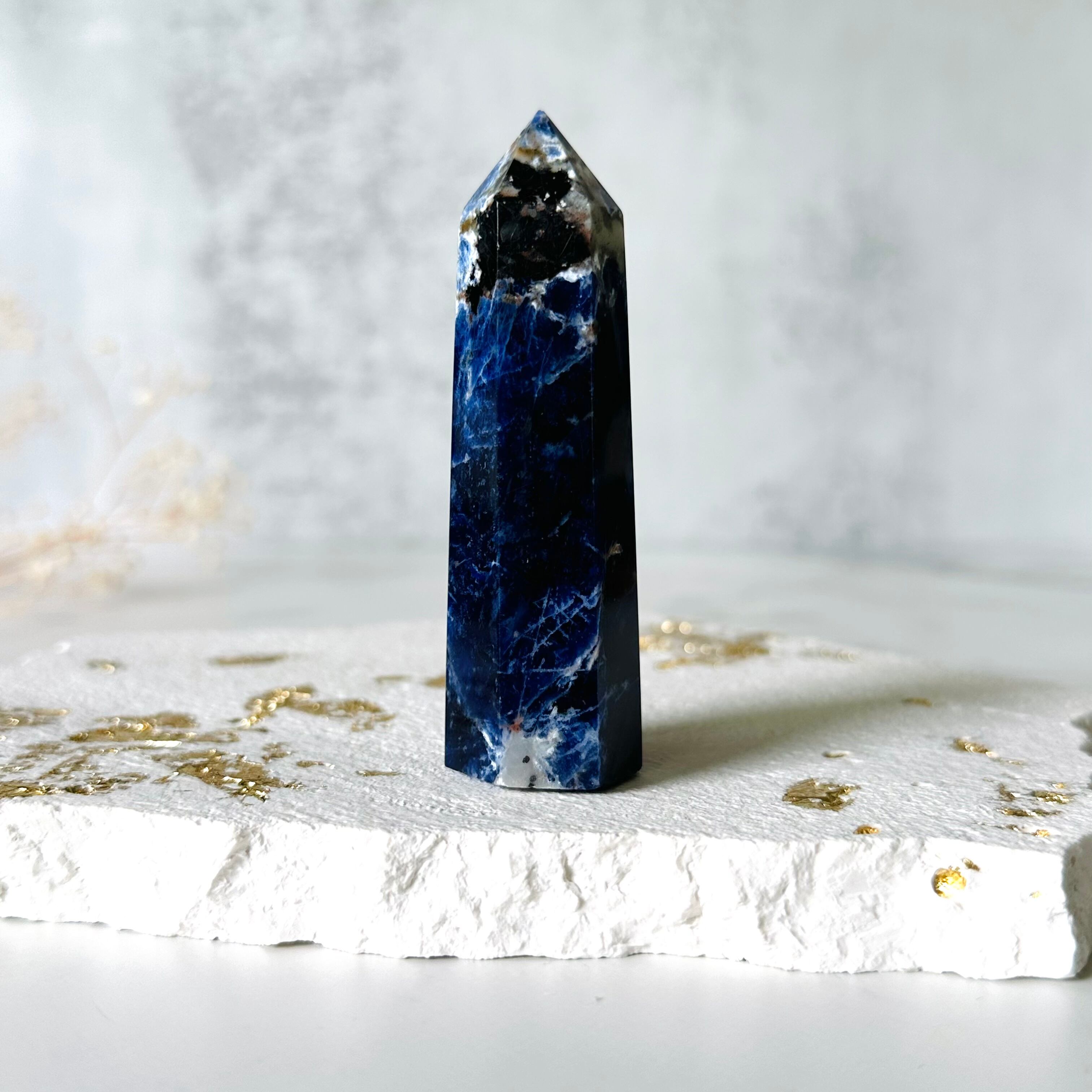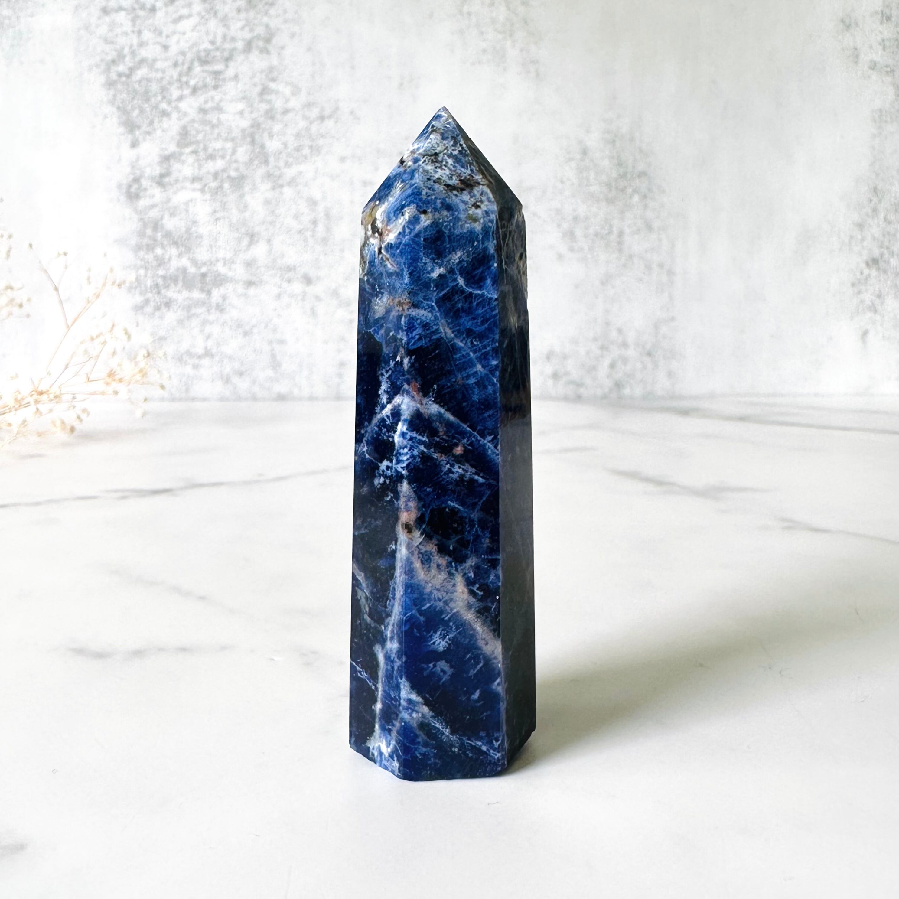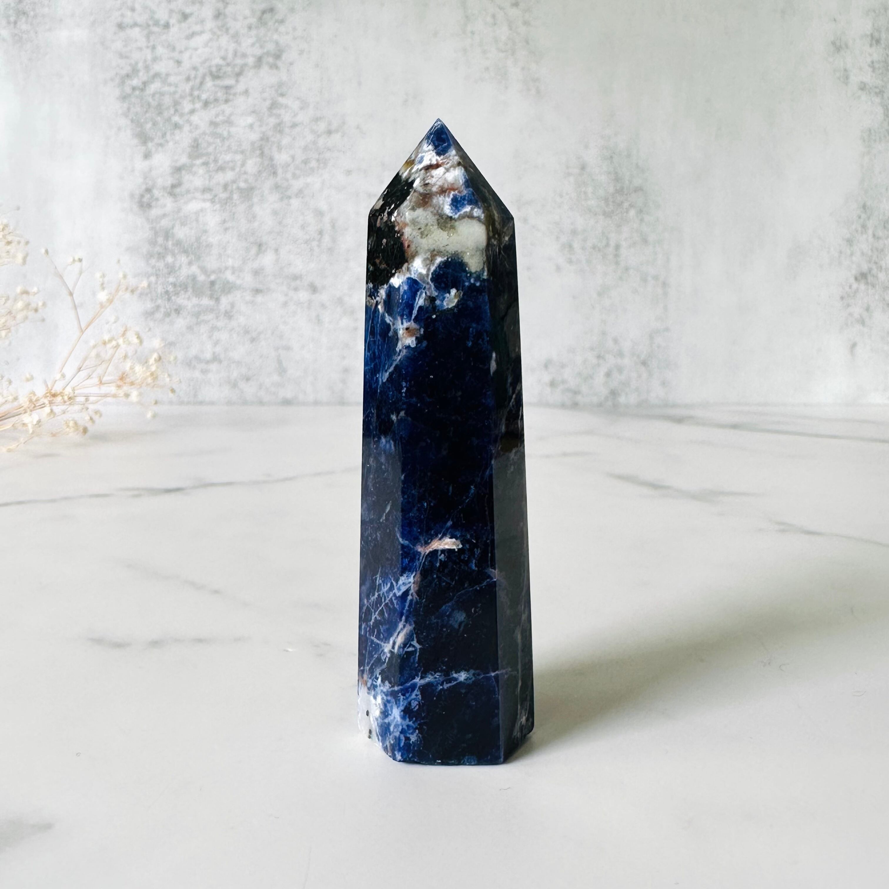 深いネイビーカラーは宇宙や夜空を思わせます。トップからボトムに流れるような白いラインは、まるで流れ星の残像のようです。思慮深く神秘的な佇まいで、自己と深く繋がりたい時、内なる自己の声を聞きたい時にそばにおくと良いように思います。瞑想をされる方、ハイヤーセルフと繋がりたい方にお勧めします。