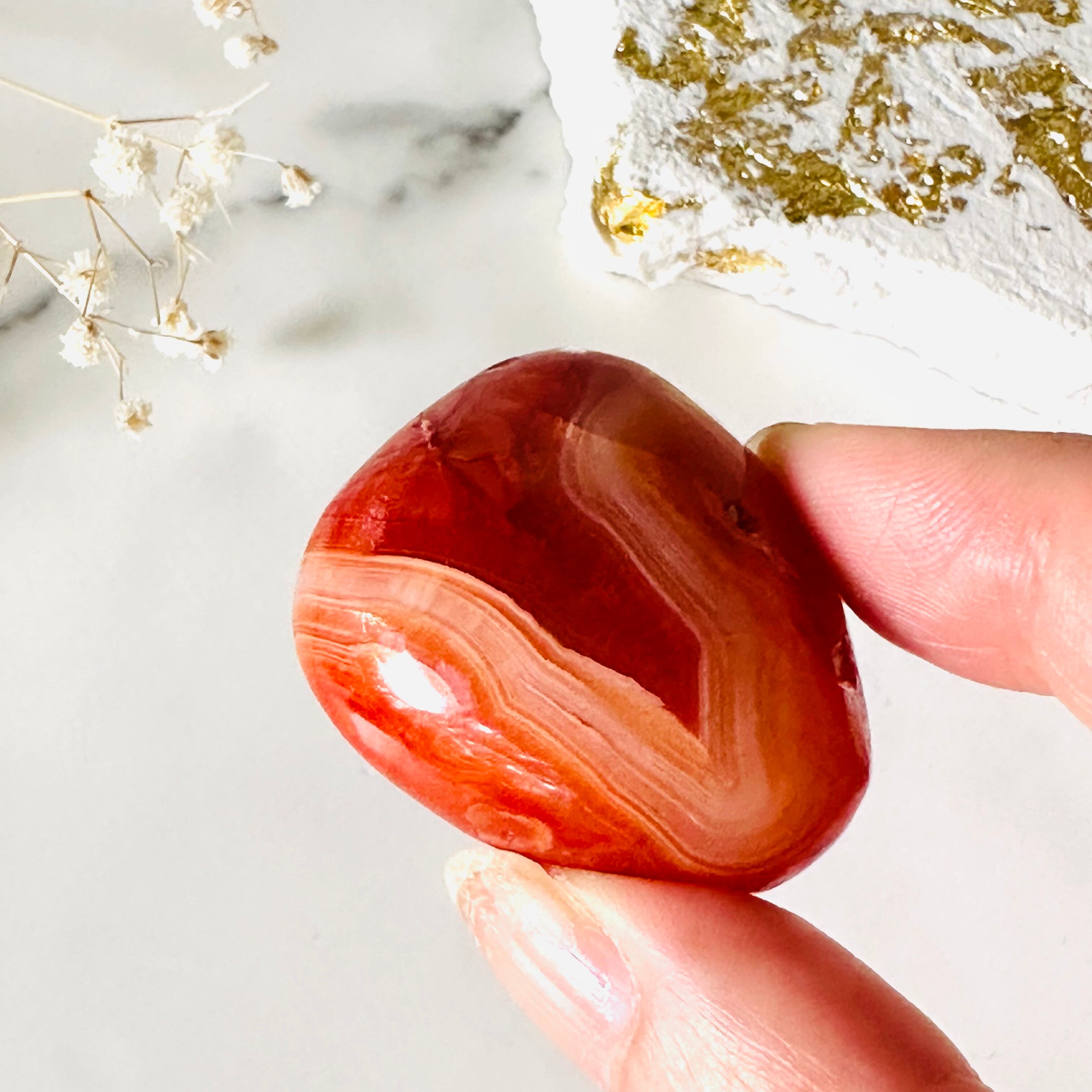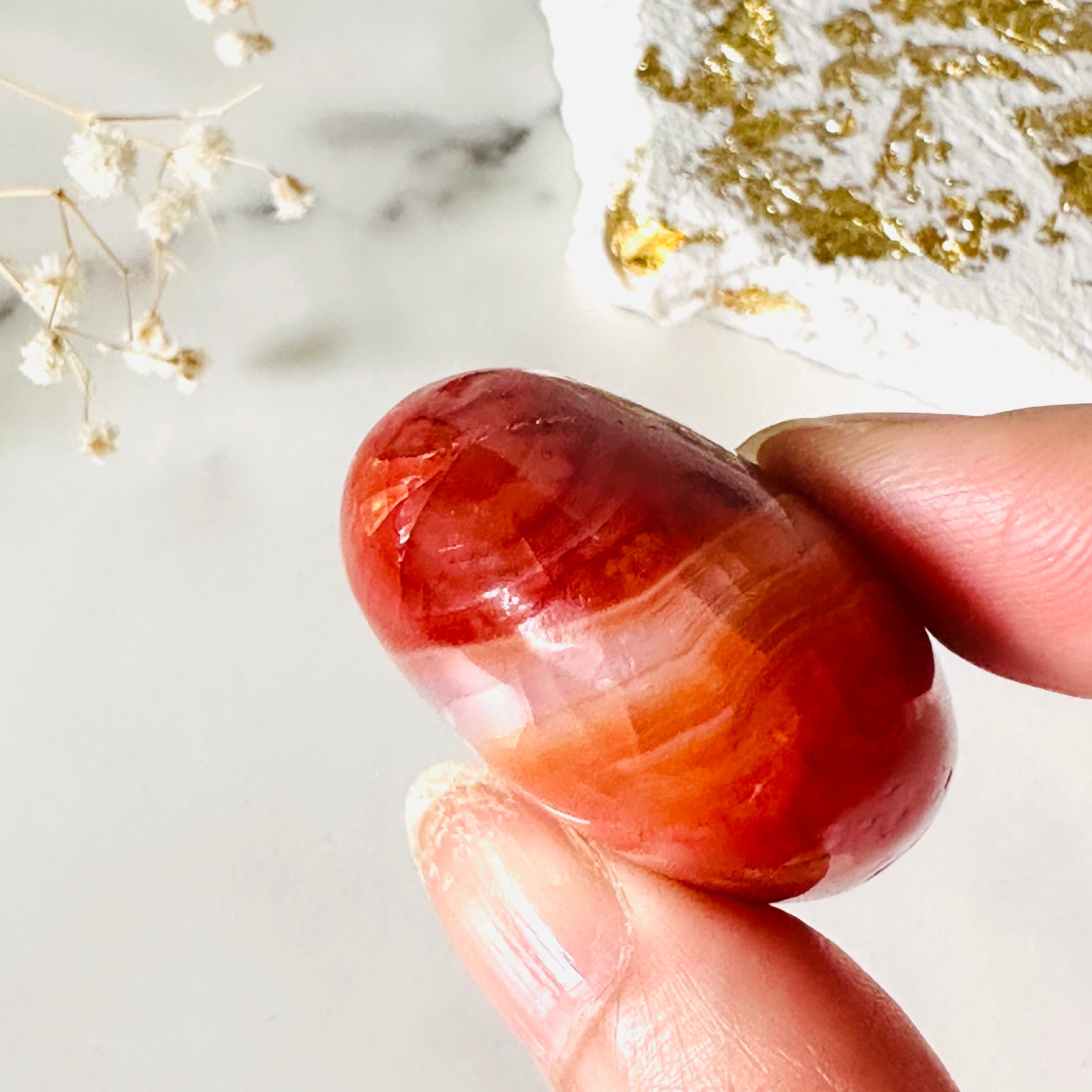 カーネリアンは、これから何かを始めようとする人やエネルギー不足を感じている人にオススメの石です。臆病な気持ちを退け、力強さと勇気を与え、目標の達成や成功に導いてくれるといわれています。