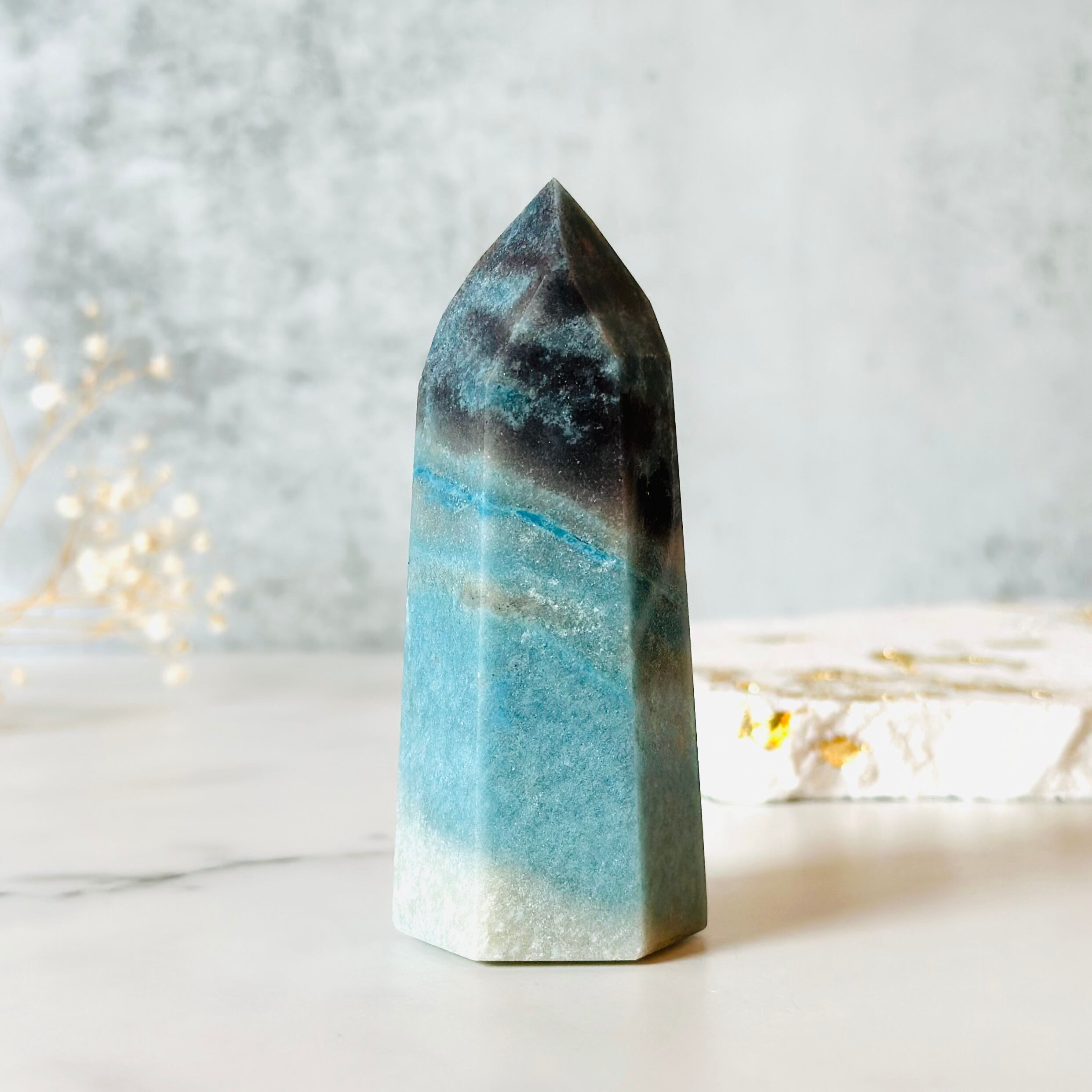 比較的最近発見された天然石のひとつで、主な産地はブラジルのミナスジェライス州です。産地が非常に限定的で希少な石として知られます。妖精を意味する「トロール」が語源で、トロレアイトの最大の特徴である優しい水色が妖精をイメージさせることからその名が付けられました。石言葉は「守護」「優しさ」です。