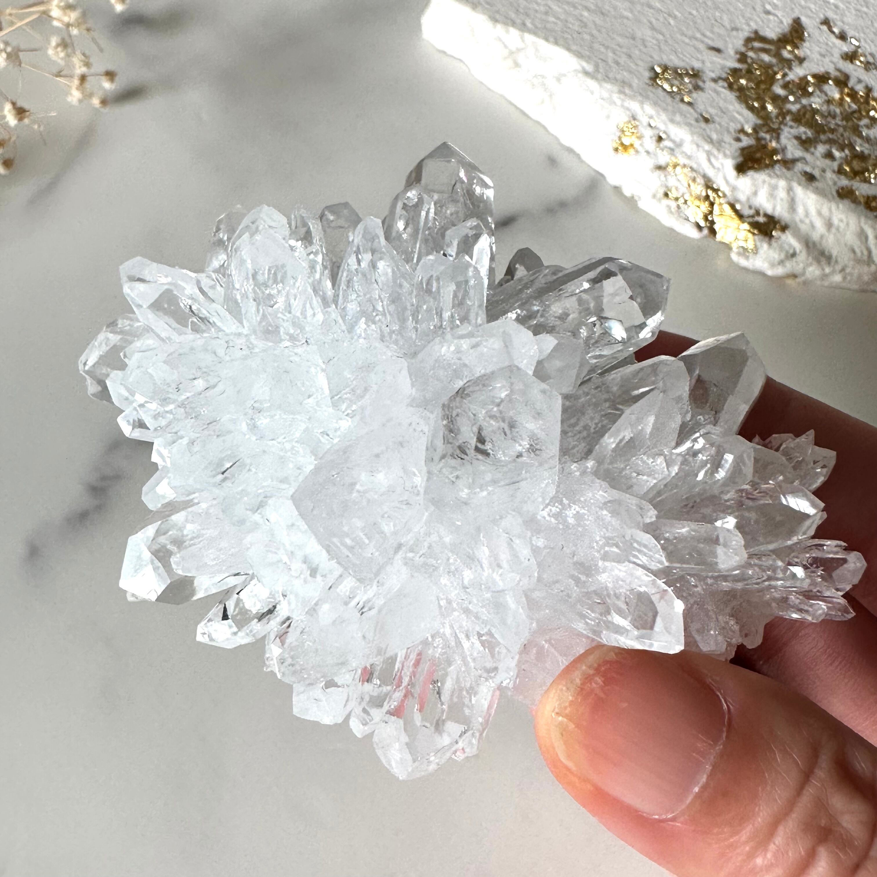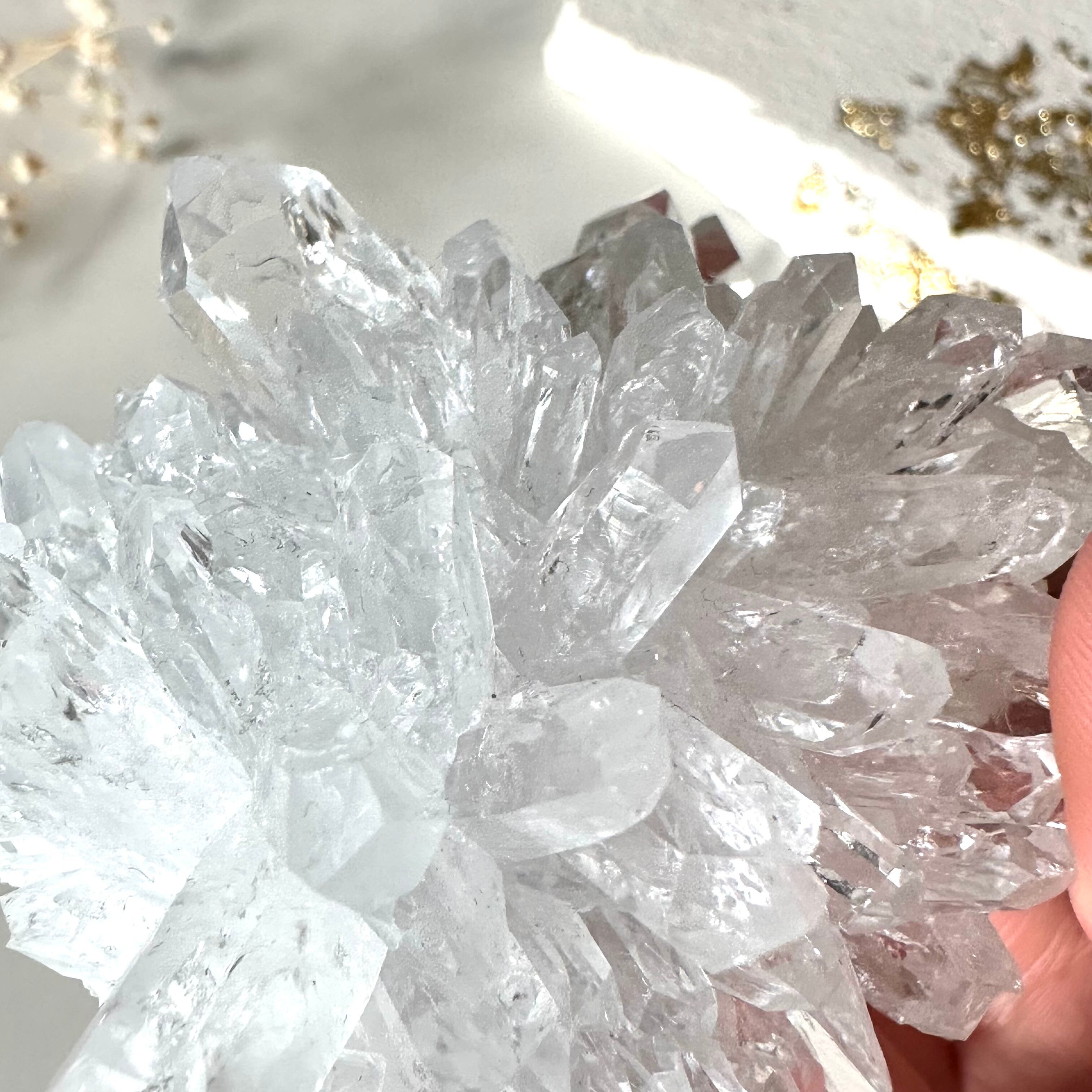 ふんわりお花が開いたような形が可愛いクリアクォーツクラスター。