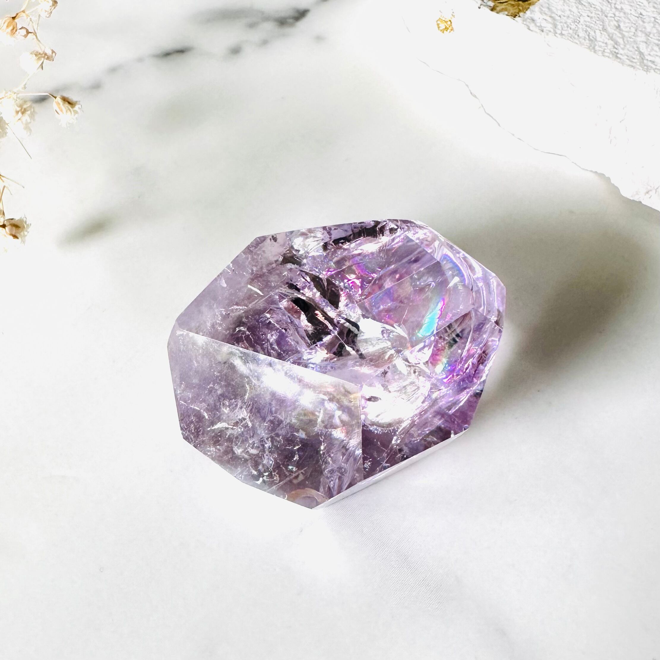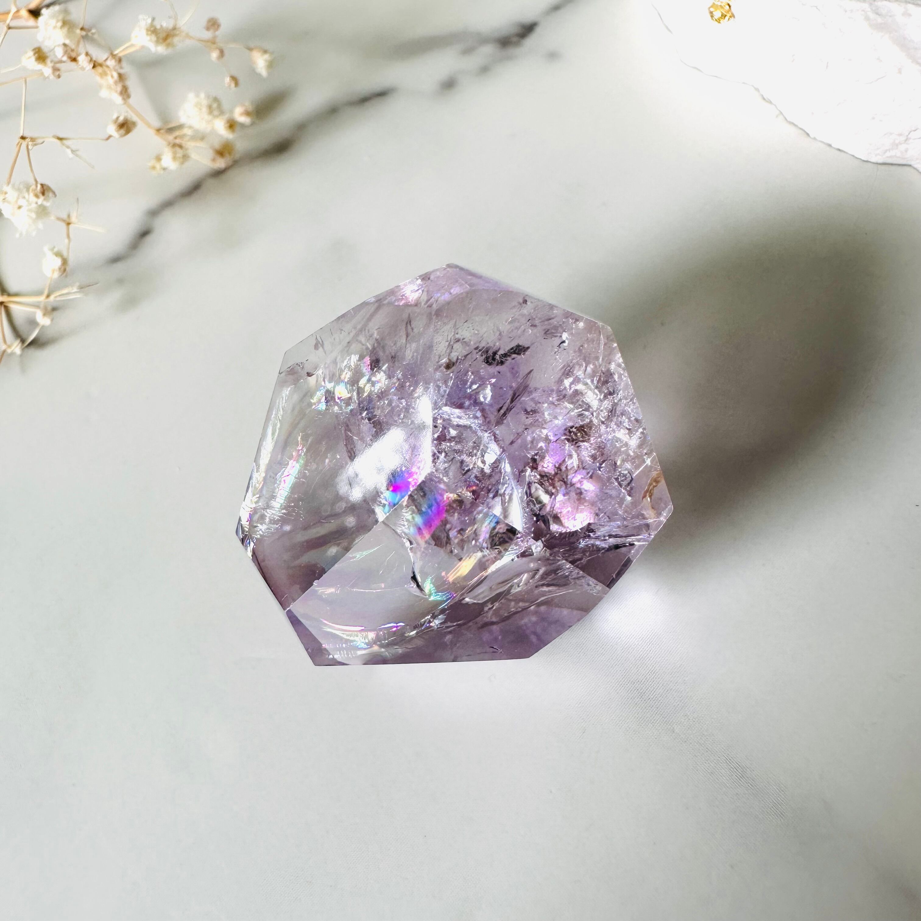 どこから見ても美しい輝きと目眩く虹たち、コロンとした可愛らしいフォルム。