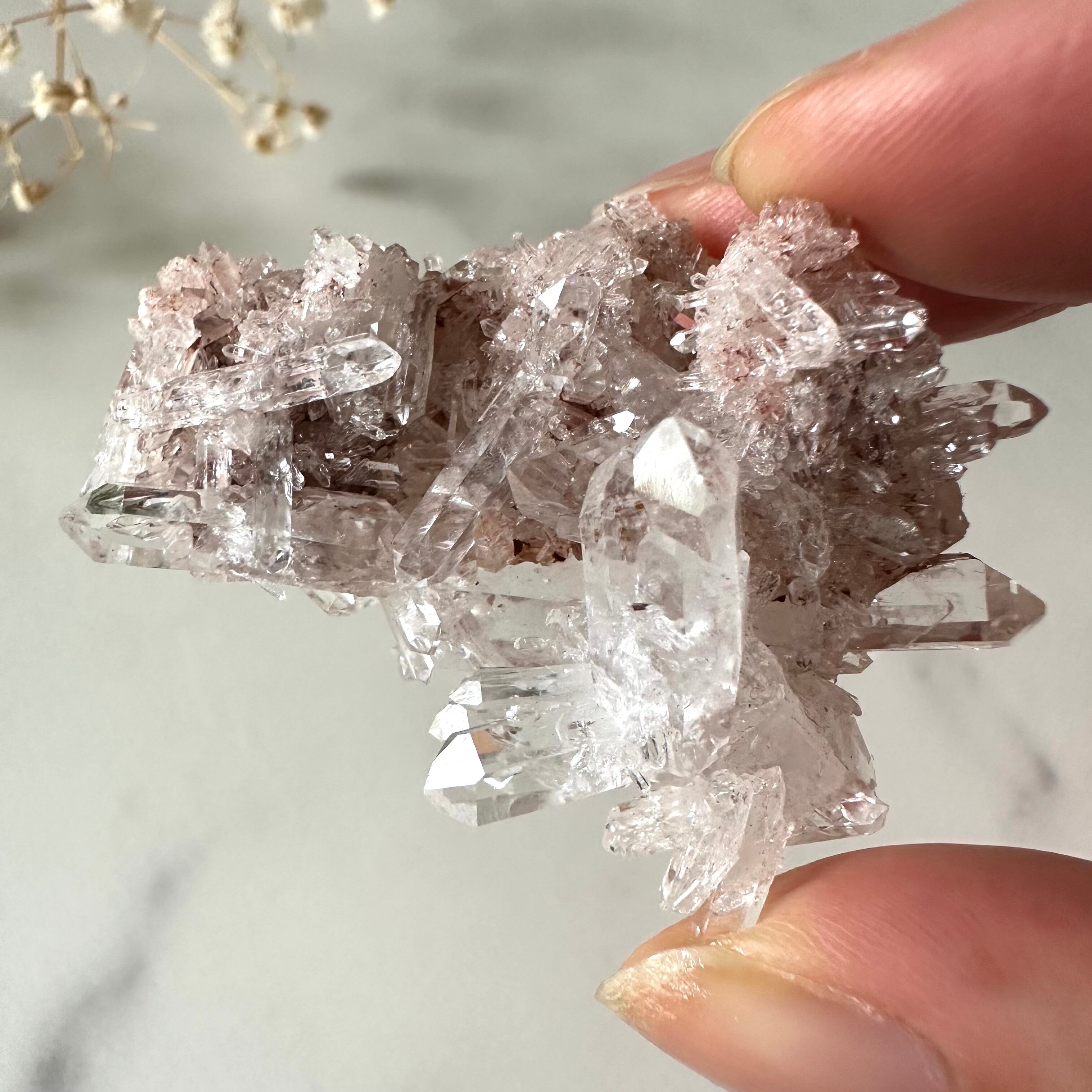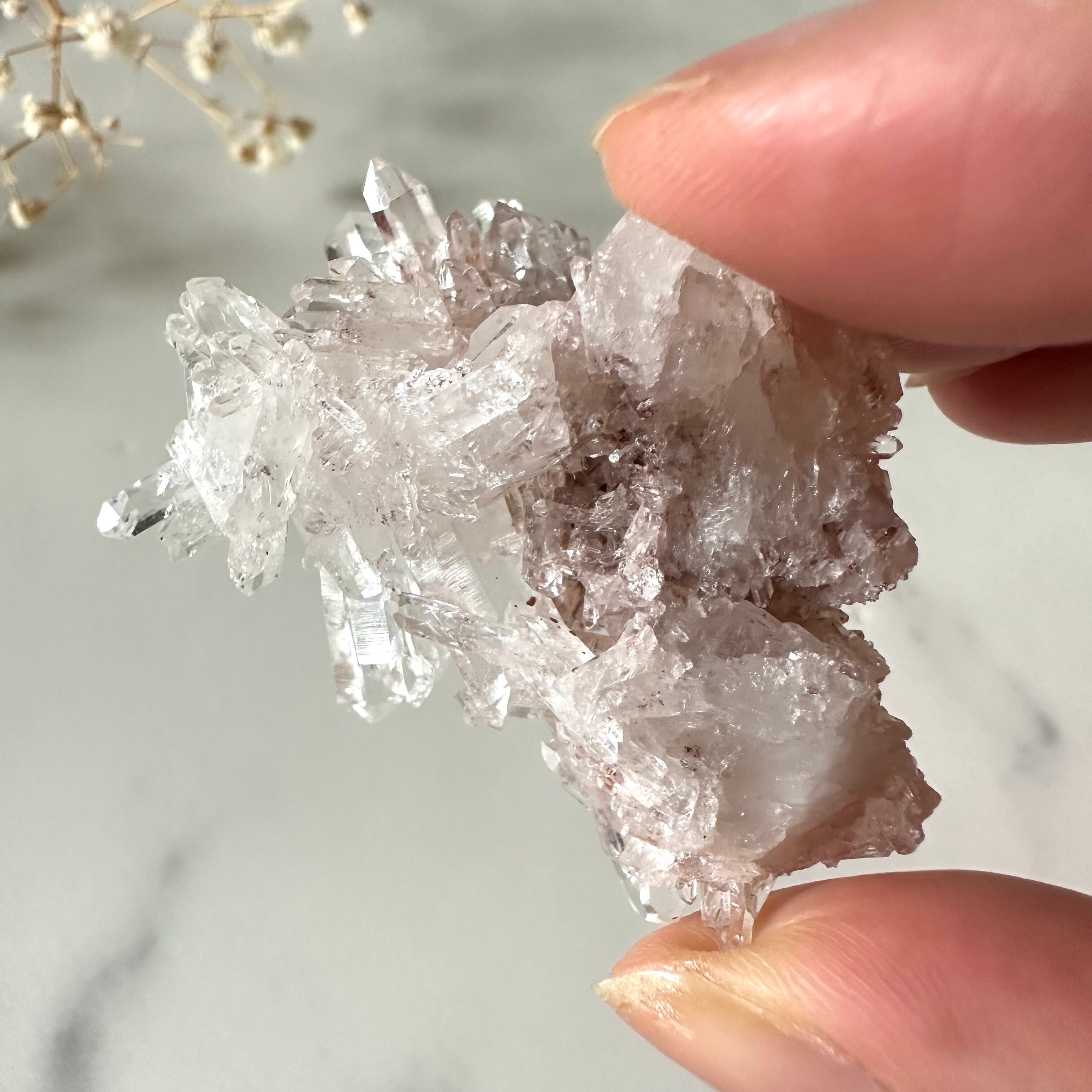 結晶は透き通ってクリア、淡いピンクの色合いが美しく形も整ったアイテムです。