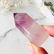 透明感たっぷりのフローライト。パープルのらせん状の縞模が美しく、ところどころにインクルージョンの煌めきも楽しめます。