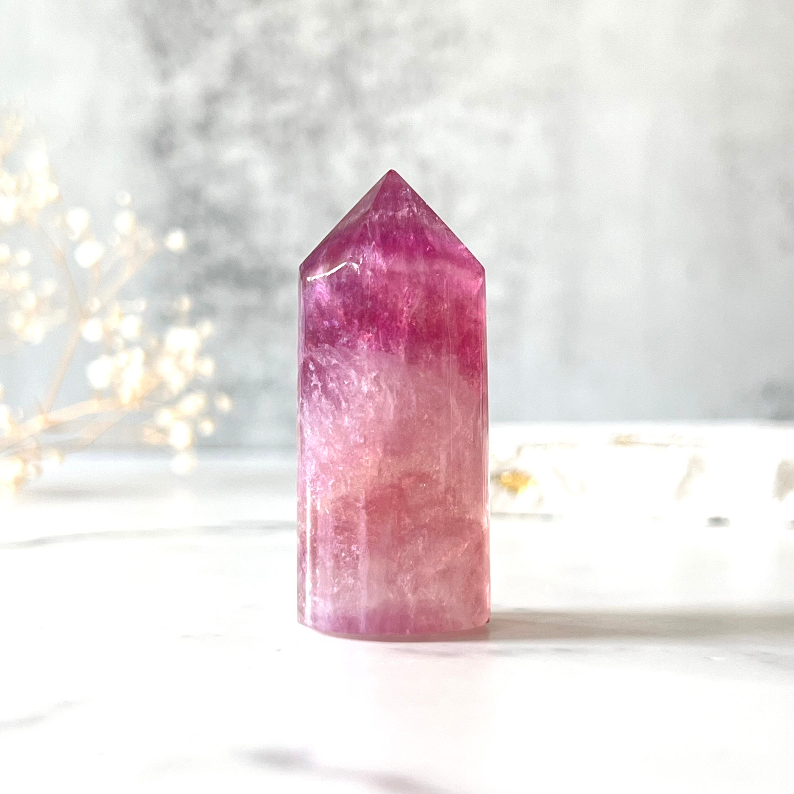 キャンディフローライトはみずみずしく透明感たっぷりでキレイな発色のフローライトです。パープルピンクのらせん状の縞模様は本当にキャンディのようで可愛らしいです。