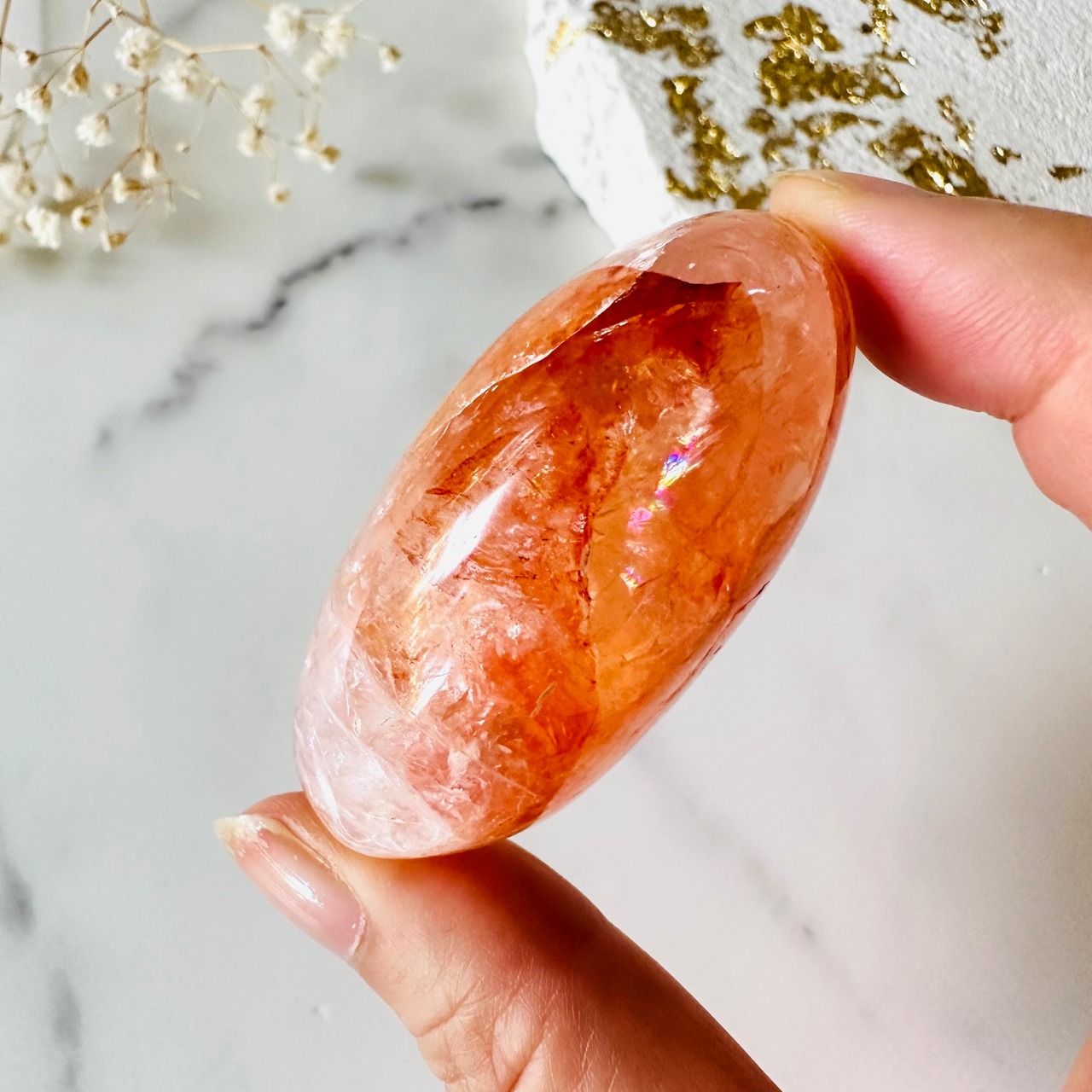 ピュアで透明感のある明るいオレンジのファイヤークォーツパームストーンです。