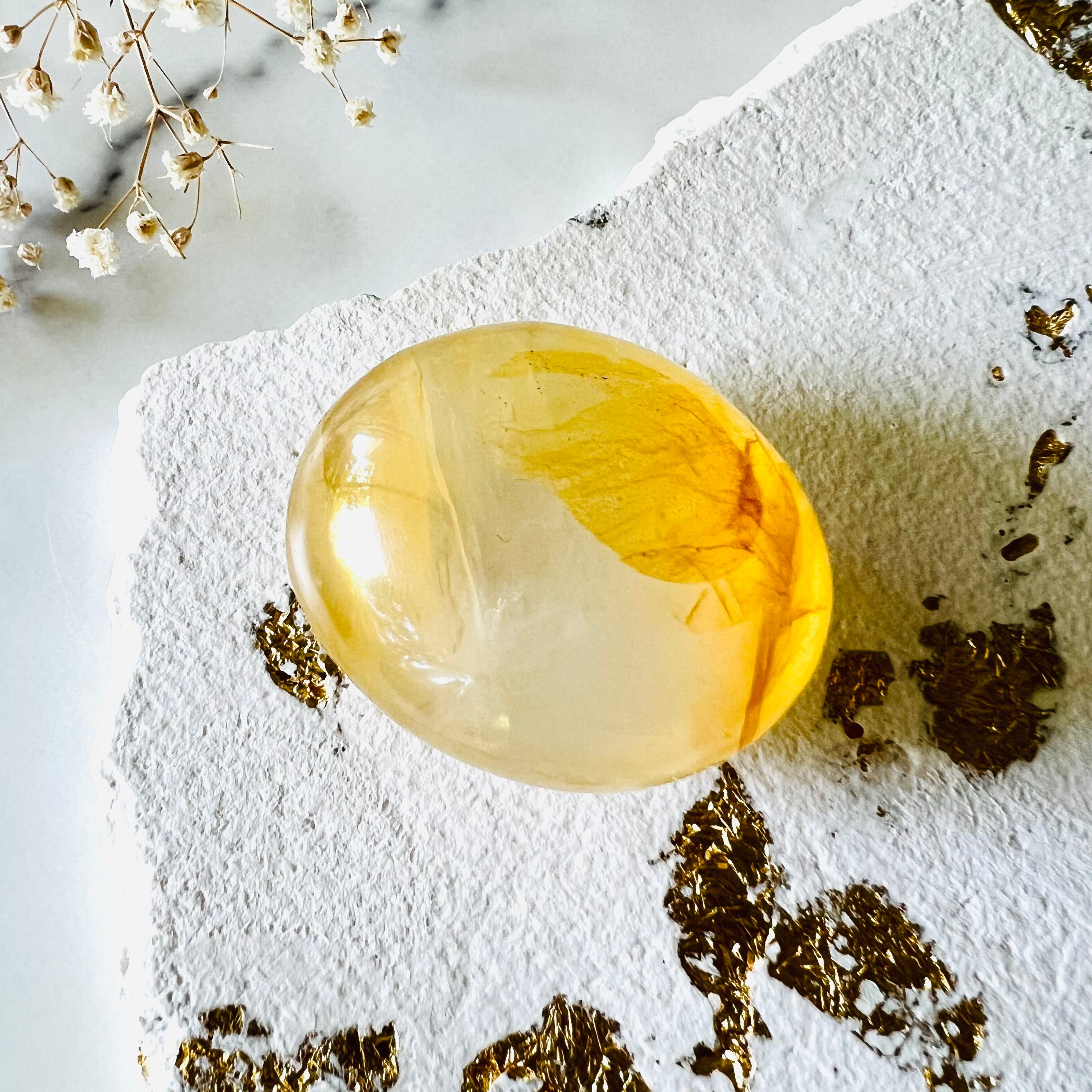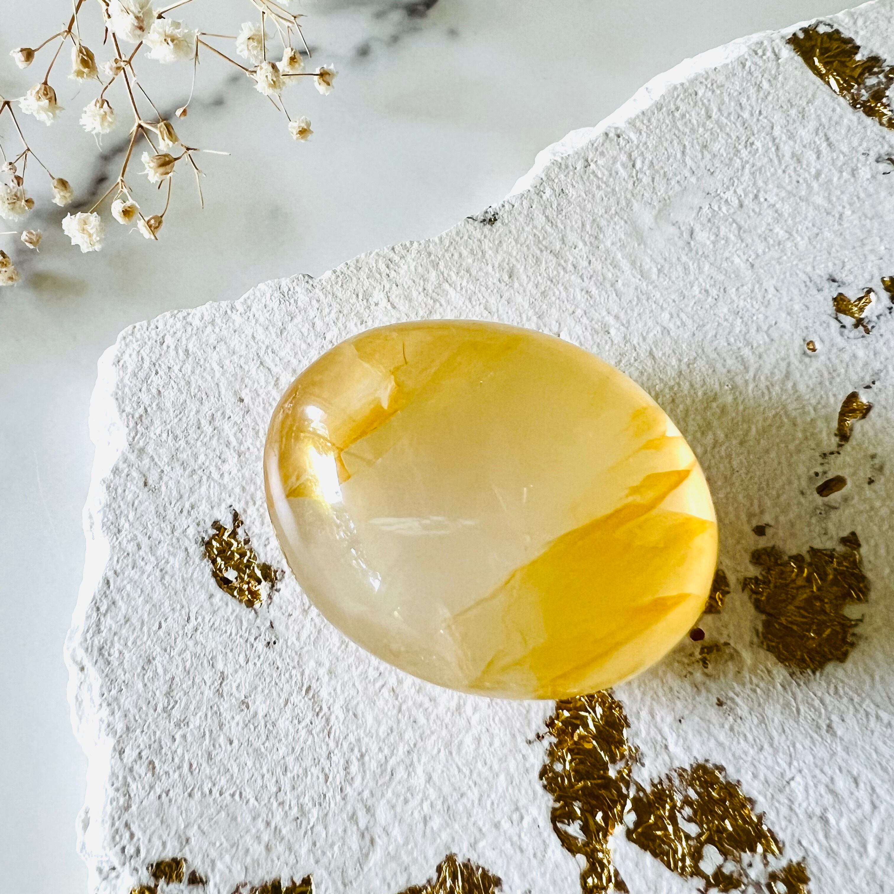 整ったフォルムと美しいクォーツの質感が特徴です。ジラソルのような優しいミルキーなクォーツで優しい波動のパームストーンです。ゴールデンヒーラーは毎回入荷してすぐにお迎えが決まる当店で大人気のアイテムです。