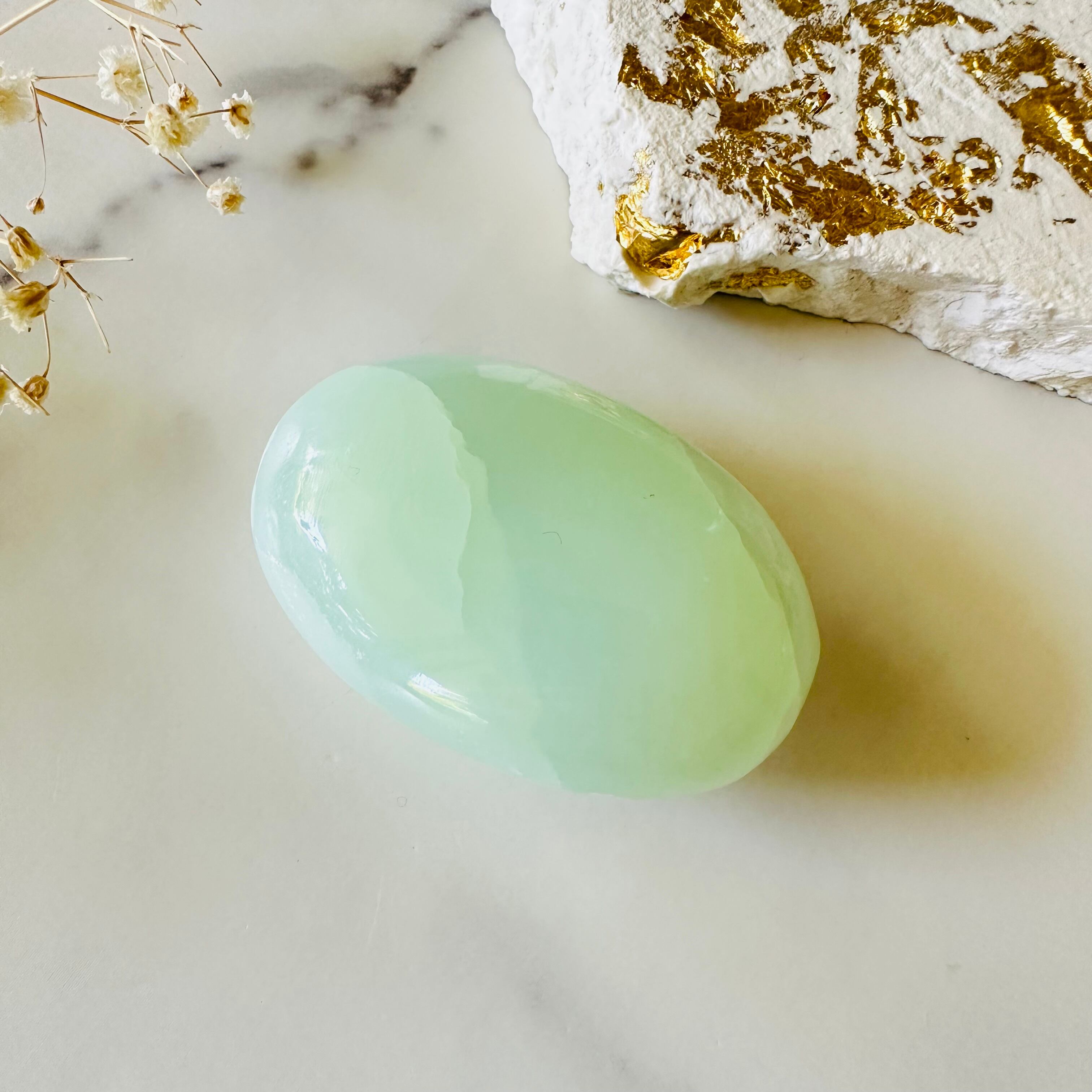 淡く透け感のあるグリーンがとても綺麗なグリーンカルサイト。光を含んでキラキラと輝きます。カルサイトは波動が穏やかで、気づかないほどに優しく心身に癒しを与えてくれます。