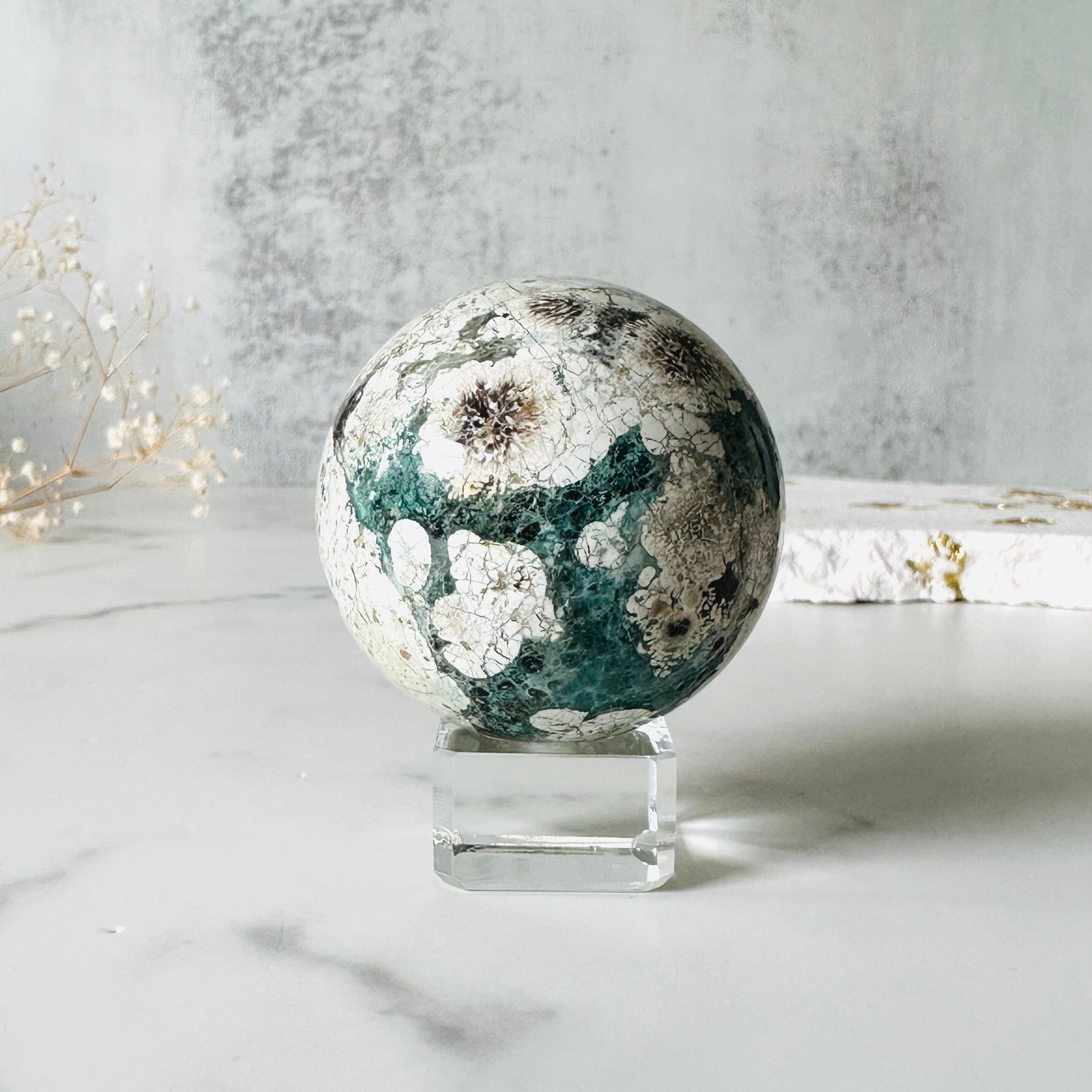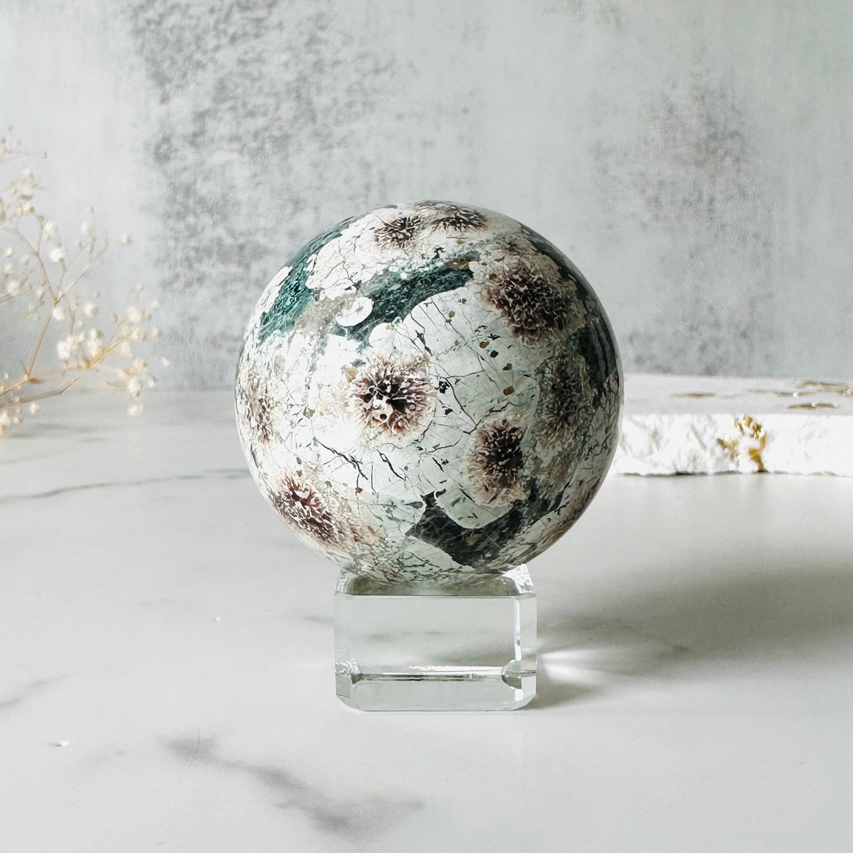 自然の美しさを感じながらこのスフィアを手に取ると、自然と一体化したような癒しや安らぎを感じられ、肩の力が解け、ほっと緊張が緩むような感じがします。