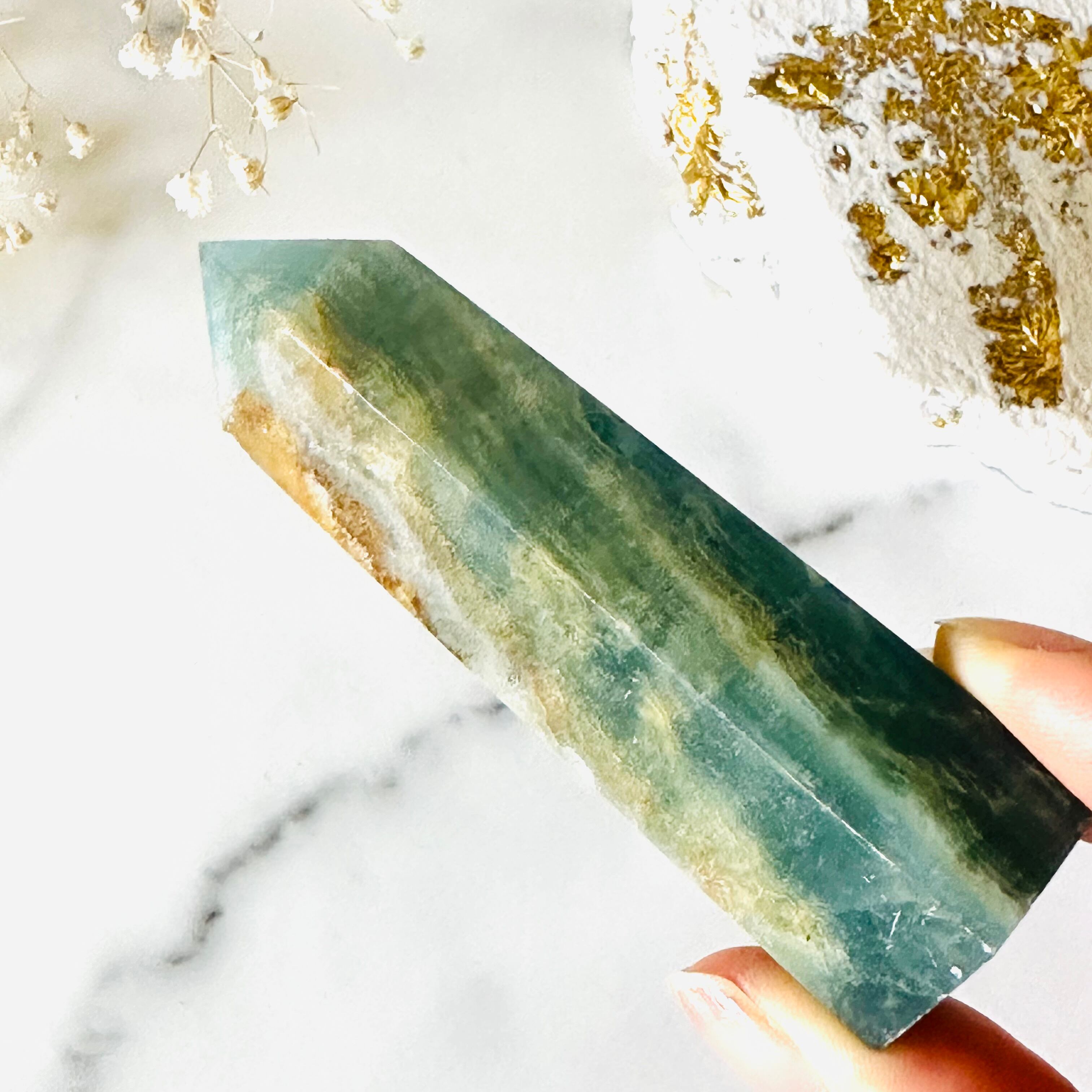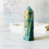 海のように澄んだ青と、縦に入ったブラウンの縞模様が波打ち際のようで、耳をすませば波の音が聞こえてきそうな気がします。寄せて返す波が日々の疲れを洗い流してくれるように、心と体を優しく癒してくれるストーンです。