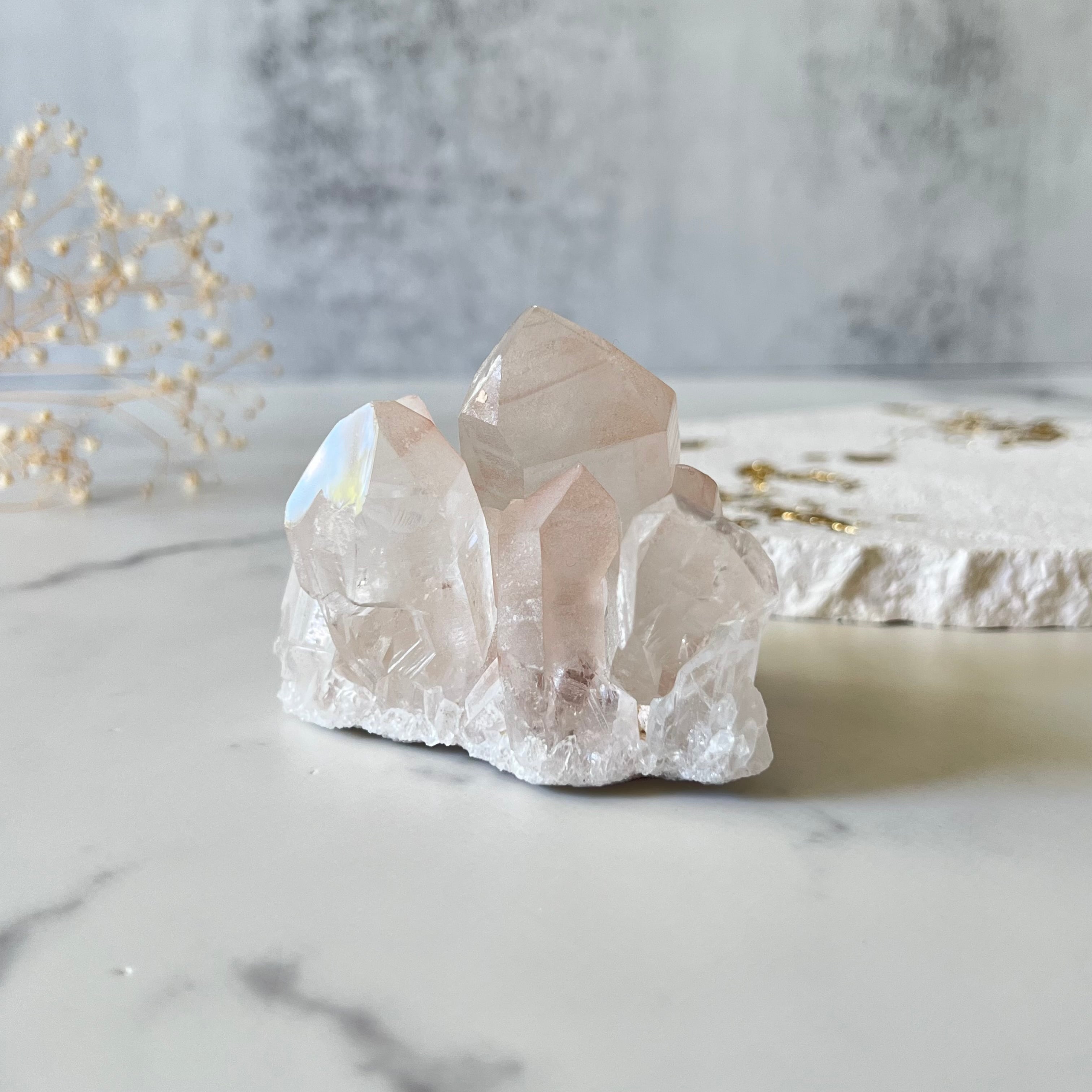 ほんのりピンク色が可愛いピンク水晶のクラスターです。