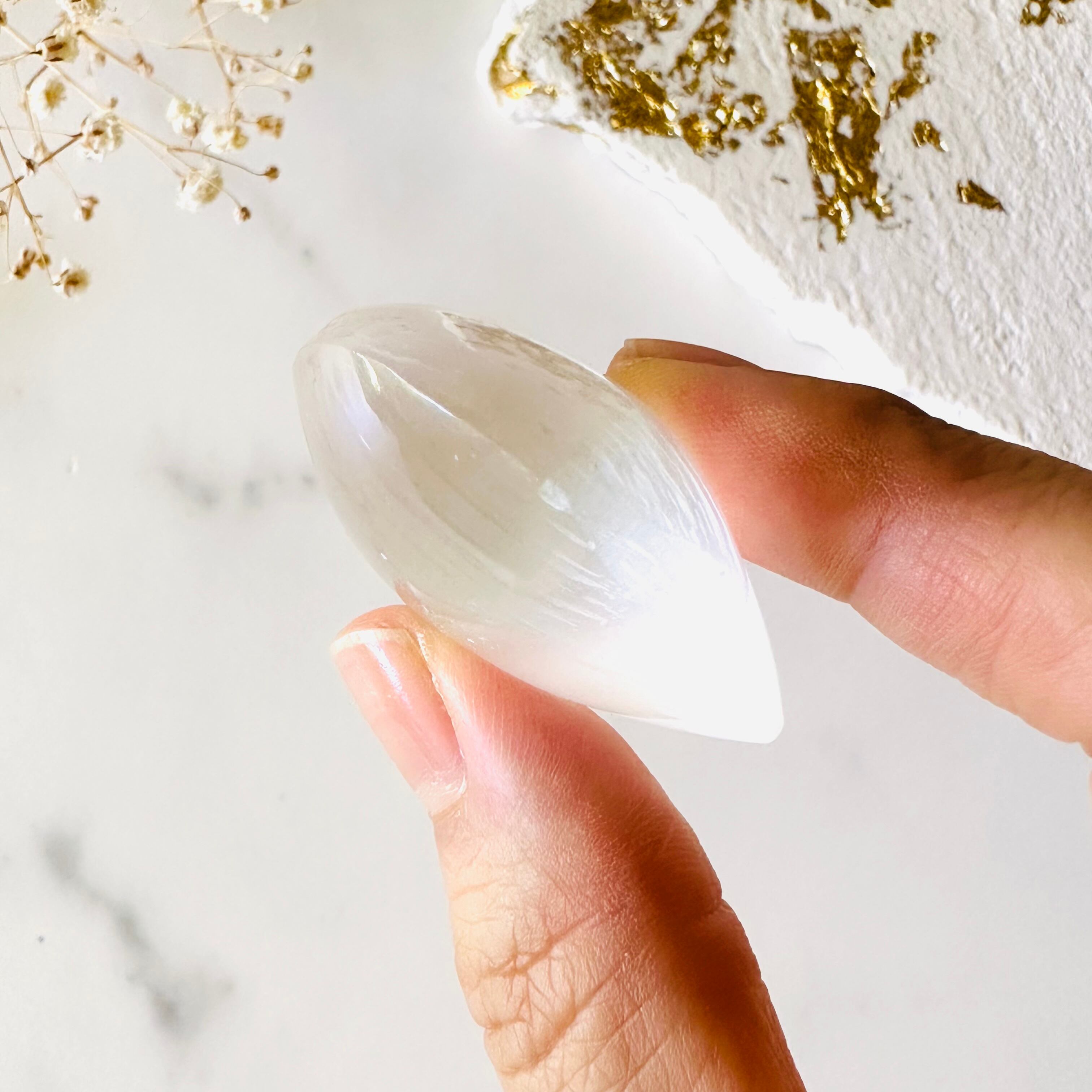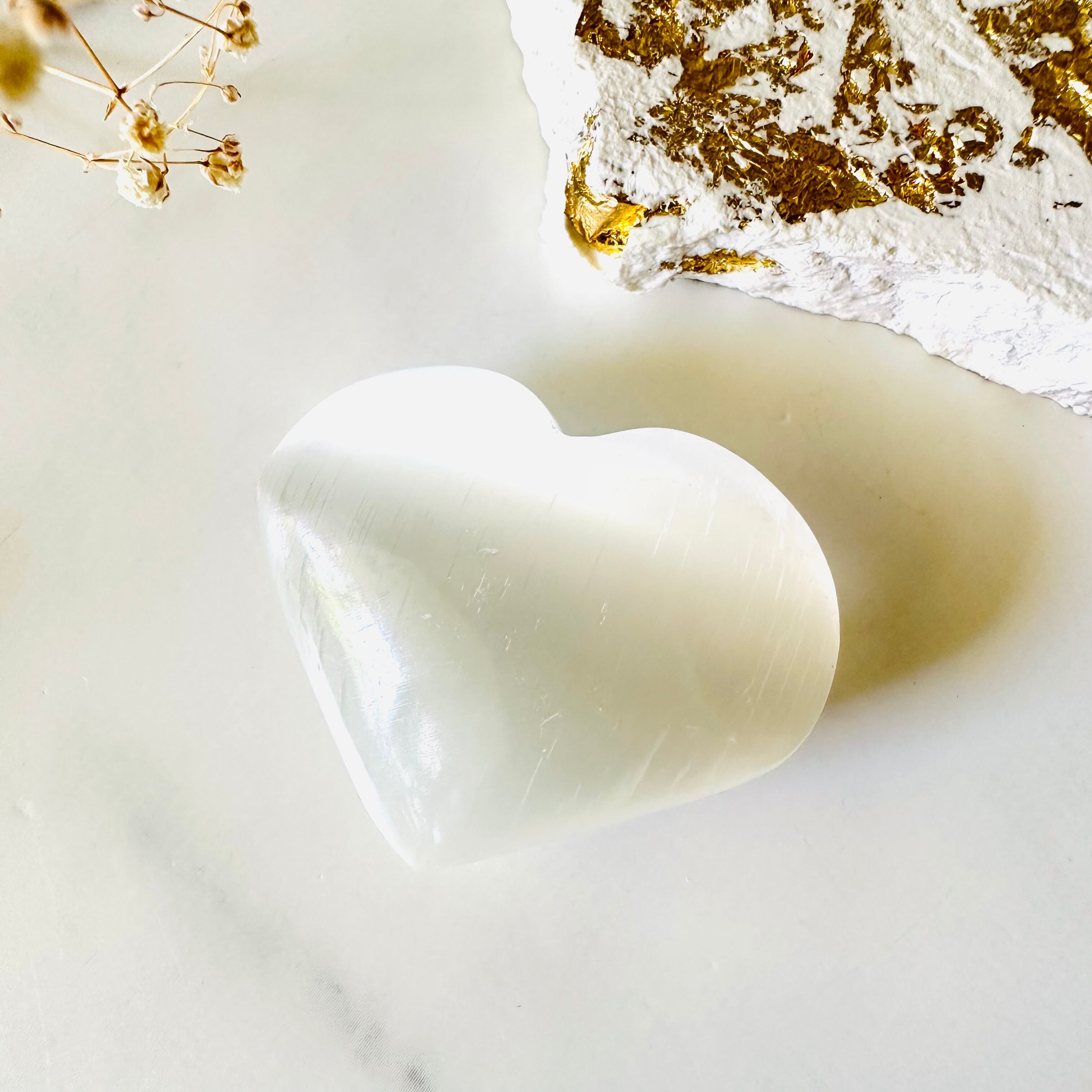 月のように清らかで美しい光を放つセレナイトのハート型ストーンです。