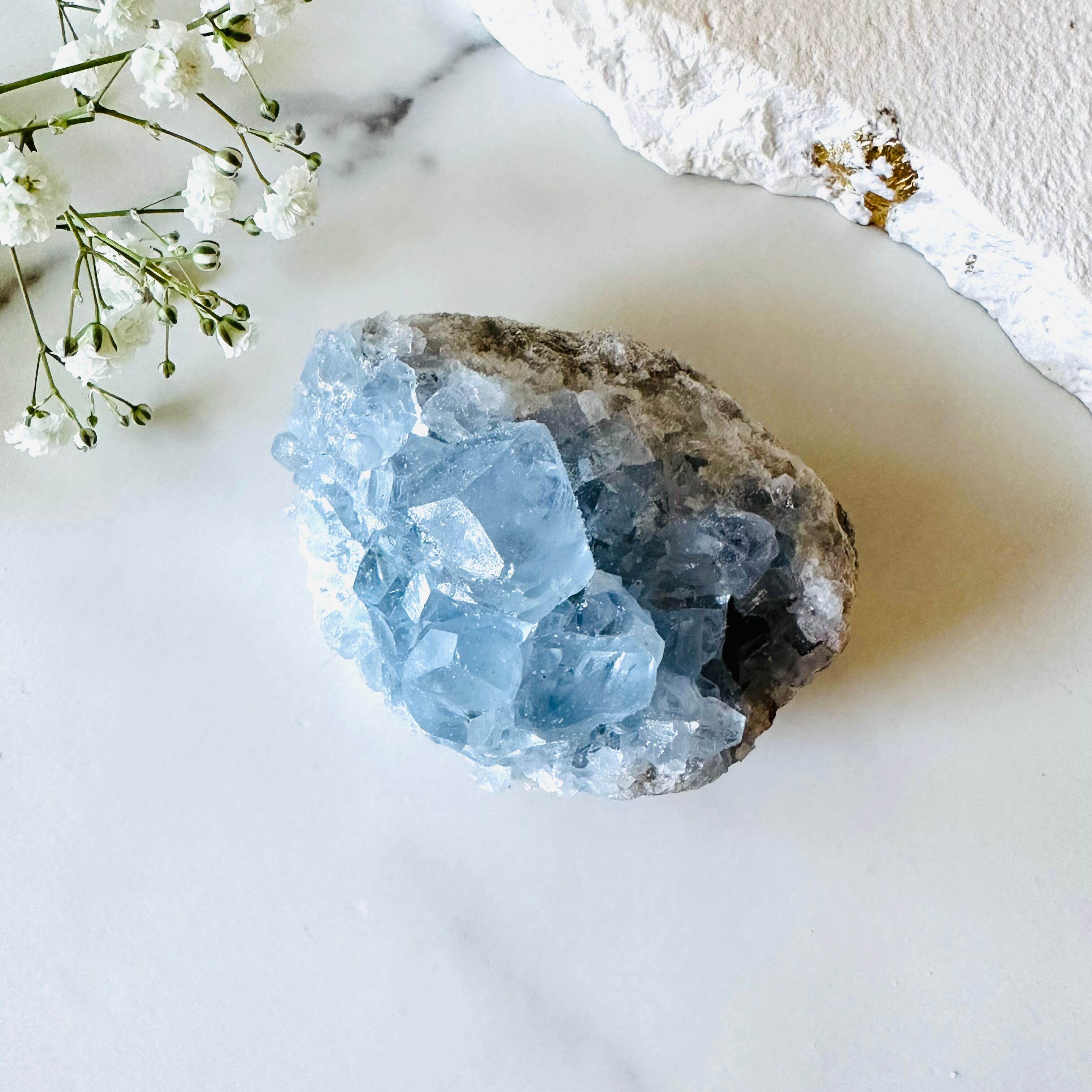 セレスタイトは硬度が低く、壊れやすいのでお取り扱いにはご注意ください。